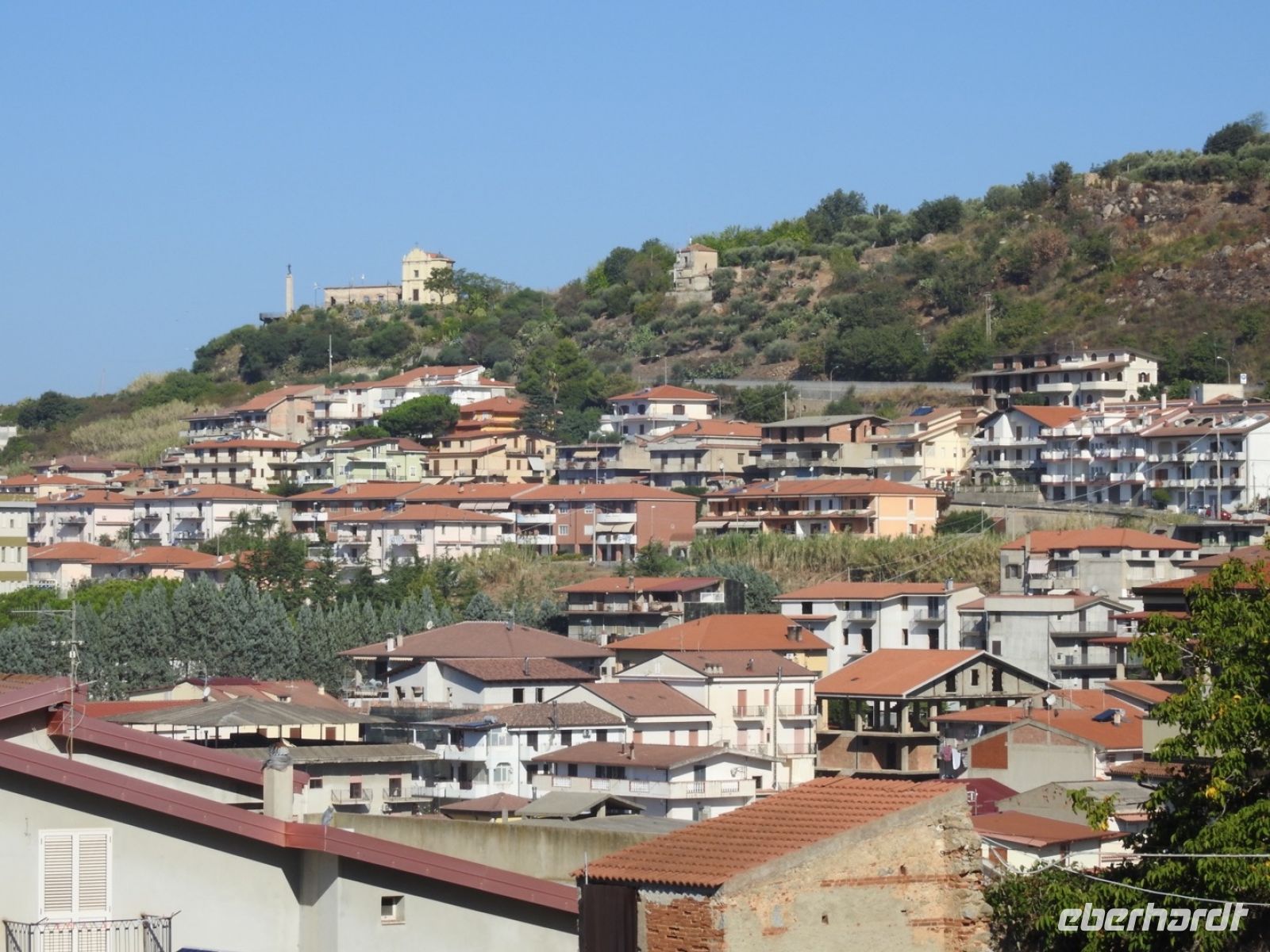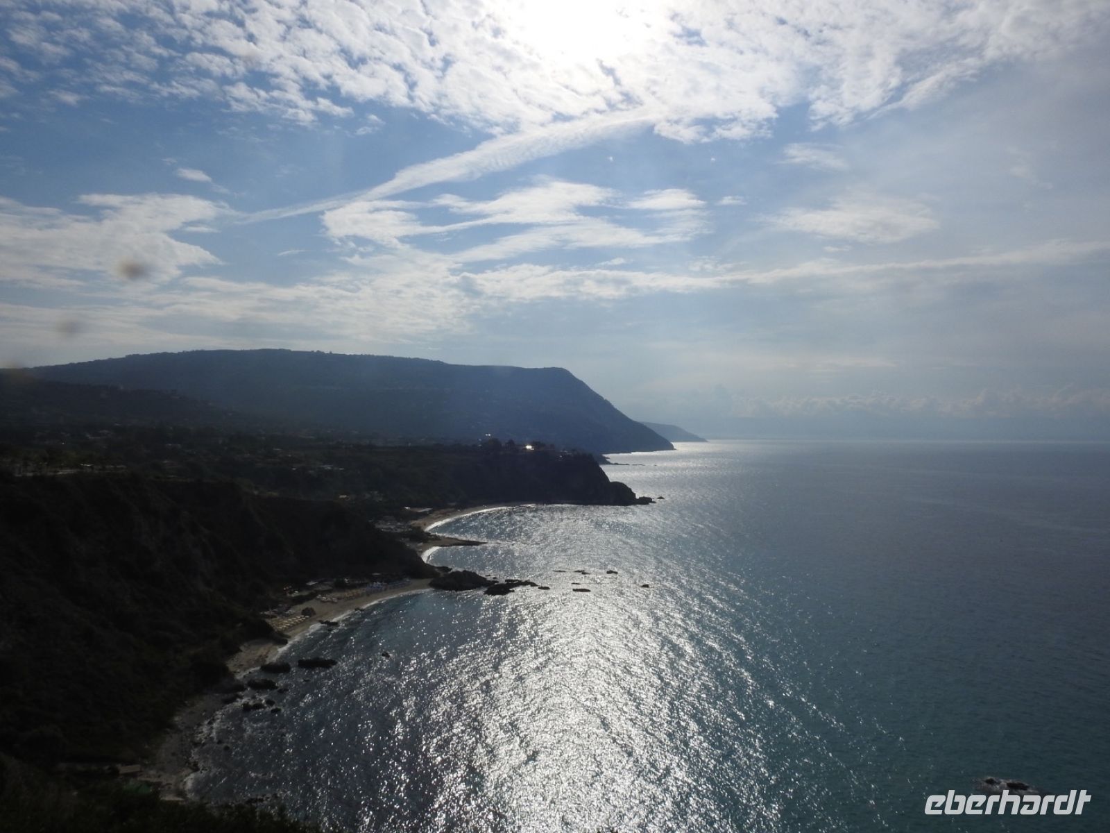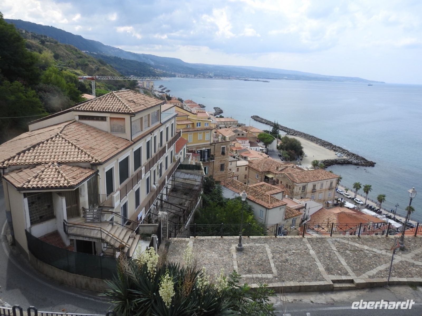 Zur moderaten Zeit um neun beginnt unser Ausflug. Der Shuttlebus bringt uns nach oben, wo bereits Nadia und unser Busfahrer auf uns warten. Wir fahren nach Nicotera. Unterwegs legen wir einen Fotostopp ein. Heute sind Sizilien und die Meerenge gut zu sehen. Auch von den Äolischen Inseln ein Hauch.