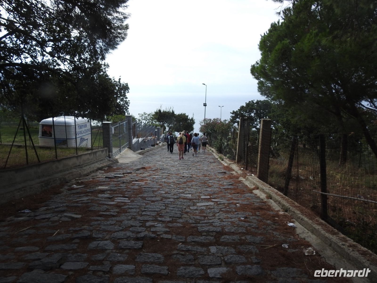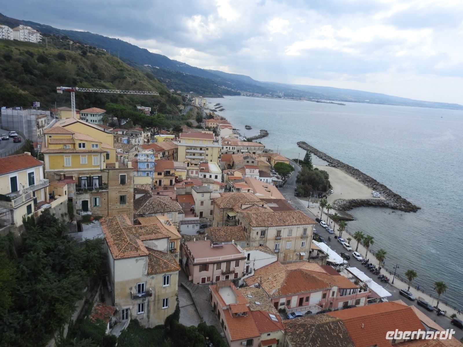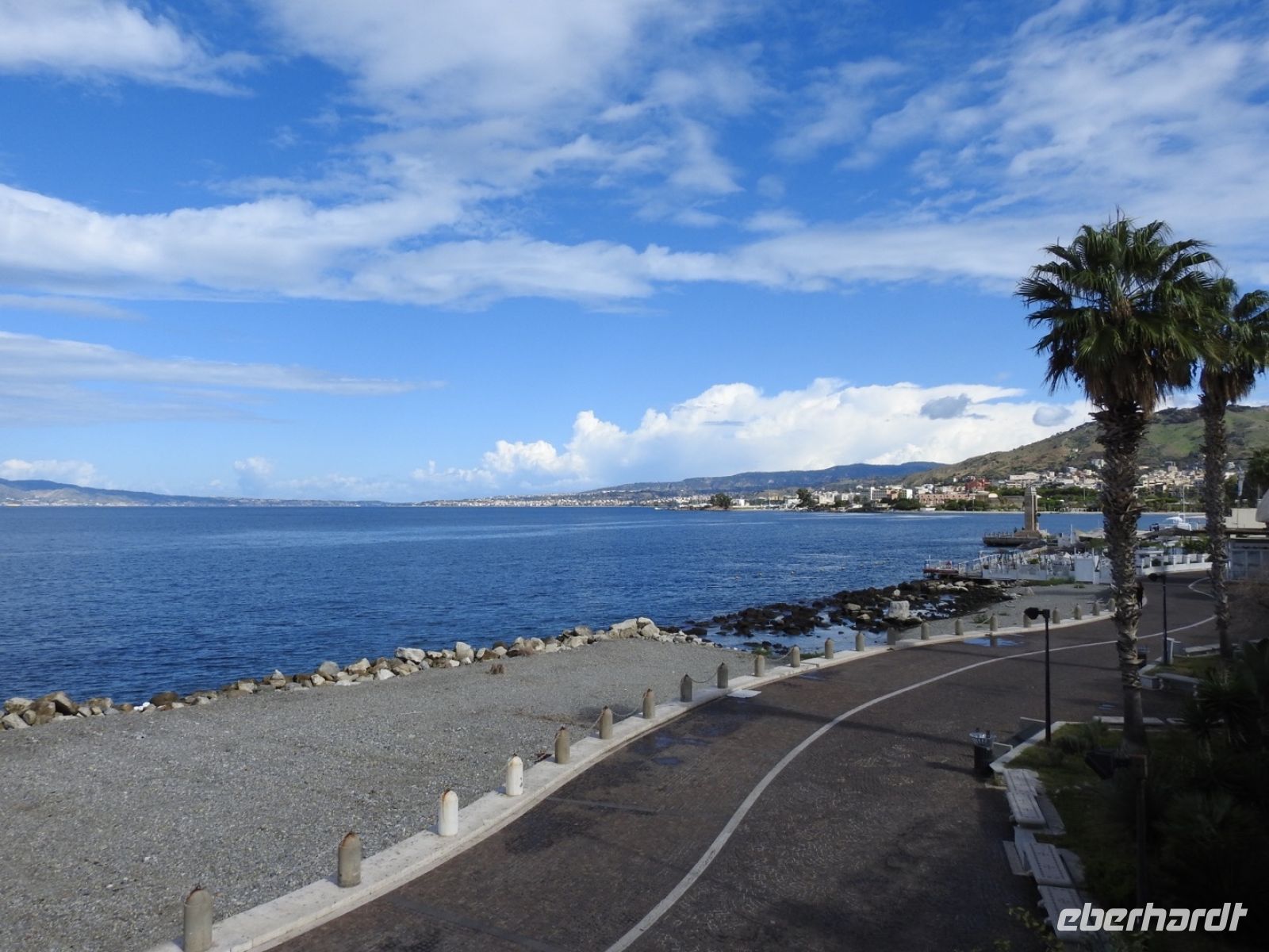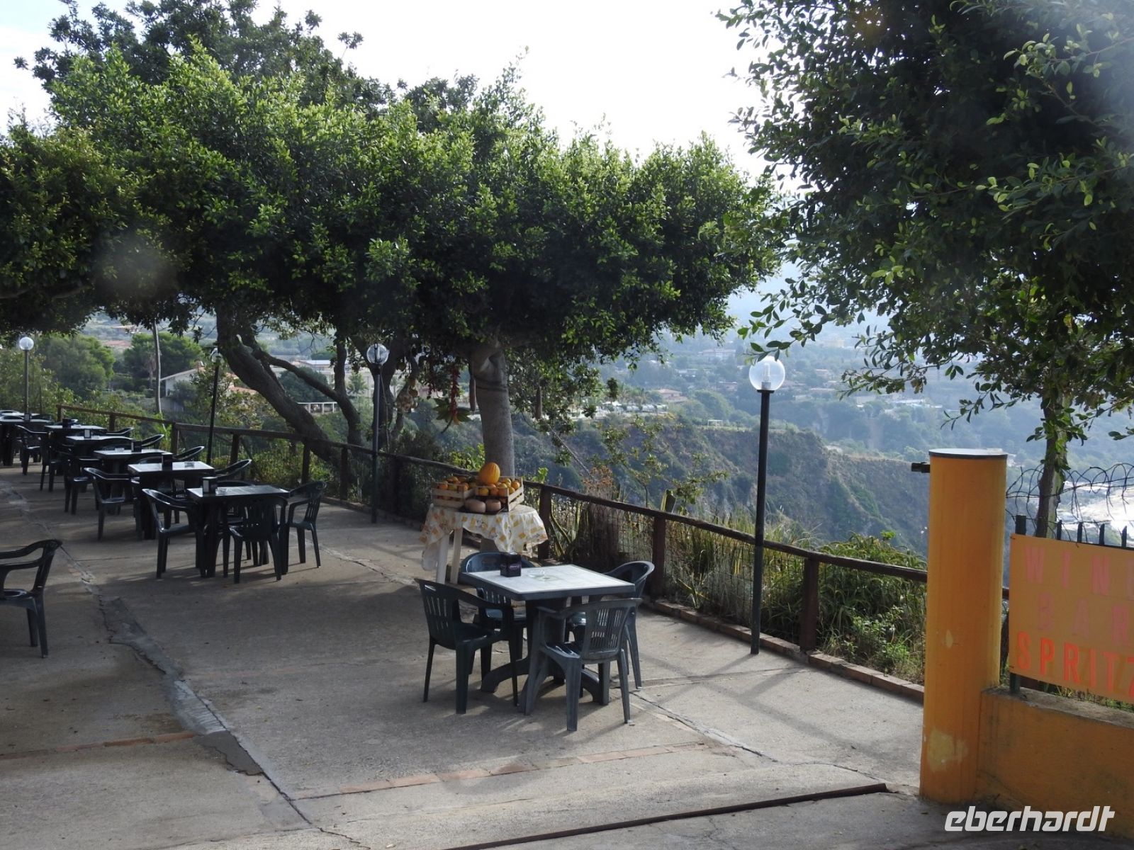 Zur moderaten Zeit um neun beginnt unser Ausflug. Der Shuttlebus bringt uns nach oben, wo bereits Nadia und unser Busfahrer auf uns warten. Wir fahren nach Nicotera. Unterwegs legen wir einen Fotostopp ein. Heute sind Sizilien und die Meerenge gut zu sehen. Auch von den Äolischen Inseln ein Hauch.