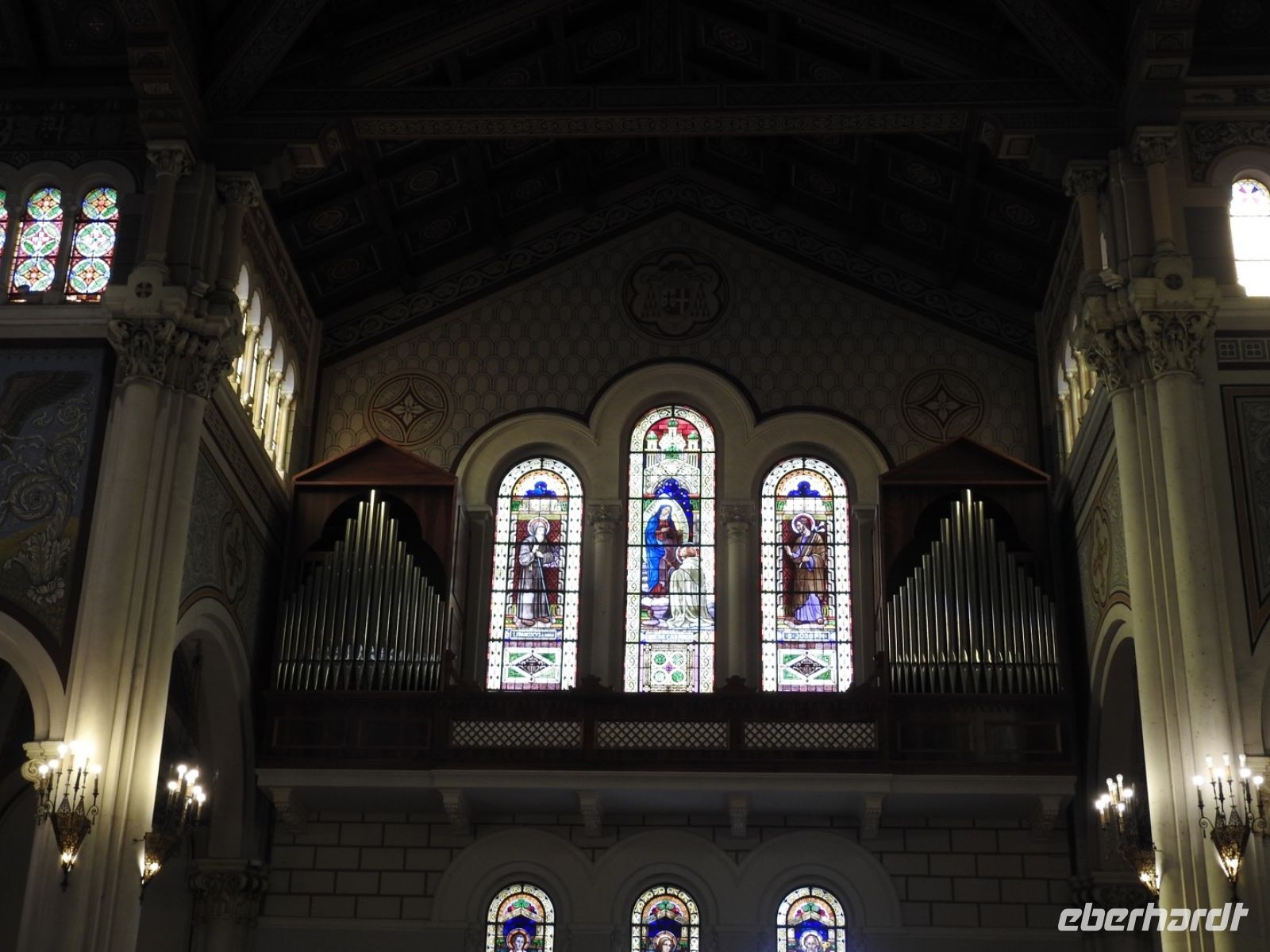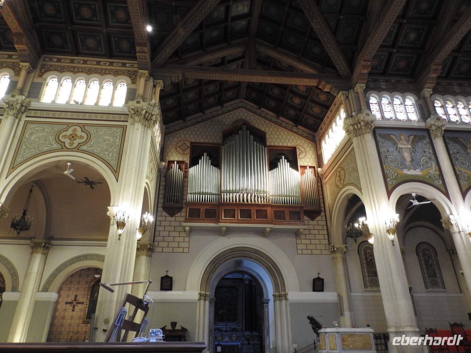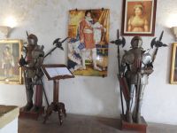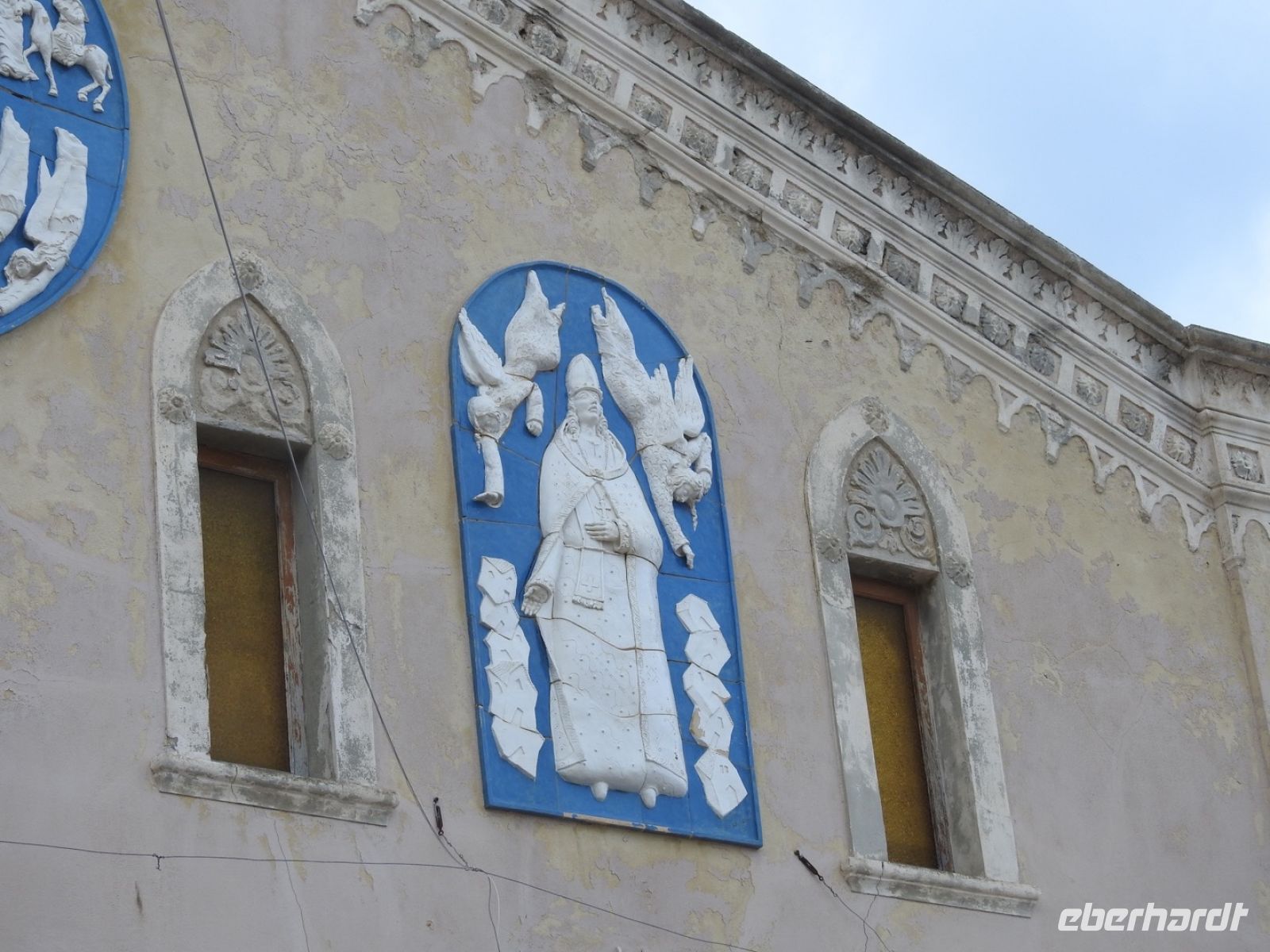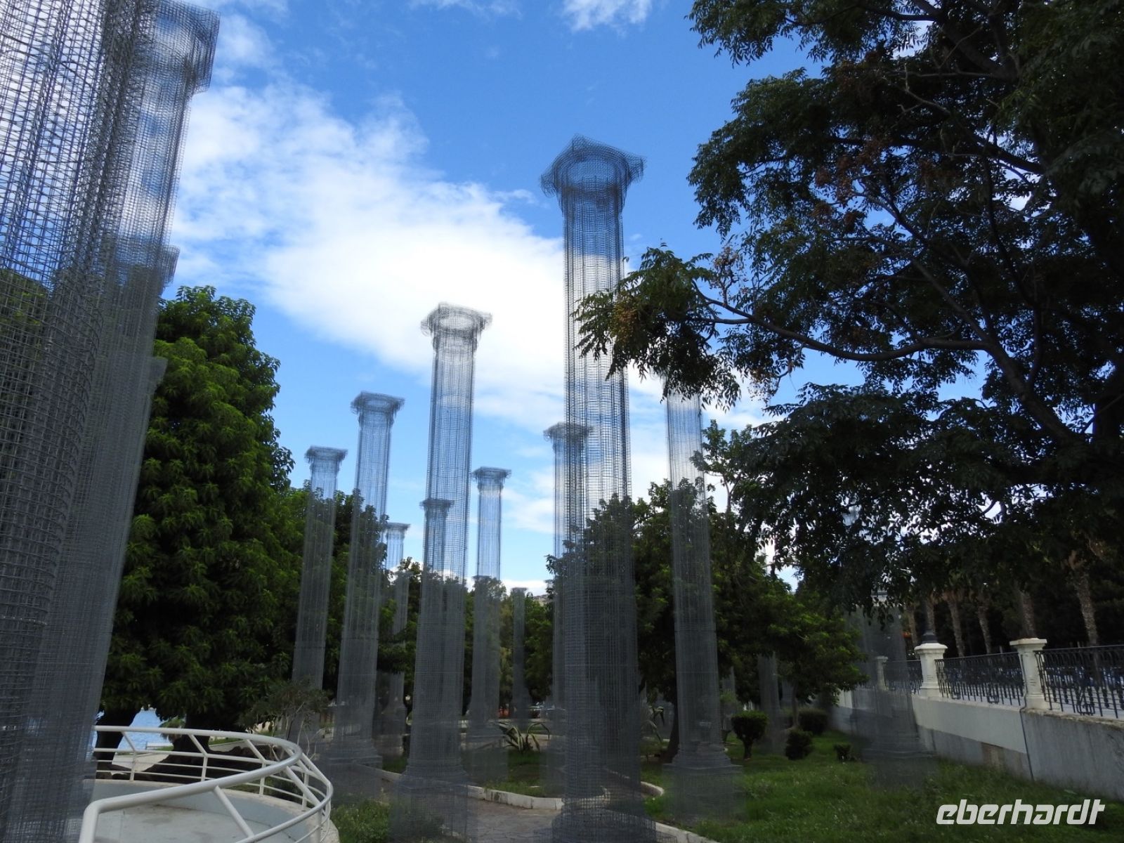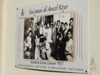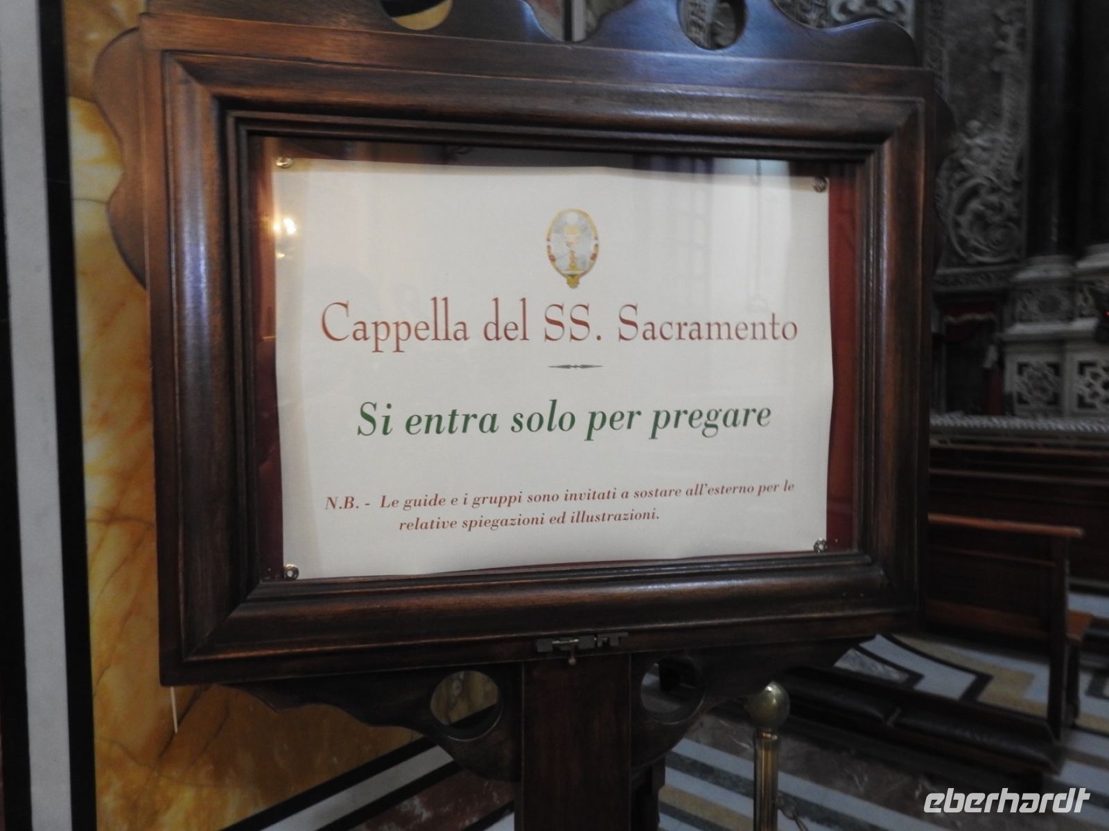 Nachdem geklärt ist, wohin uns der Shuttlebus bringen muss, lernen wir unsere örtliche Reiseleiterin Nadia und unseren Busfahrer kennen. Nadia erklärt uns anschaulich an einem Souvenirhandtuch wo wir uns befinden, dann versuchen wir einen Blick auf Sizilien zu erhaschen. Aber es ist zu dunstig. Die Küste der Götter zeigt sich uns nicht von ihrer strahlenden Seite. Am Capo Vaticano ist die Aussicht auf das türkisblaue Meer schon besser. Früher gab es hier ein Orakel, das von vielen Seefahrern besucht wurde. Daher stammt der Name: Kap der Prophezeiung. In Tropea kommen wir gleich an einem Laden vorbei, der die hier begehrte Ware, süße rote Zwiebeln, anbietet. Doch zunächst schauen wir nur. Ein Spaziergang führt uns zu den verschiedenen Balkonen, die die Stadt so spektakulär machen. Überall haben wir eine prächtige Aussicht auf das Meer und den weißen Sandstrand. Am schönsten ist der Blick auf die Wallfahrtskirche Santa Maria dell‘ Isola, die sich in strahlendem Weiß auf einem Sandsteinfelsen präsentiert. Unser Weg führt uns vorbei an ehemaligen Adelspalästen aus dem 15. Jahrhundert, manche sind noch bewohnt. Es gelingt uns, einen Blick in einen Innenhof zu werfen und das Adelswappen an der Decke zu bewundern. Gern hätten wir auch die Kathedrale besucht, jedoch bleibt dieser Besuch uns verwehrt, da gerade Gottesdienst stattfindet und Touristen nicht erwünscht sind. Nur klammheimlich können wir einen Blick auf die Bomben werfen, die am Eingang der Kathedrale befestigt sind. Grund ist, dass im 2. Weltkrieg sieben Bomben auf Tropea abgeworfen wurden, jedoch keine explodierte. Als Erinnerung daran, wurden zwei der Bomben in der Kathedrale angebracht. Wir haben nun eine Stunde Zeit, auf eigene Faust die Stadt zu erobern. Die verbringen wir mit Kaffee trinken und/oder einkaufen. Vor allem die verschiedenen Spaghettigewürze und die Njudawurst haben es uns angetan. Aber auch die italienischen Schuhläden und Bekleidungsgeschäfte laden zum Shoppen ein. Nach der Pause besuchen wir einen Laden, wo uns verschiedene Aufstriche, Wurst und Käse zum verkosten angeboten werden. Wir fahren weiter nach Pizzo, ein freundliches Städtchen, das auf einem Felsplateau hoch über dem Golf von Sant Eufemia thront. Wir besuchen das Castello, in dem der Schwager von Napoleon eingesperrt, zum Tode verurteilt und umgebracht wurde. Auf der Piazza della Repubblica kehren wir ein und Eberhardt Travel lädt uns auf einen Tartuffo ein. Das ist die Spezialität der Stadt - ein Eis mit flüssigem Schokoladenkern. Bei einer Präsentation können wir zusehen, wie die flüssige Schokolade in die Eiskugel kommt. Nach dieser Leckerei fahren wir zu einem Strand, an dem sich eine besonders sehenswerte Felsenkirche befindet. Ende des 18. Jahrhunderts gerieten neapolitanische Seeleute in Not. Nach ihrer glücklichen Rettung, errichteten sie diese Kirche. Zweihundert Jahre später entdeckte ein lokaler Künstler die Kirche für sich und schmückte sie mit Dutzenden Heiligenfiguren, die er mit einer Spitzhacke aus dem Sandstein schlug. So entstand ein wunderschönes Figurenensemble ganz versteckt in einer Grotte am Strand.