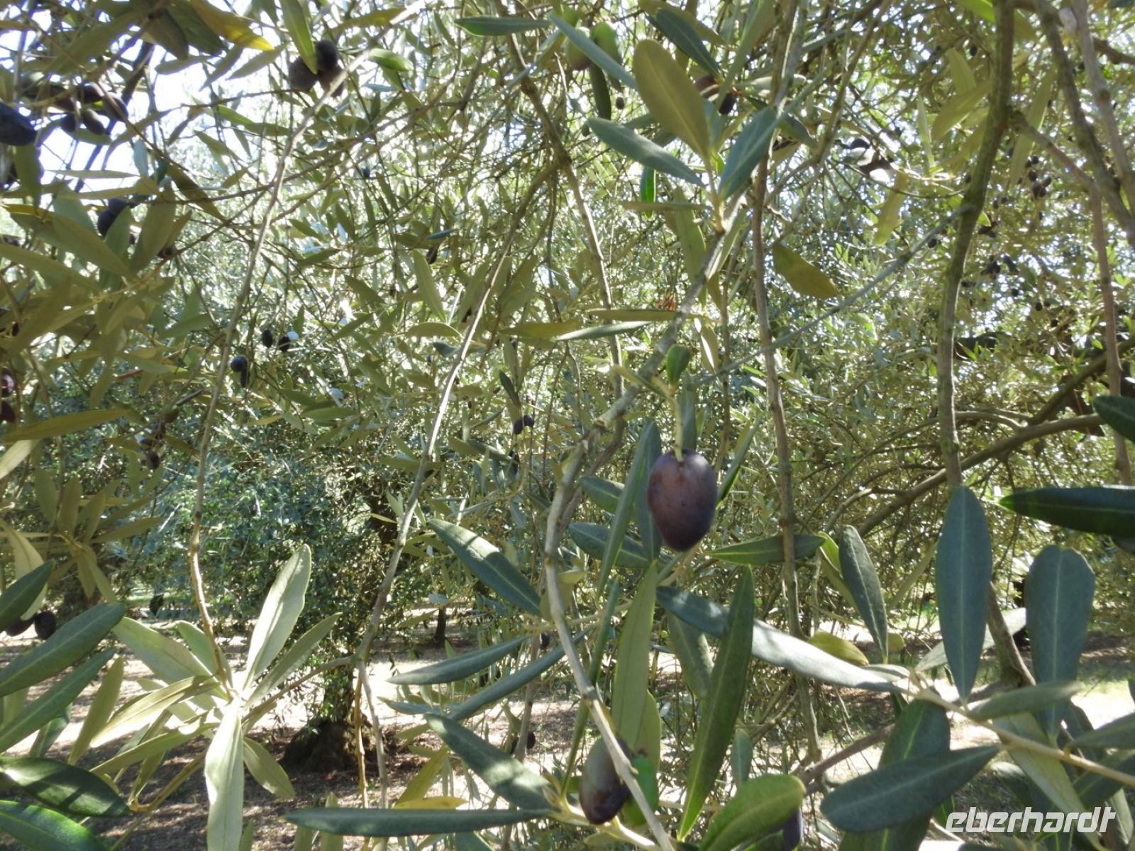 Nun besuchen wir eine Olivenölplantage. Unter den großen Olivenbäumen erzählt uns der Inhaber, wie Oliven wachsen und geerntet werden. Er zeigt uns mit Begeisterung seine Baumrüttelmaschine, mit der die Oliven von den Bäumen geschüttelt werden. In der Fabrikhalle erklärt er uns, wie das kostbare Olivenöl gewonnen wird. Wir verkosten zwei Sorten und kaufen anschließend das, was uns am besten geschmeckt hat.