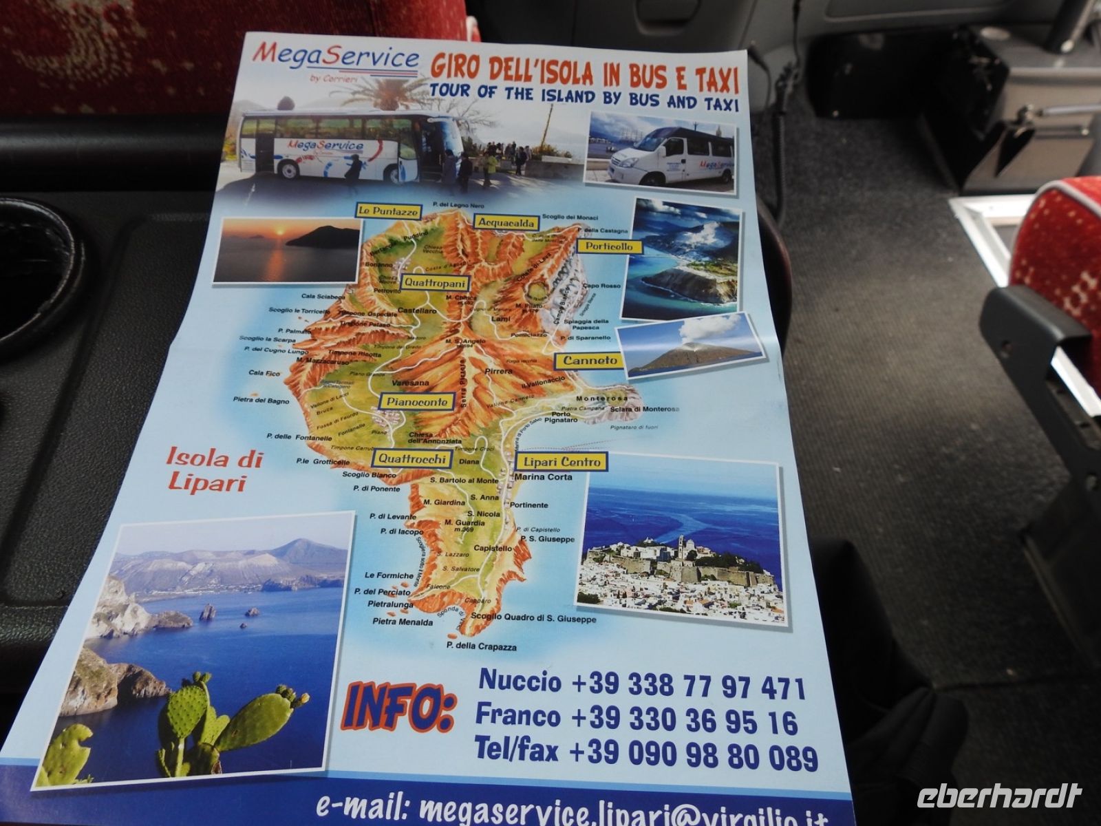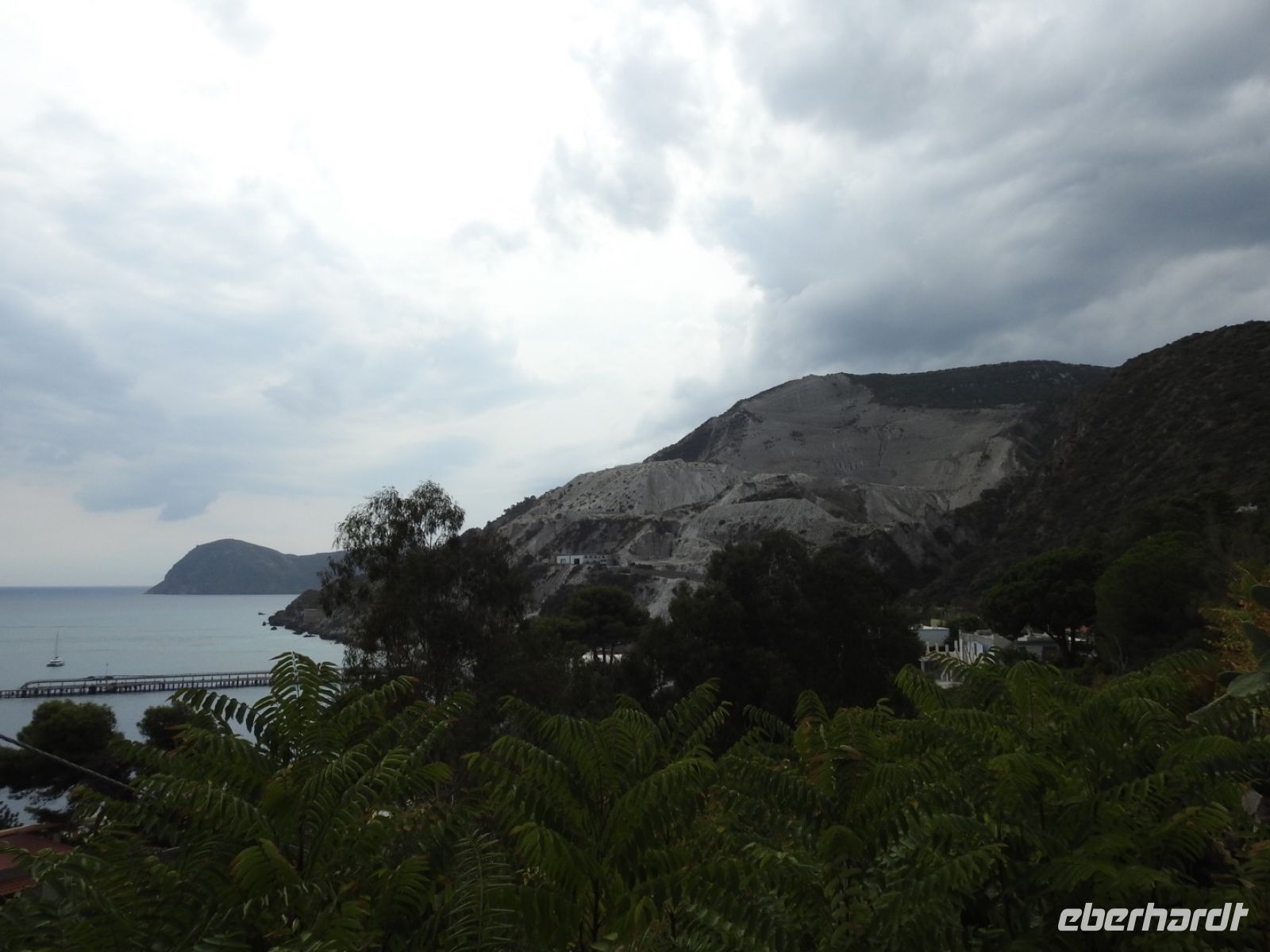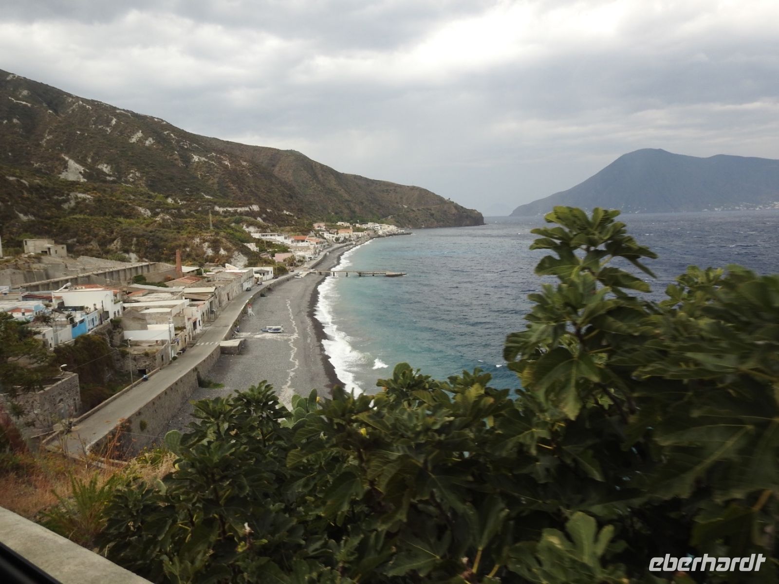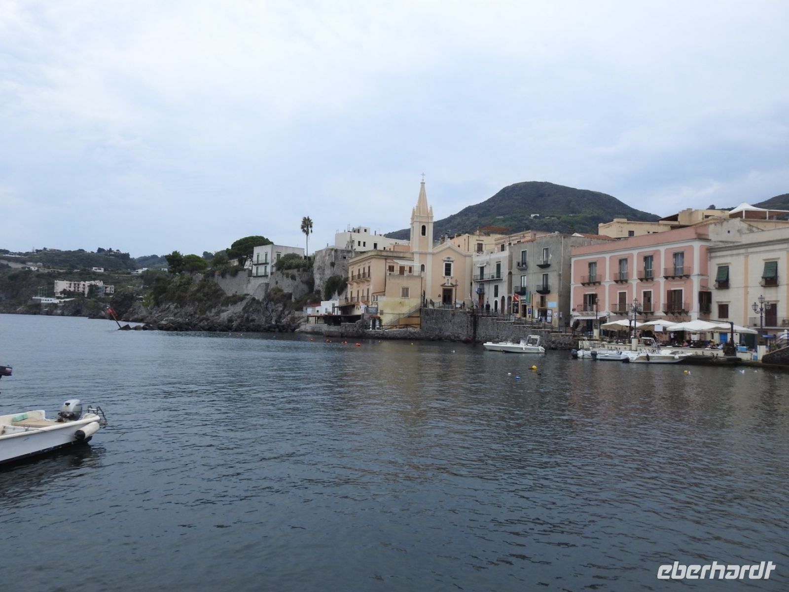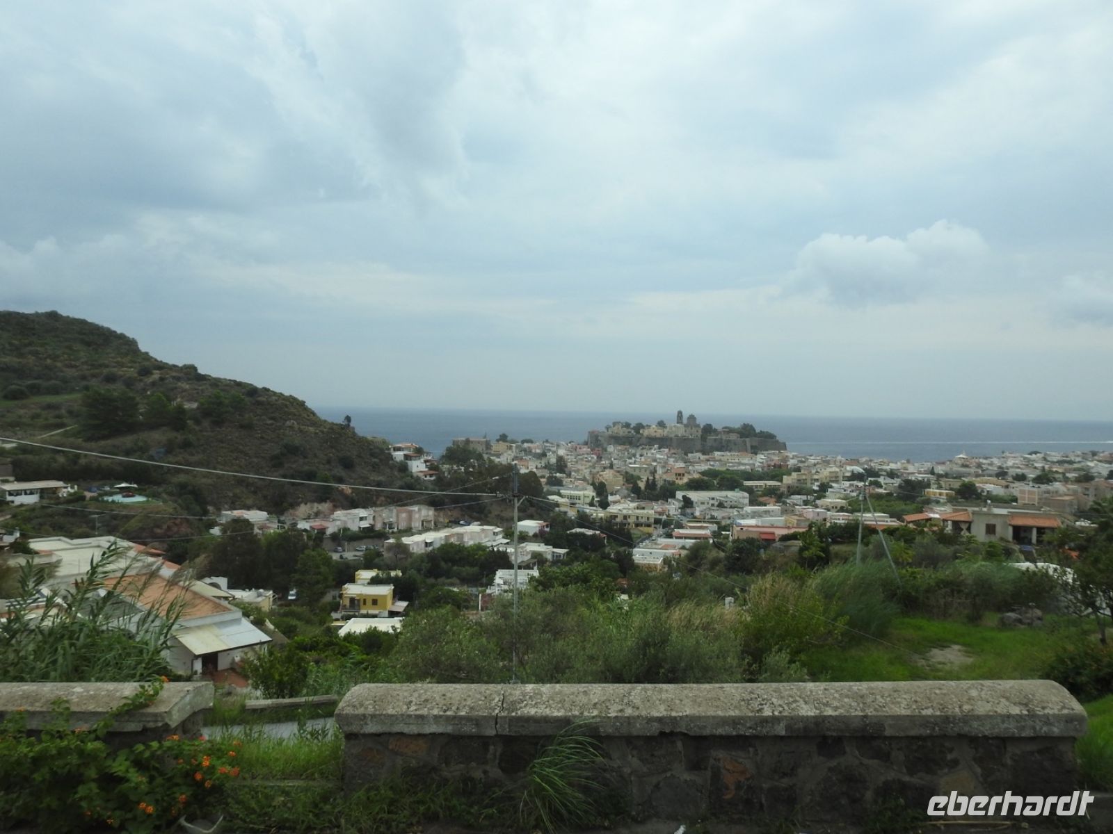 Bis nach Lippari ist unser Schiff dann nur eine Viertel Stunde unterwegs. Die Wünsche für die hier zur Verfügung stehende Freizeit sind unterschiedlich, so dass wir uns in Grüppchen aufteilen. Einige wollen baden gehen (es stellt sich heraus, dass es zu kalt und zu stürmisch ist), andere wollen bummeln und einkehren. Dieses Grüppchen wird von einer freundlichen Wienerin „eingefangen“, die gemeinsam mit ihrem kalabresischen Mann eine Inselrundfahrt (für 10 € pro Person) anbietet. Im Nachhinein betrachtet, war das keine falsche Entscheidung, denn so bekamen wir in etwas mehr als einer Stunde einen umfassenden Eindruck von Lippari. Nun gab es den Wunsch, jetzt noch eine echte italienische Pizza zu kosten. Gesagt, getan. Allerdings läuft die Uhr, wir haben knapp vierzig Minuten Zeit, bis das Schiff wieder ablegt. Und eine echte italienische Pizza braucht ihre Zeit. Kurz gesagt, innerhalb von zehn Minuten musste dann die tatsächlich leckere Pizza verputzt werden.