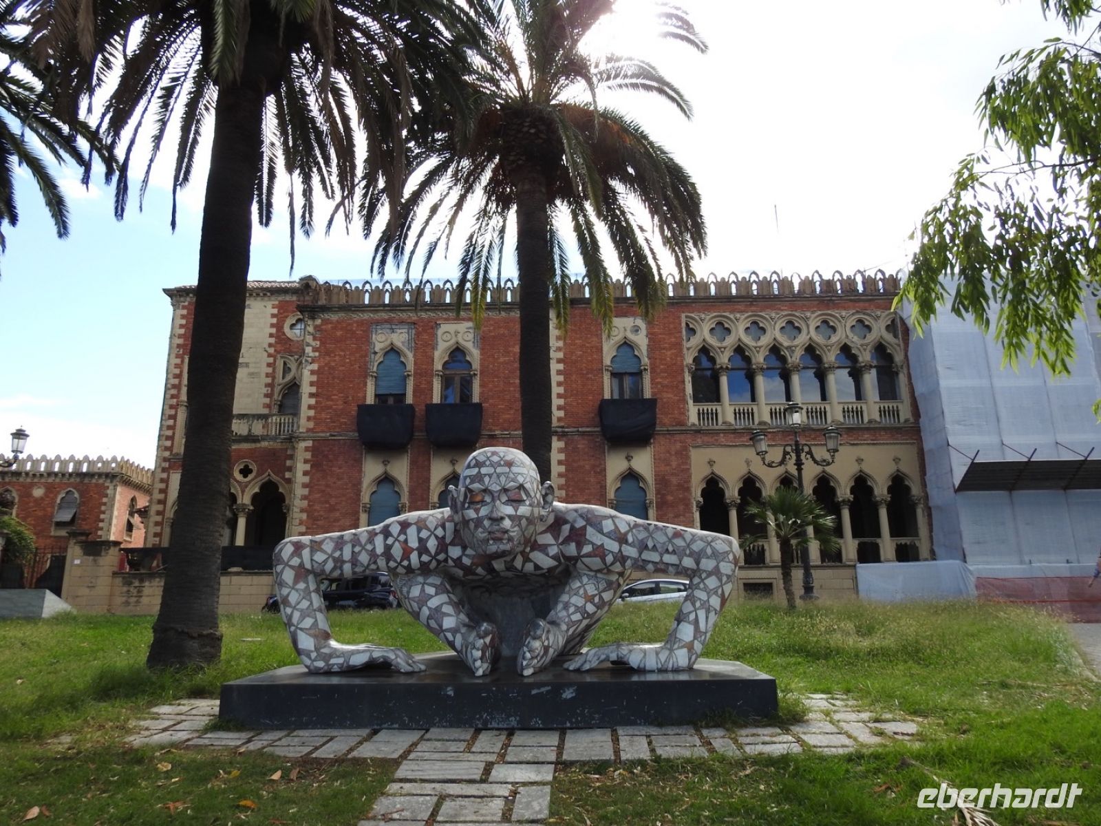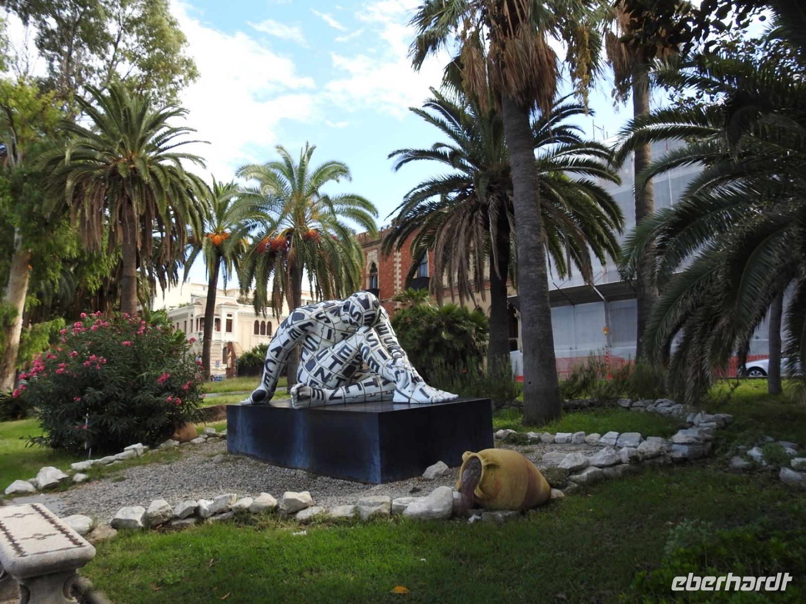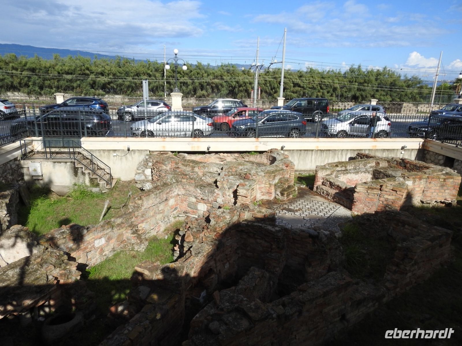 Bereits um acht geht es heute los, denn die Fahrt nach Reggio di Calabria dauert zwei Stunden. Bis an die Stiefelspitze führt uns der heutige Ausflug. Hier herrscht eine ganz andere Atmosphäre als wir es bisher gesehen haben. Die Straßen sind breit, die Häuser blitz blank renoviert. Die Läden heißen Gucci oder Rolex. Außerdem erwartet uns in Reggio di Calabria das Archäologische Museum mit besonderen Highlights. Seit 1981 werden hier zwei Bronzekrieger ausgestellt, die von einem Muscheltaucher zufällig im Meer entdeckt wurden. Ihre Herkunft ist ungewiss, ihre Ansicht jedoch überwältigend. Zwei prächtige Mannsexemplare.