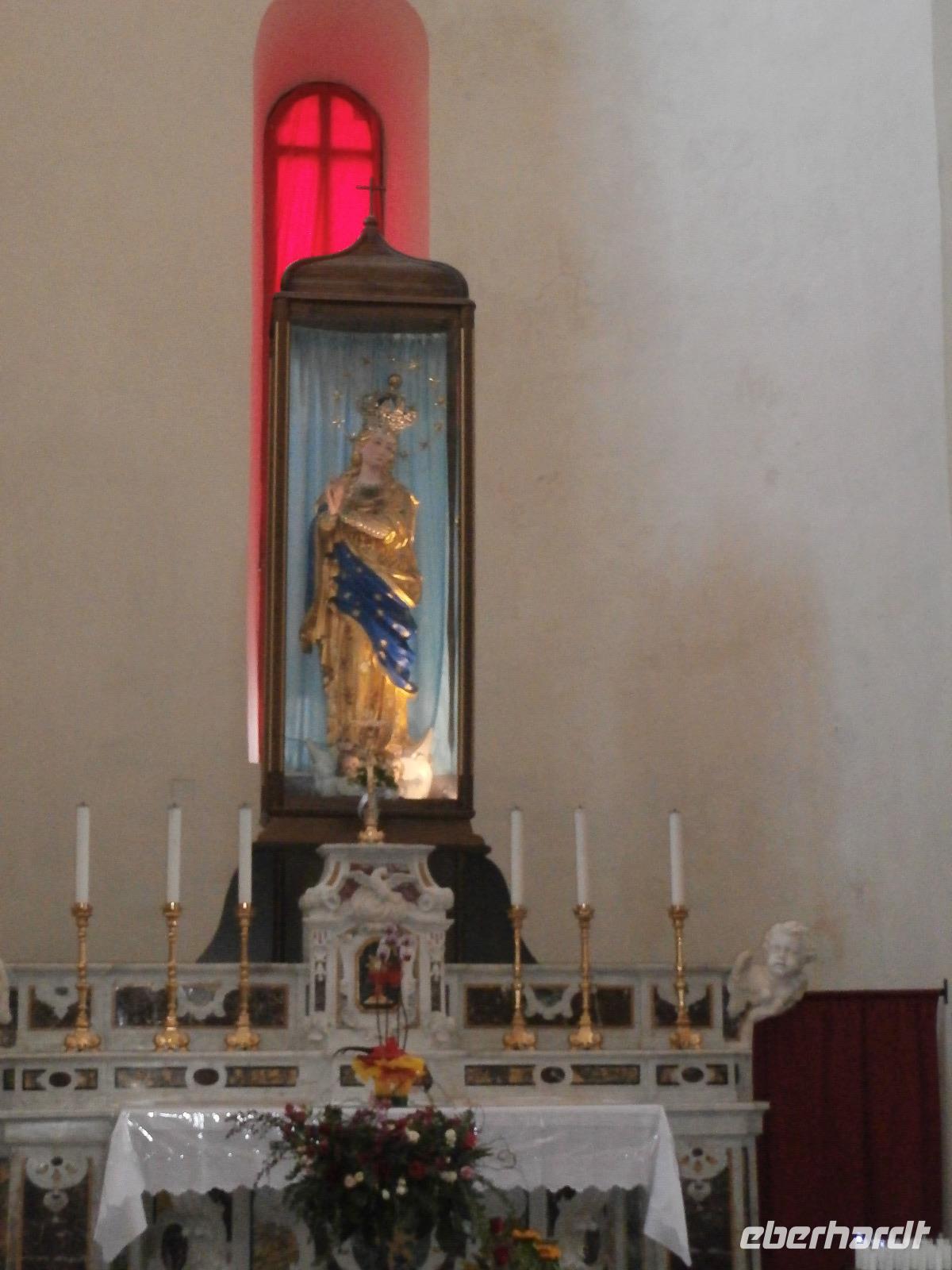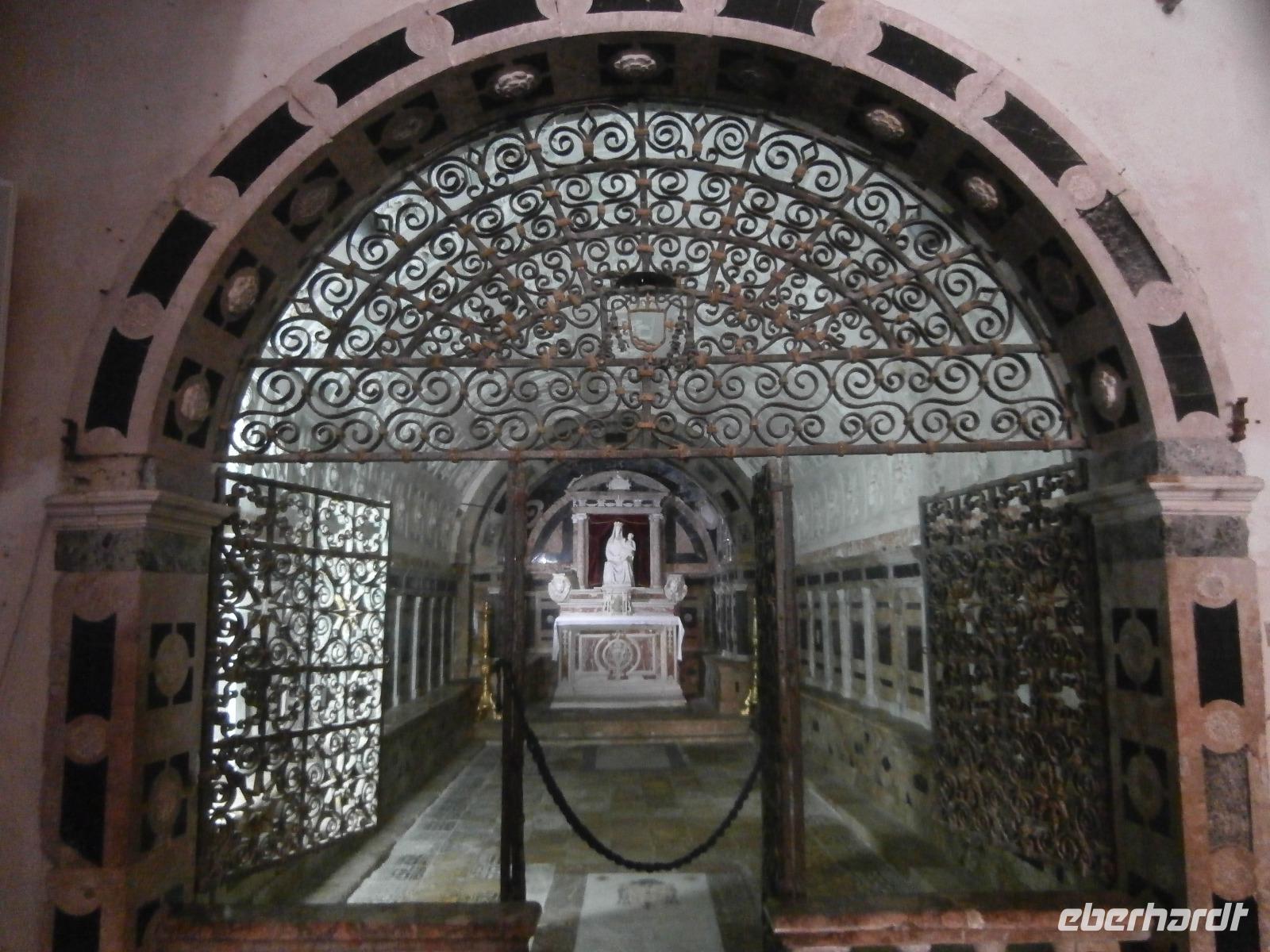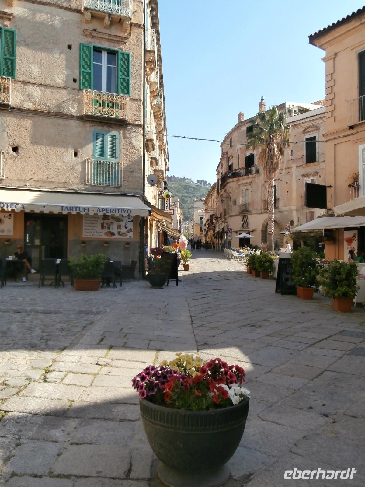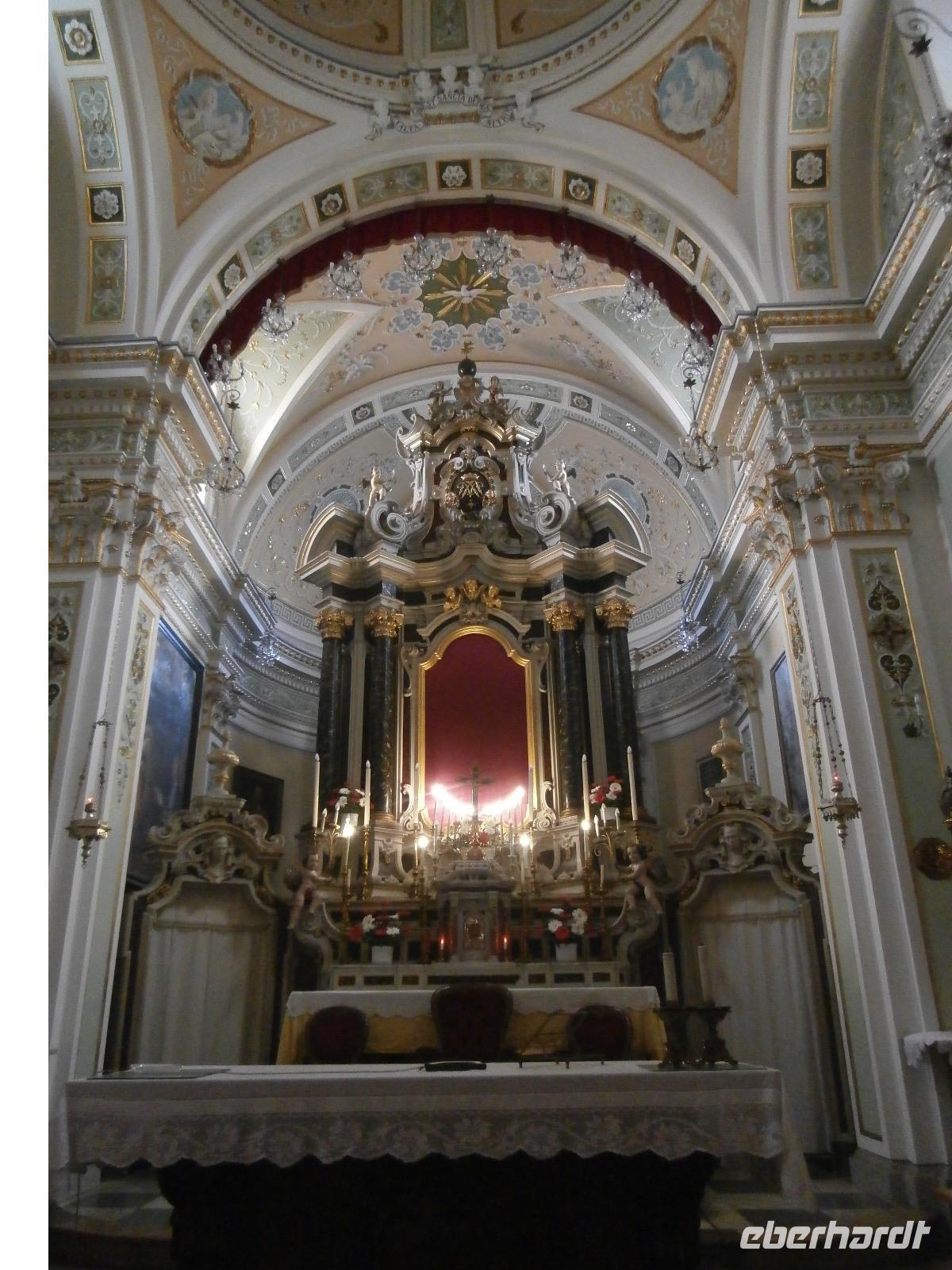 Gemeinsam starten wir unsere Exkursion mit dem Bus und der örtlichen Reiseleitung Claudia, sie ist eine gebürtige Schweizerin. Das Capo Vaticano bietet feine, weiße Sandstrände in den verschiedenen Buchten und ist auch ein Tauchrevier. Wir genießen die Aussicht auf Kalabriens schönstes Küstengebiet. Von hier ist die Straße von Messina nur ca. 60 km entfernt und bei klarem Wetter auch sichtbar. Der Name des Cap's geht vermutlich auf die vati( Propheten) zurück, sie sollen an diesem besonderen Platz gelebt haben, den Seefahrern ihre Zukunft geweissagt und auch Wettervorhersage betrieben haben. Zurück am Hotel verlassen wir den Bus und begeben uns zu Fuß zum Stadtrundgang in Tropea. Durch viele, kleine und sehr schmale Gassen führt uns Claudia in Tropea, Sonntagmittag ist in der Stadt einiges los, viele Einheimische bummeln durch den Ort. Eine Verkostung landestypischer Spezialitäten mit Zwiebelmarmelade, feiner Salami und auch eingelegtem Brot in Olivenöl erleben wir mit Claudia. Sie präsentiert uns Produkte der Bergamotte, im Laden verkosten wir Limoncello und Likör der Bergamotte. Man hat festgestellt, dass an keinem anderen Ort der Welt die Bergamottefrucht in derselben Qualität und Menge wie in Kalabrien wächst. Am Aussichtspunkt blicken wir hinüber zur Kirche Madonna Santa Maria dell'Isola, sie werden wir später besuchen, viele Stufen führen zu ihr hinauf. Nach einem gemeinsamen Mittagsstopp verabschieden wir uns in die Freizeit, der Dom wartet auf Besichtigung, öffnet aber erst wieder gegen 16.30 Uhr. Die Siesta mit Schließung von Geschäften und Kirchen muss eingehalten werden.