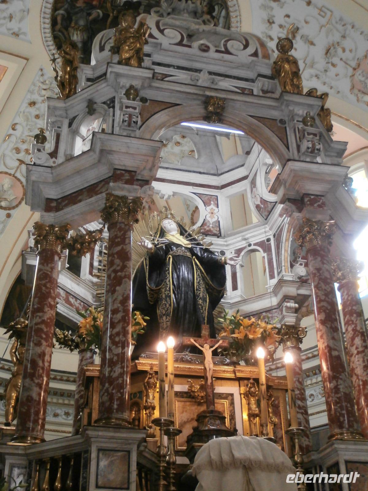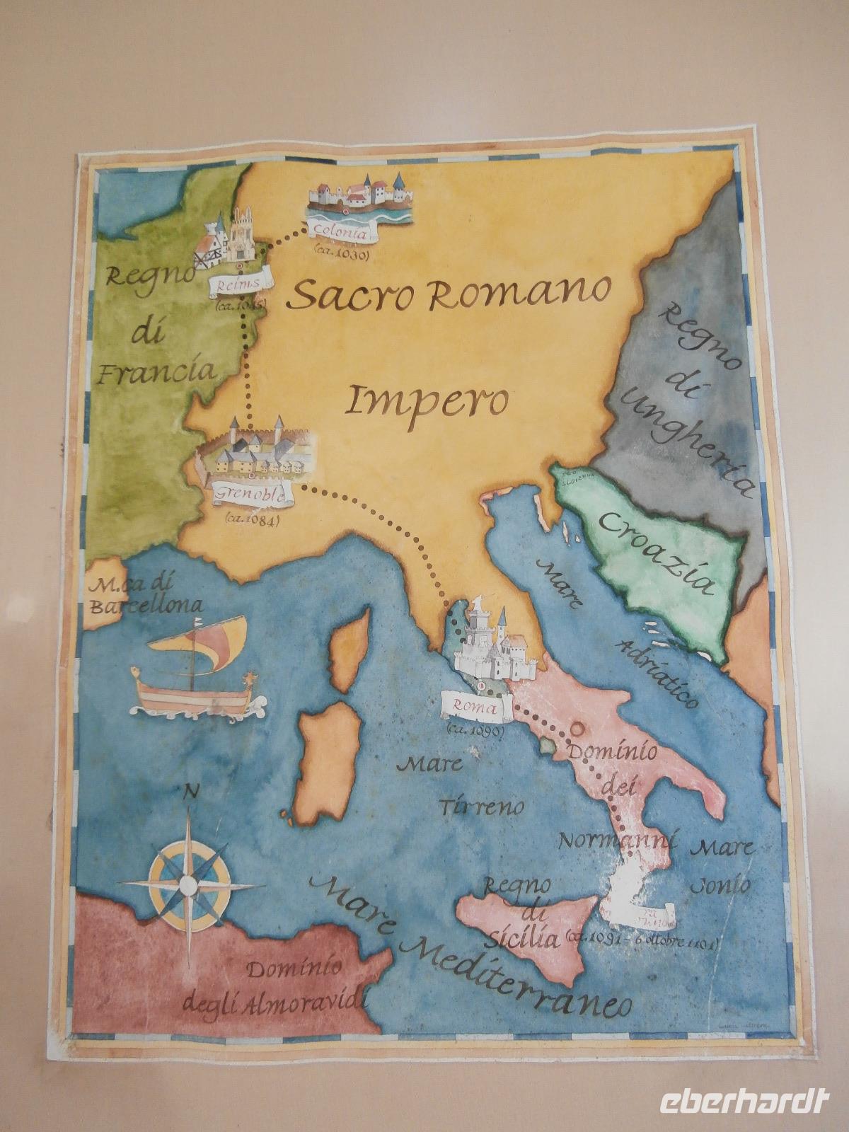 Heute Morgen starten wir schon 08.30 Uhr mit dem Bus zur Fahrt ins Gebirge, auf ca. 800 m Höhe hat der Frühling noch nicht so richtig Einzug gehalten. Unser Massimo steuert den Bus souverän durch die vielen Kurven und die schlechten Straßen. In Serra San Bruno, schon im 11. Jahrhundert gegründet, besichtigen wir die Kirche Maria SS. Addolorata, sie ist den sieben Schwestern Marias gewidmet und im Jahre 1721 fertig gestellt. Im Ort kaufen unsere Reisegäste ein, Schuhe sind besonders gefragt. Im Anschluss fahren wir weiter zum Karthäuserkloster Santa Maria della Torre, bei einer Führung mit Claudia erfahren wir viel über die Geschichte des Klosters. Noch immer leben Mönche sehr zurückgezogen im Kloster, sie arbeiten und beten, ihr Leben ist für immer Gott geweiht.