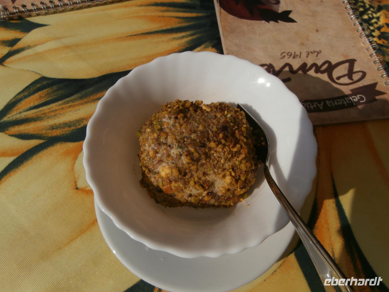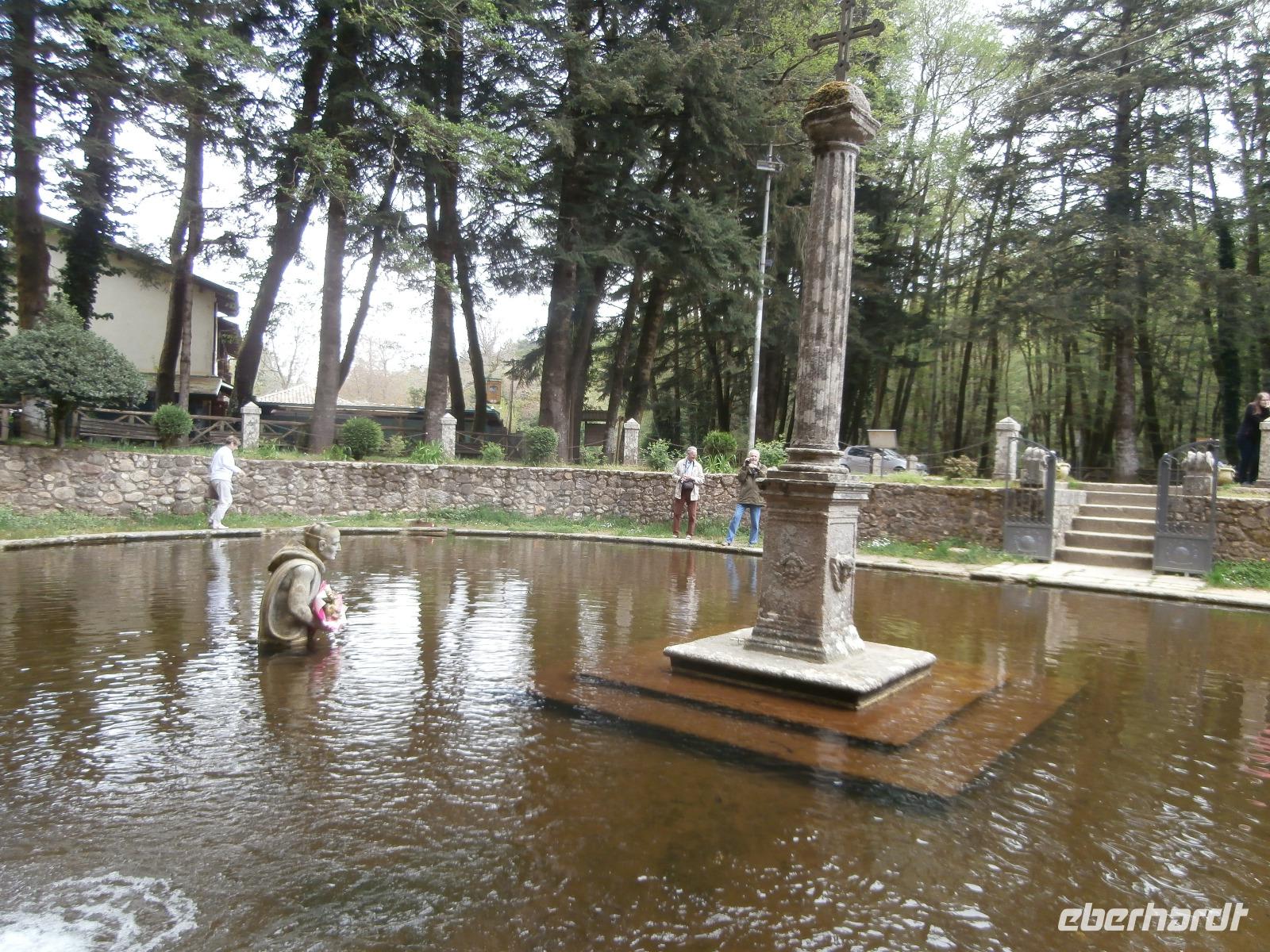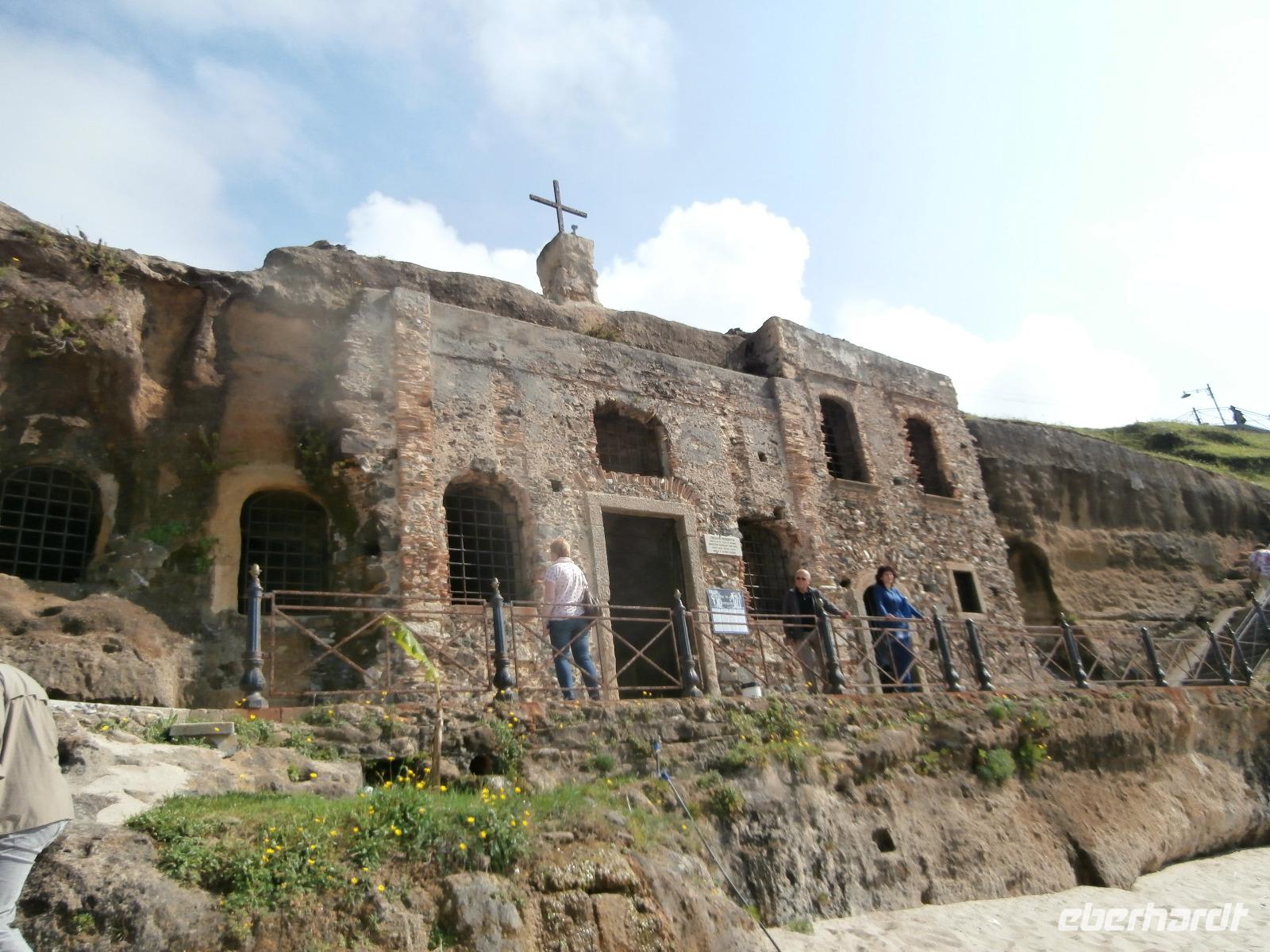 Bei einem schönen Waldspaziergang kommen wir zur magischen Wunschquelle, ein schöner Ort für Rückzug und Besinnung. Eine Spezialität kulinarischer Art sind hier in den Bergen Nudeln mit Steinpilzen, die wir zur Mittagszeit im Restaurant verspeisen. Am Nachmittag erkunden wir in Pizzo die Höhlenkirche im Tuffgestein Piedigrotta, es waren Schiffbrüchige, die nach ihrer Rettung hier einen Altar aufgestellt haben. Bei einem Spaziergang erkunden wir danach die Altstadt von Pizzo. Hier muss man unbedingt das leckere Tartufo-Eis probieren. Ingrid gibt auf Kosten des Reiseveranstalters Eberhardt Travel für alle ein Eis aus, köstlich ist der Genuss. Der Schutzheilige der Stadt Pizzo, Georg, hat heute seinen Tag. Ihm zu Ehren spielt am Hauptplatz noch eine Musikkapelle auf. Ein schöner Abschluss für den Besuch in Pizzo. Pünktlich 18 Uhr sind wir zurück im Hotel Tropis.