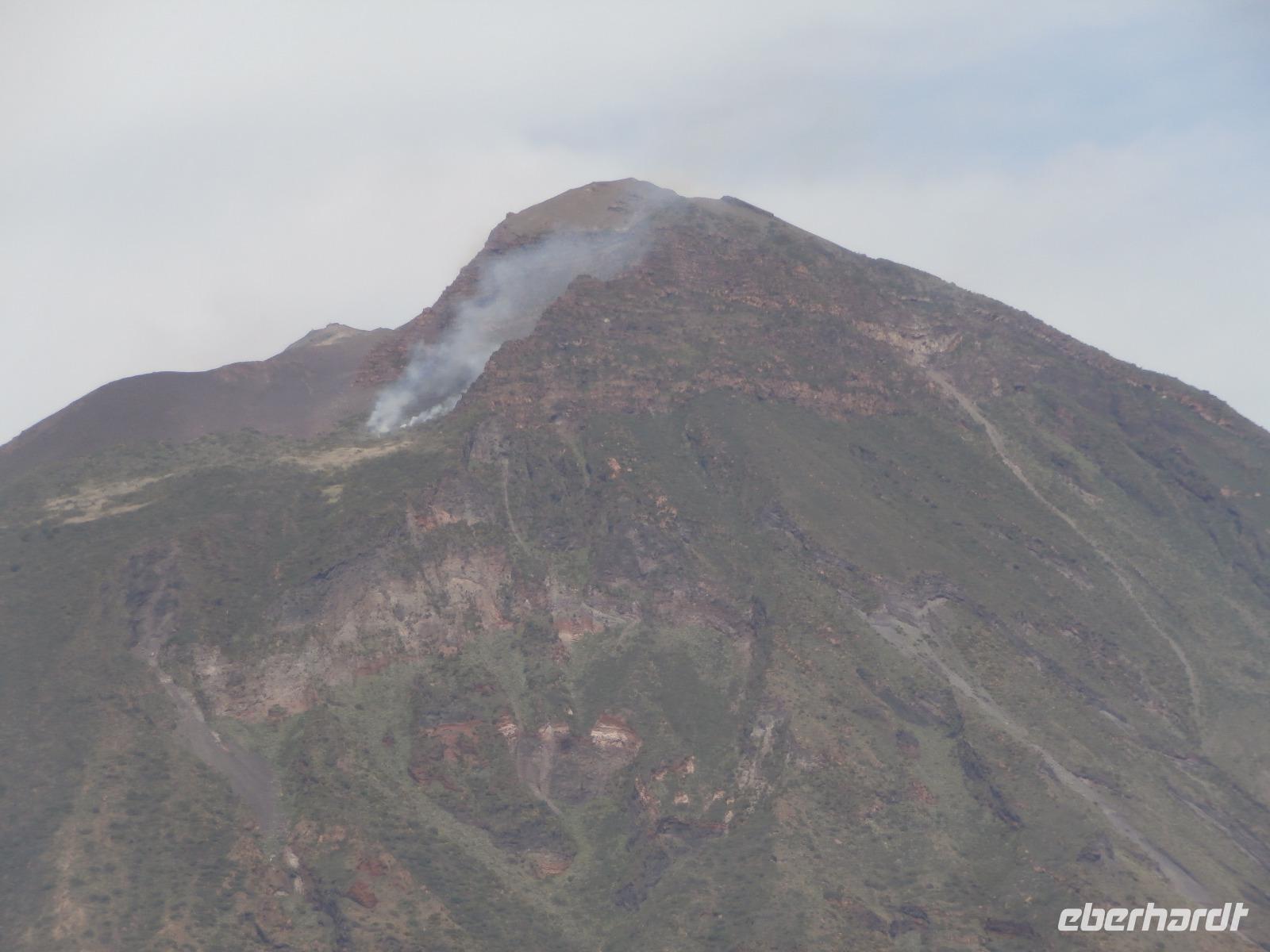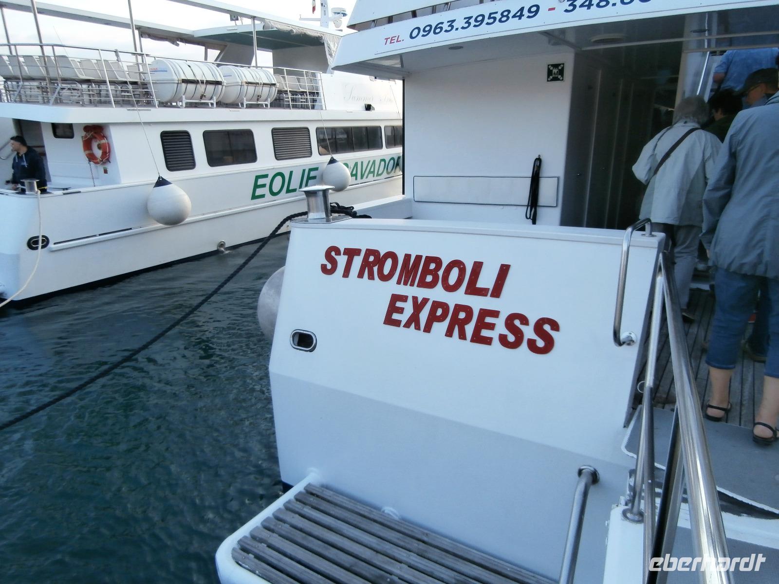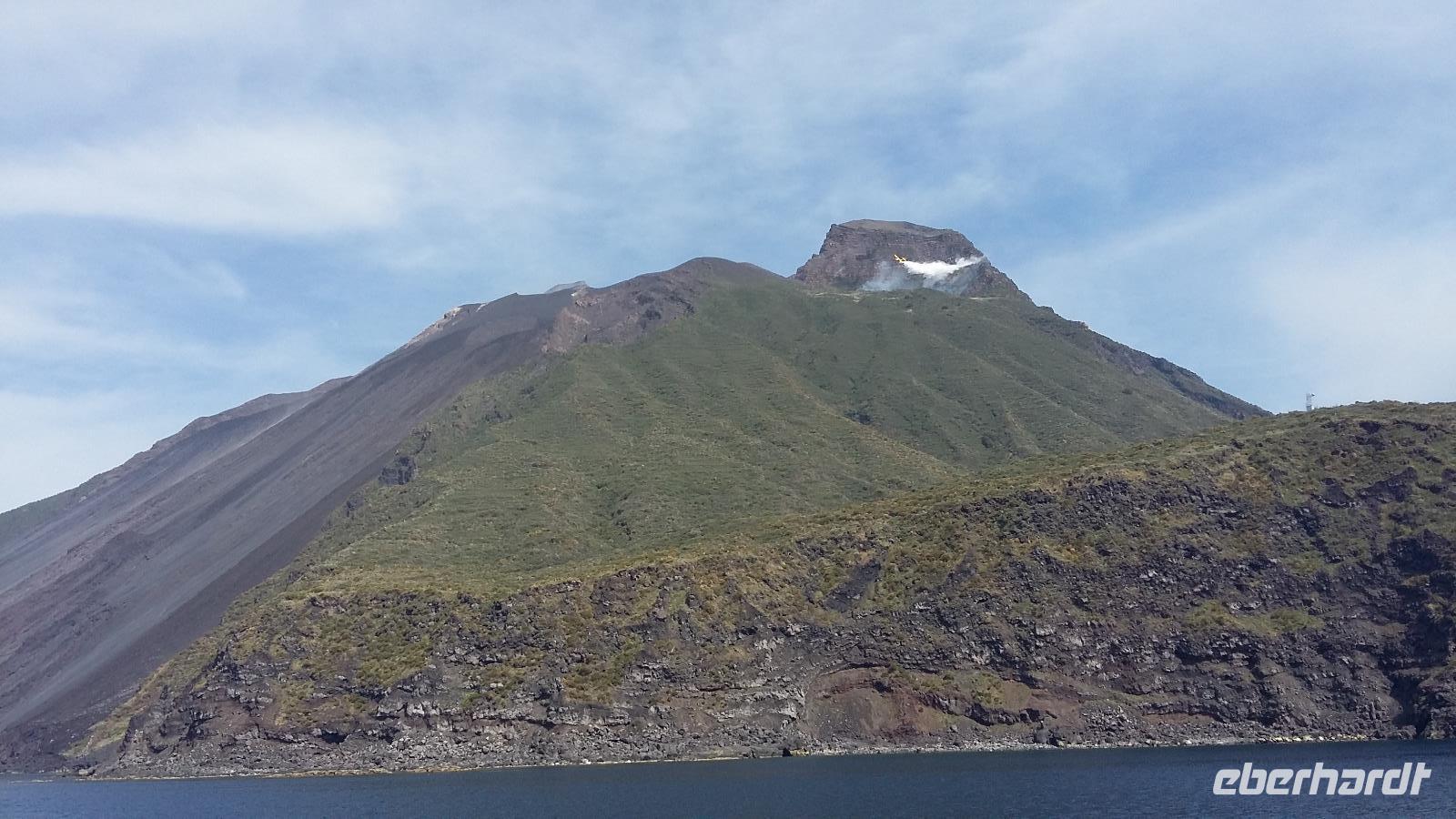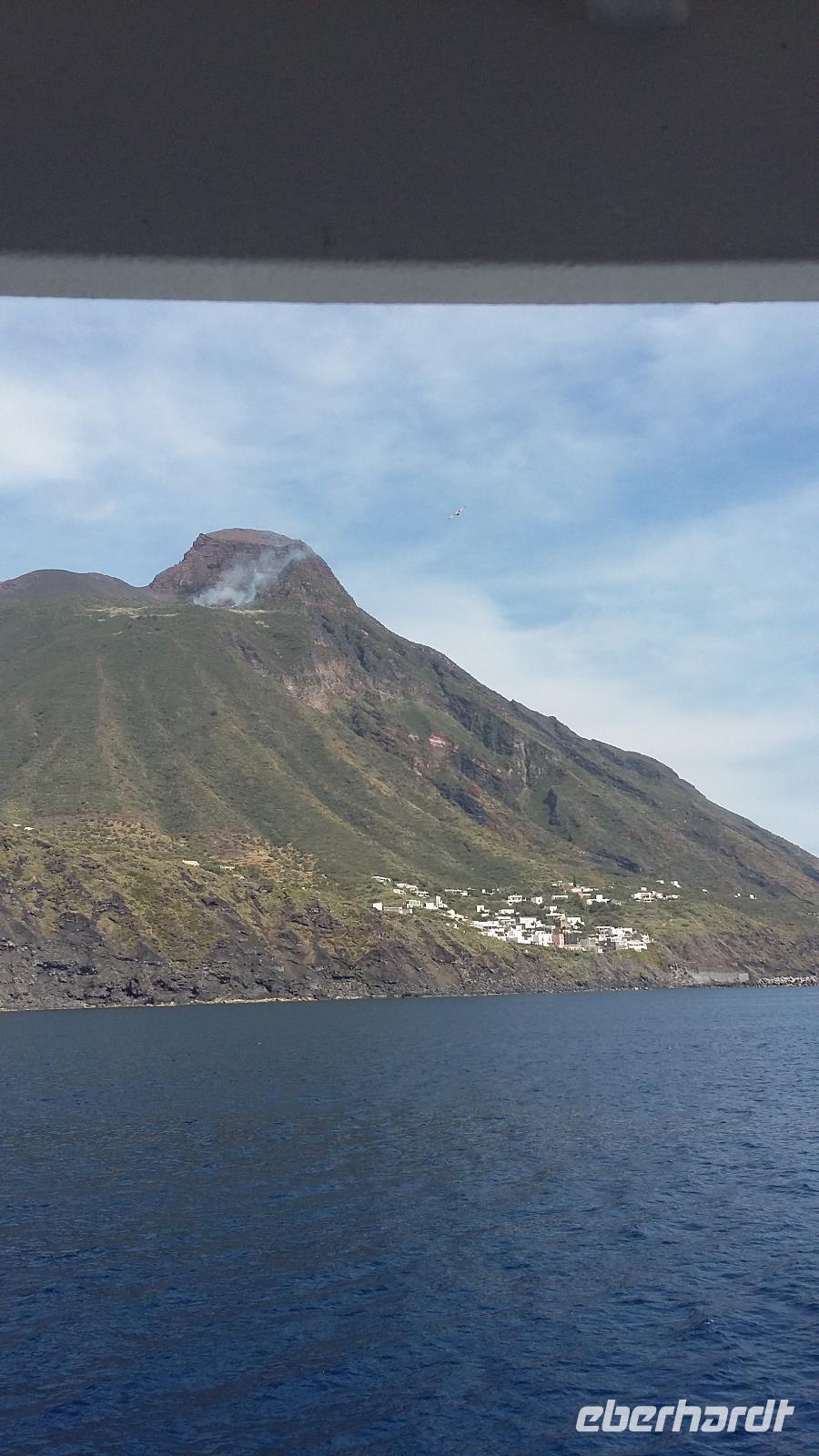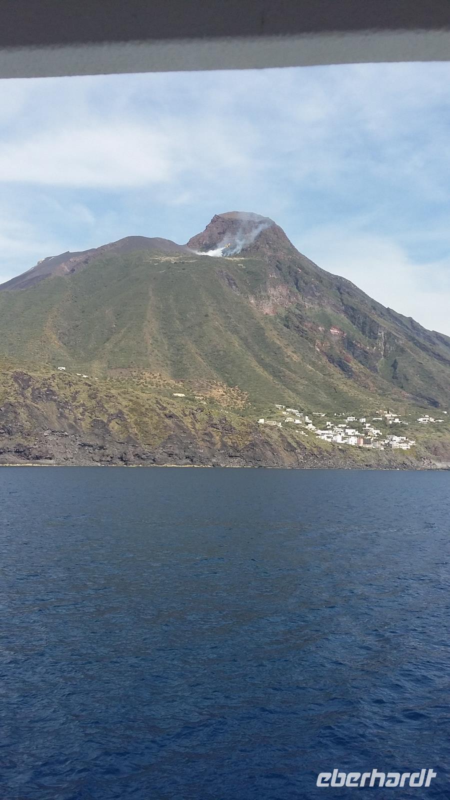 Wunderschönes Wetter am Morgen ermöglicht uns heute diesen fantastischen Ausflug zu den Äolischen Inseln. Das Mittelmeer ist glatt und ruhig und so machen wir uns in kleinerer Gruppe von 14 Reisegästen auf den Weg hinunter zum Hafen von Tropea. Mit dem Bus geht es schon 07.00 Uhr am Morgen zum Schiff „Stromboli Express" und eine halbe Stunde später sind wir bereits auf Fahrt zur ersten Insel, Vulkano sehen wir bei Sonnenschein und überall liegt der Schwefelduft in der Luft. Er wird von den vielen Fumerolen der Insel erzeugt. Die Schwefelschlamme von Vulkano haben eine starke heilende Wirkung. Auf der Weiterfahrt nach Lipari werden wir von Delphinen begleitet, das ist echt ein tolles Schauspiel und so mancher Reisegast ist bemüht, die flotten Schwimmer aufs Bild zu bannen. Lipari ist wieder ganz anders als Vulkano, geschäftstüchtig, städtisches Leben mit schönen Geschäften findet man hier, aber auch eine tolle Aussicht vom Burgberg mit Kathedrale hinunter zum Hafen. Verwinkelte Gassen mit zahlreichen Kaffees, Boutiquen und Souvenirläden laden zum Verweilen und Bummeln ein. Wunderschöne Natur lädt auch zum Wandern ein, die Zeit dafür haben wir heute nicht. Als letzte Insel wartet Stromboli auf uns. Die Feuerspuckerin, die aus einem ca. 900 m hohen Vulkan besteht, erwartet uns mit einem besonderen Specktakel. Immer noch aktiv, sie gehört zu den vier aktivsten Vulkanen Italiens, hat sie heute eine besonders starke Eruption. Es kommt zu einem Flächenbrand unterhalb, der mit Wasserbomben aus 2 Flugzeugen versucht wird zu löschen. Immer wieder landen neben uns die Flugzeuge im Wasser und starten wieder vollgefüllt mit Wasser zum Vulkan. Es ist für uns alle ein nicht alltägliches Schauspiel, es wird gefilmt und noch mehr fotografiert. WOW. An Land machen wir einen Spaziergang durch den schwarzen Lavasand bis hinauf zum Platz mit der Kirche, von hier gibt es eine schöne Aussicht. Wir sehen viele Wandertouristen, die schon mit Helm, Wanderstöcken und Stirnlampen ausgerüstet sind. Das FireTrekking startet täglich gegen 17 Uhr hinauf zum Kraterrand und in den Sonnenuntergang, hier kann man dann bei guten Bedingungen dem Vulkan beim Feuerspeien zuschauen.