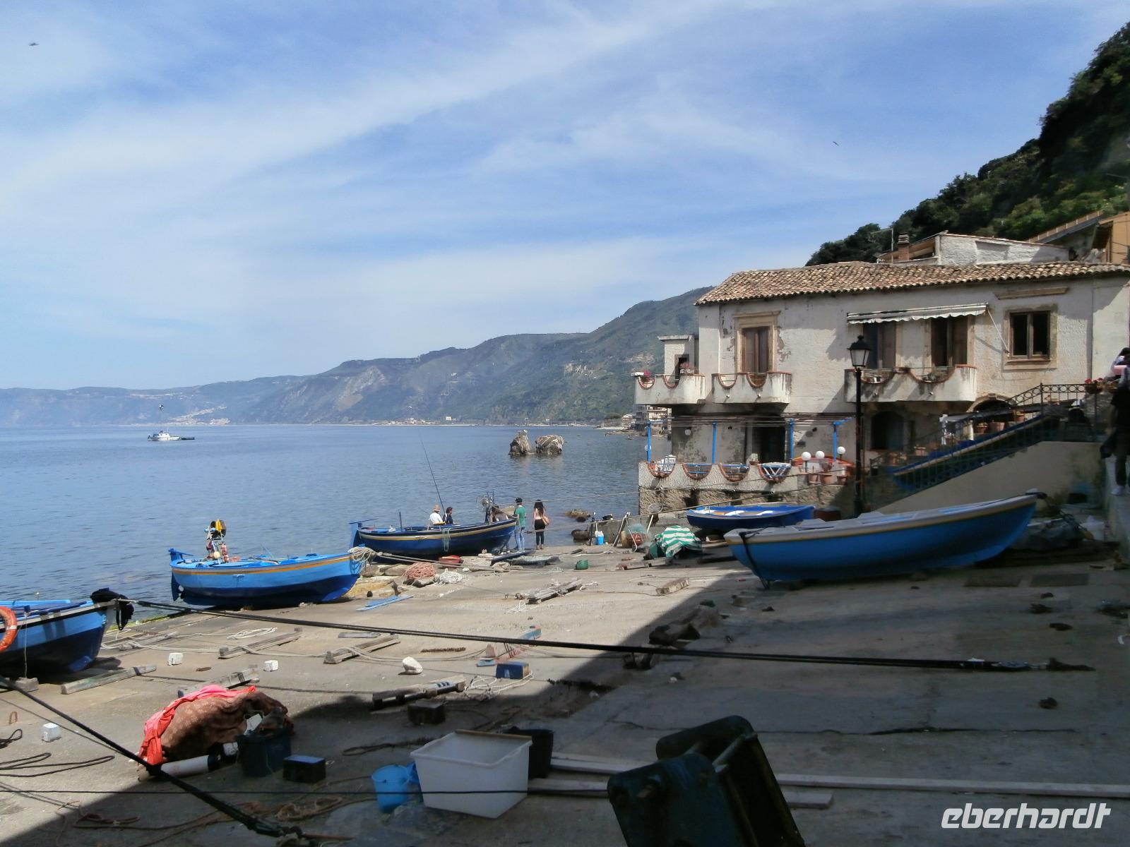 Wir haben heute Feiertag in Italien, also sind wir mit all den Einheimischen unterwegs. Der südlichste Zipfel Italiens, die Straße von Messina mit Reggio Calabria, ist unser 1. Ziel am Morgen. Wir sind Sizilien sehr nah, die Straße von Messina trennt uns von Sizilien. An der Strandpromenade „Lungomare" bummeln wir entlang, hier nehmen wir unser Gruppenfoto auf. Der Ätna ist auch zu sehen, im Anschluss besuchen wir den Dom, er ist sehr schön anzusehen und begeistert mit einer sehr angenehmen Ausstattung. Ein besonderer Fund von 2 Bronzestatuen sorgt im Jahre 1962 hier in der Region für ein Aufsehen. Im Nationalmuseum vor Ort sehen wir uns die 2 Bronzekrieger A und B an. Die Weiterfahrt zeigt uns nochmals, dass Sizilien und Messina nicht weit von hier entfernt sind. An der schmalsten Stelle sind es nur 3,7 km und schwimmend durchaus machbar, um nach Sizilien hinüber zukommen. Im Fischer Ort Scilla machen wir als Nächstes unseren Stopp. Der heutige Feiertag bringt uns auch hier die Begegnung mit den Einheimischen Leuten, ein willkommenes Gewusel. Die kalabrische Sonne meint es auch heute gut mit uns, Scilla an einer traumhaften Bucht gelegen, besuchen wir nun. Im Fischerviertel mit seiner einmaligen Atmosphäre werden wir fündig, Seife mit der Bergamotte und Eis zum Genießen, wir haben einen schönen Tag. Hier gibt es Spezialboote, mit denen man zum Fangen des Schwertfisches hinaus fährt. Mit fantastischen Eindrücken kehren wir zum Hotel zurück.