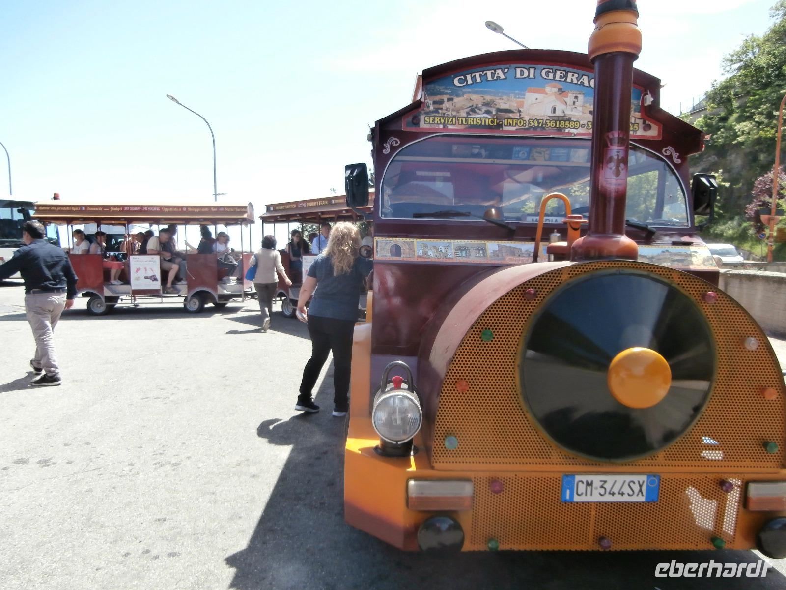 Mit der Bahn und flotter italienischer Musik drehen wir noch im alten Dorf eine Runde, ehe wir mit dem Bus wieder zurück zum Hotel fahren.