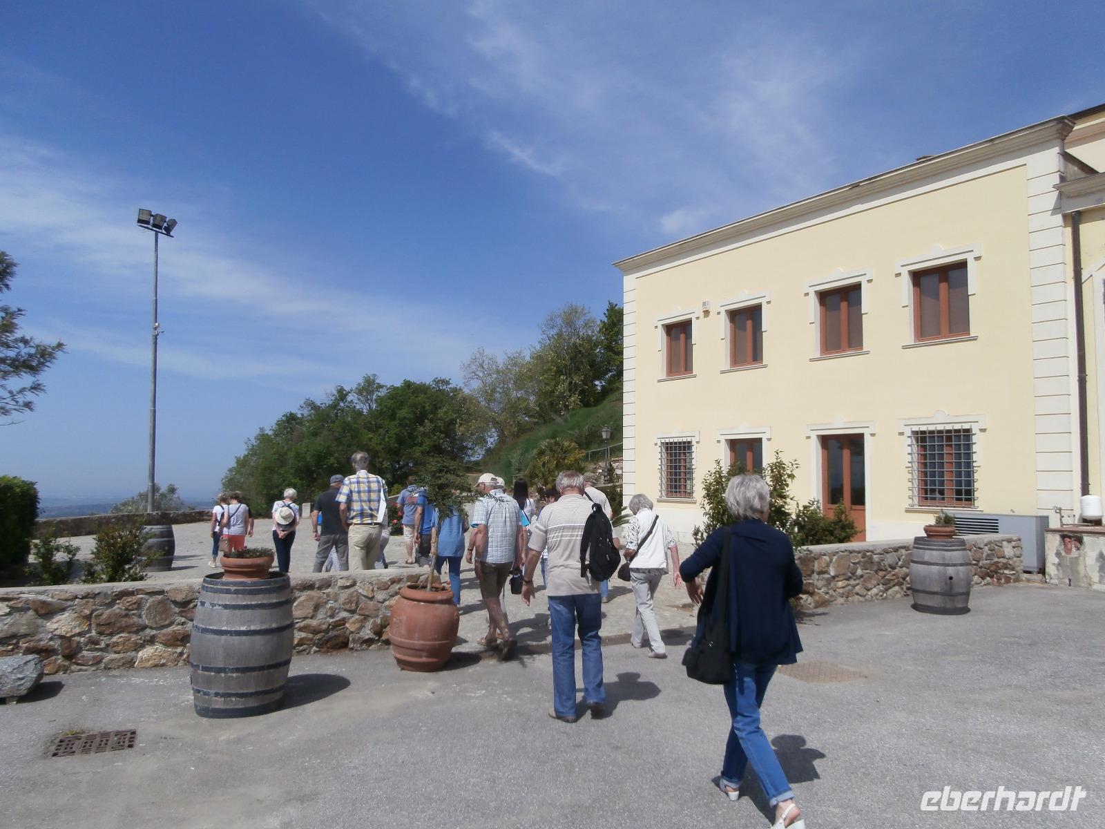 Ja auch heute lacht der Reisegruppe wieder die Sonne, es geht nach Lento in die Weinkellerei, die in 4. Generation im Familienbesitz besteht. Claudia stimmt uns auf das Weingut, die Bedeutung des Weines für die Region ein und erzählt uns über die alte Geschichte, die Kalabrien mit der Weinherstellung verbindet. 2 Sorten verkosten wir, der Weiße ist der Greco, schmeckt fruchtig und der Rote ist der Amatus, ein Wein, der schon etwas schwerer ist. Dazu bekommen wir Schafskäse, Salami, Schinken, Speck und Brot mit Olivenaufstrich serviert. Im Weinkeller umspielt uns eine bezaubernde Atmosphäre, wir sehen alte Weinfässer hinter Glas. Wir verabschieden uns von Massimo unserem Buschauffeur und von Claudia, sie haben uns in dieser Woche Kalabrien näher gebracht.