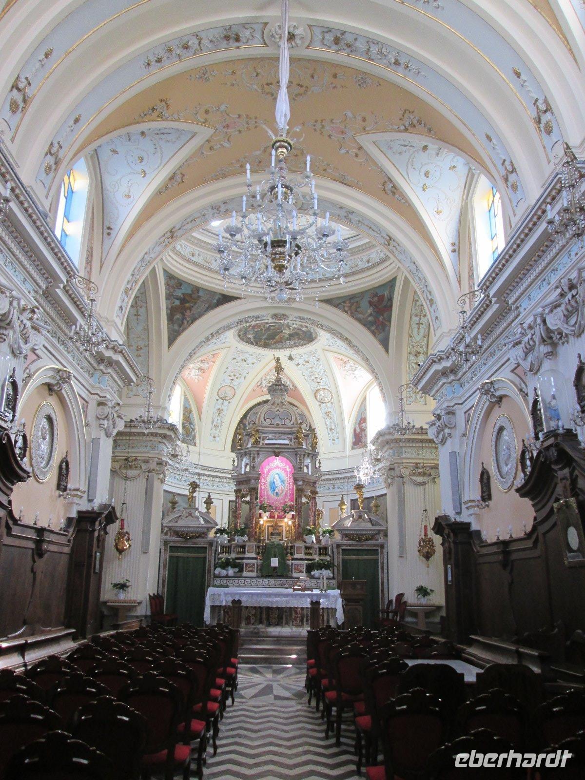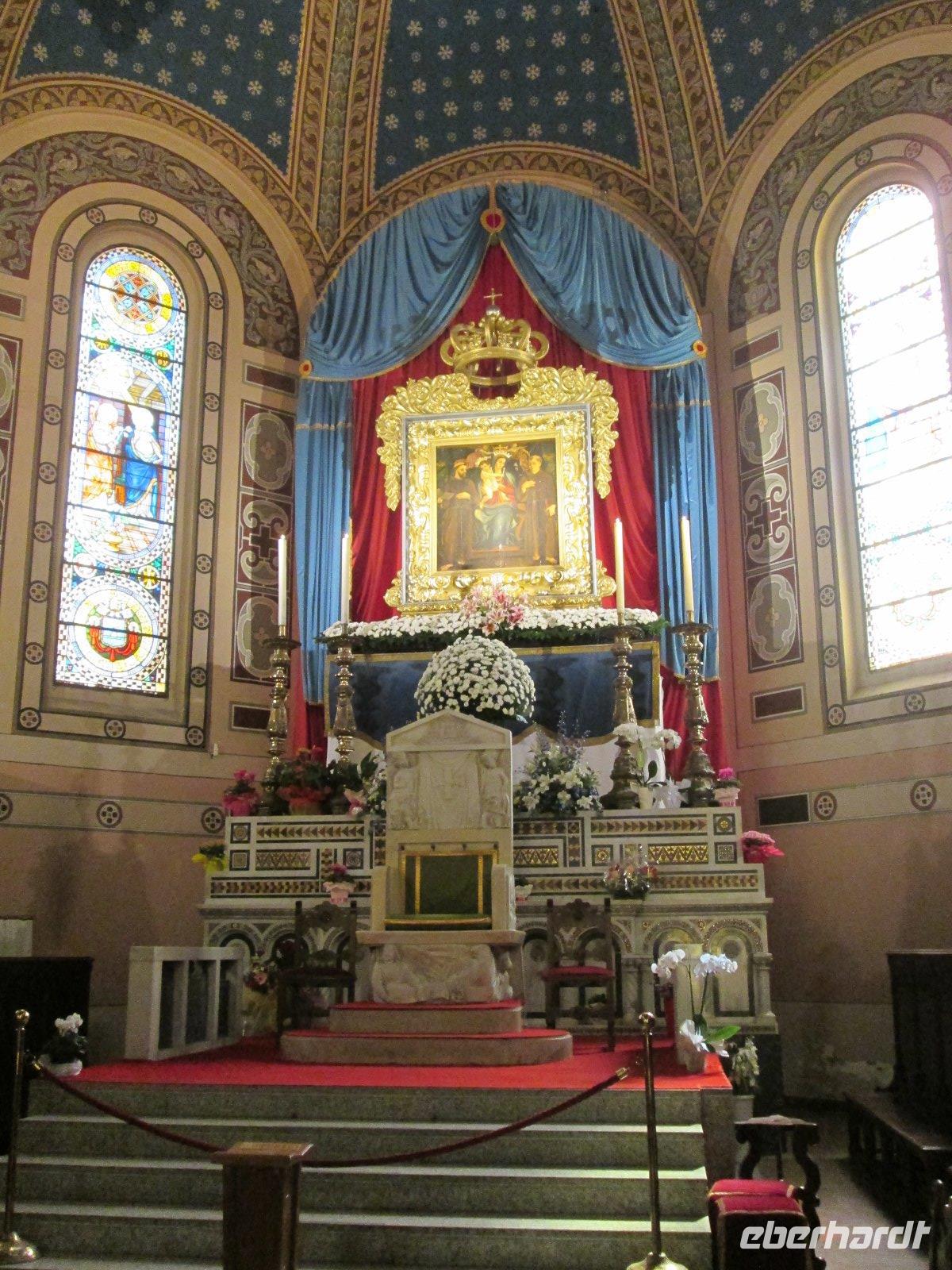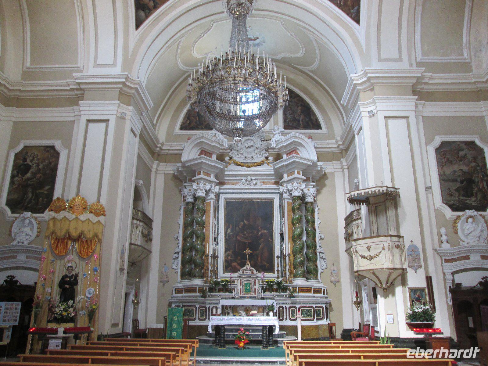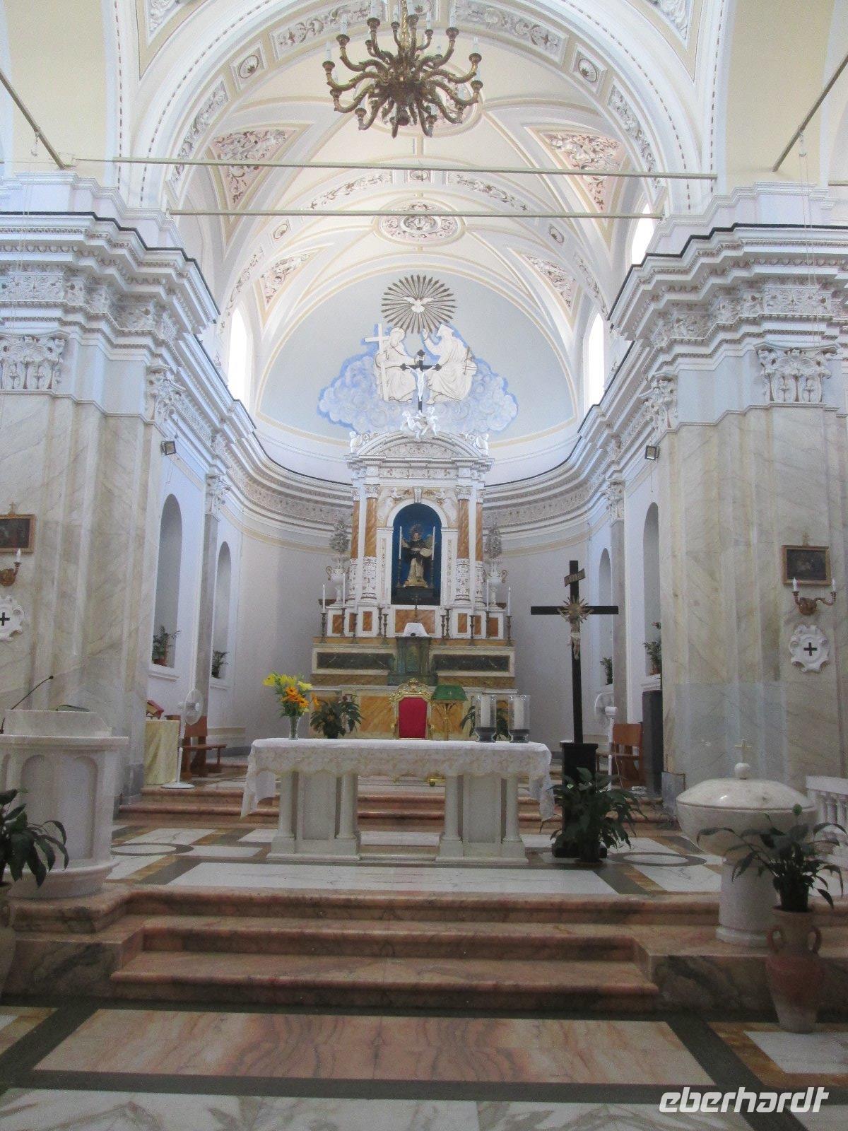 Sehenswert sind die im griechisch-byzantinischen Stil gehaltene Kruft, das Langschiff mit den unterschiedlichen Säulen und der Hauptaltar, geweiht im Jahre 1731, mit dem Kruzifix und den großen Bronzekandelabern.