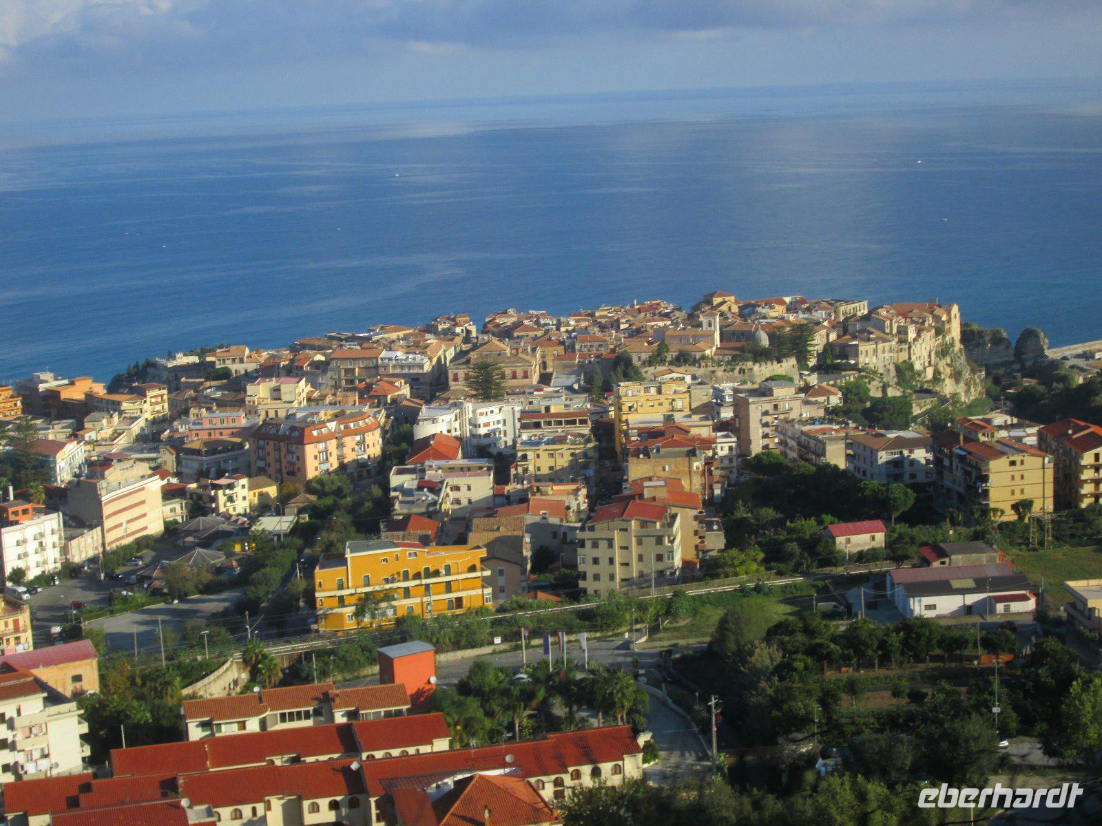 Tropea trägt den Beinamen "Perle am Tyrrhenischen Meer" aufgrund der malerischen Lage auf einem ca. 60 Meter hohen Felshang. Bei gutem Wetter hat man Sicht bis zu den Äolischen Inseln. Der Stadtkern ist von engen Gassen durchzogen und die vielen kleinen Geschäfte laden zum Verweilen und Kaufen ein.