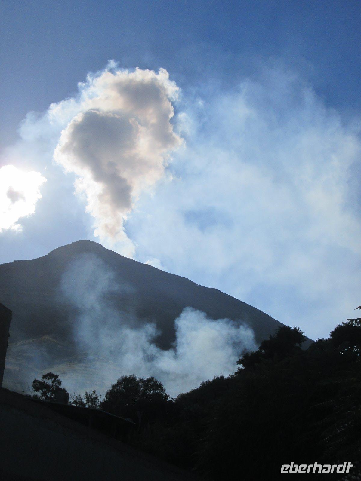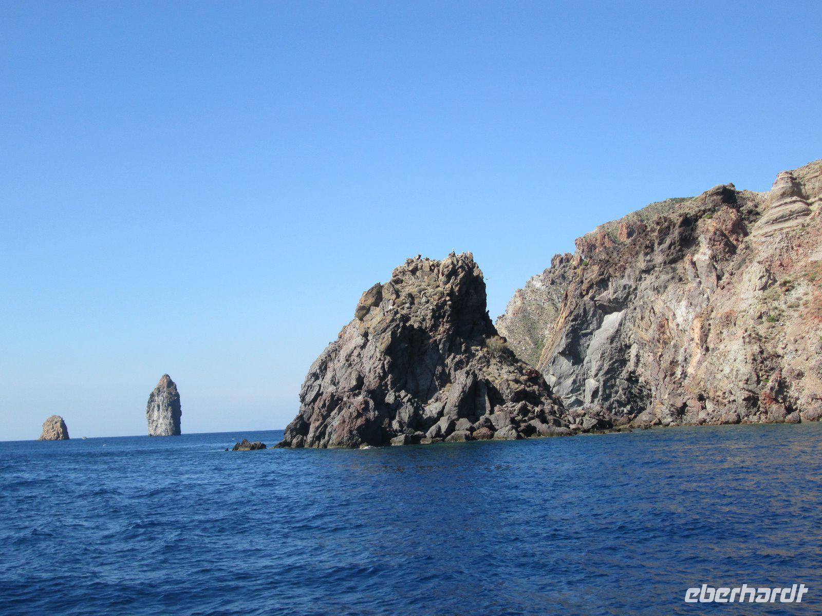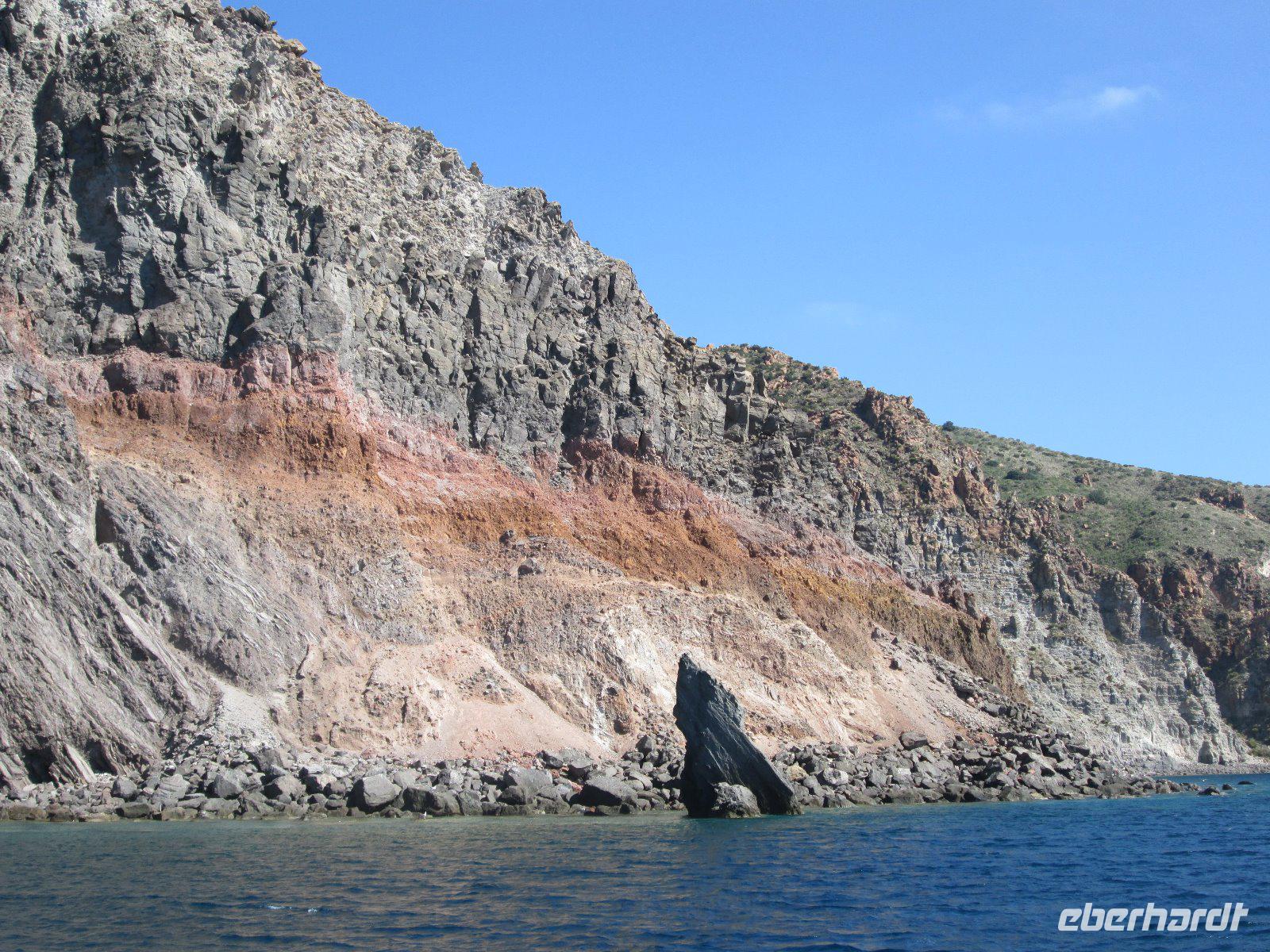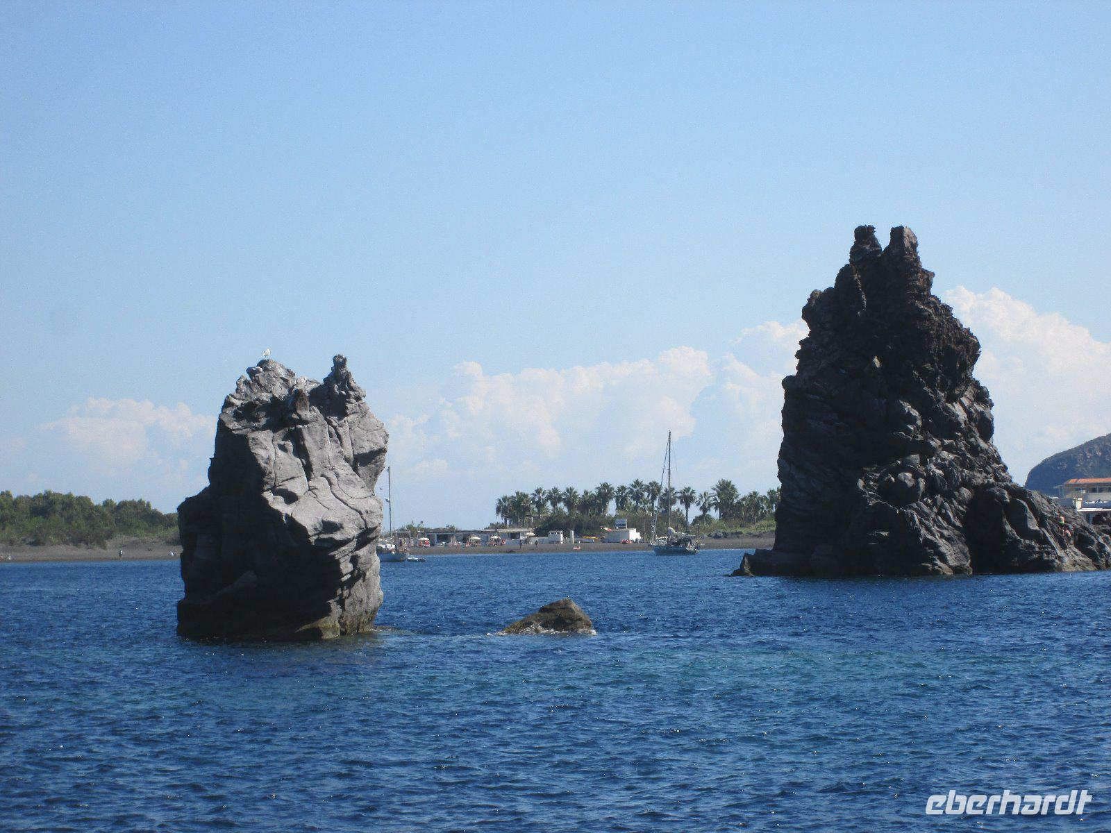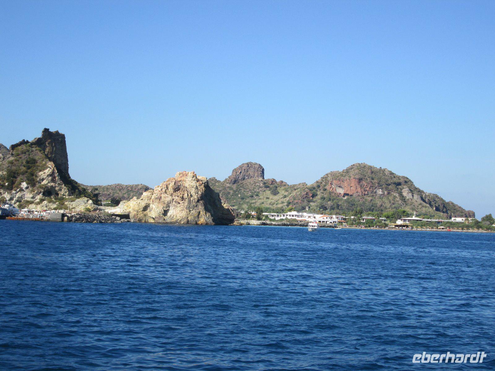 Vulcano machte den Anfang. Schon in der Nähe des Hafens, Porto di Levante, wird man von der Schönheit des Ortes und dem scharfen Schwefelgeruch überrascht sein. Die schwefel-und kohlendioxydhaltigen Rauchsäulen, die dem Krater und den Bodenspalten entweichen, zeigen uns, dass der Vulkan immer noch aktiv ist. Die Insel verdankt ja schließlich ihren Namen der gewaltigen vulkanischen Aktivität.