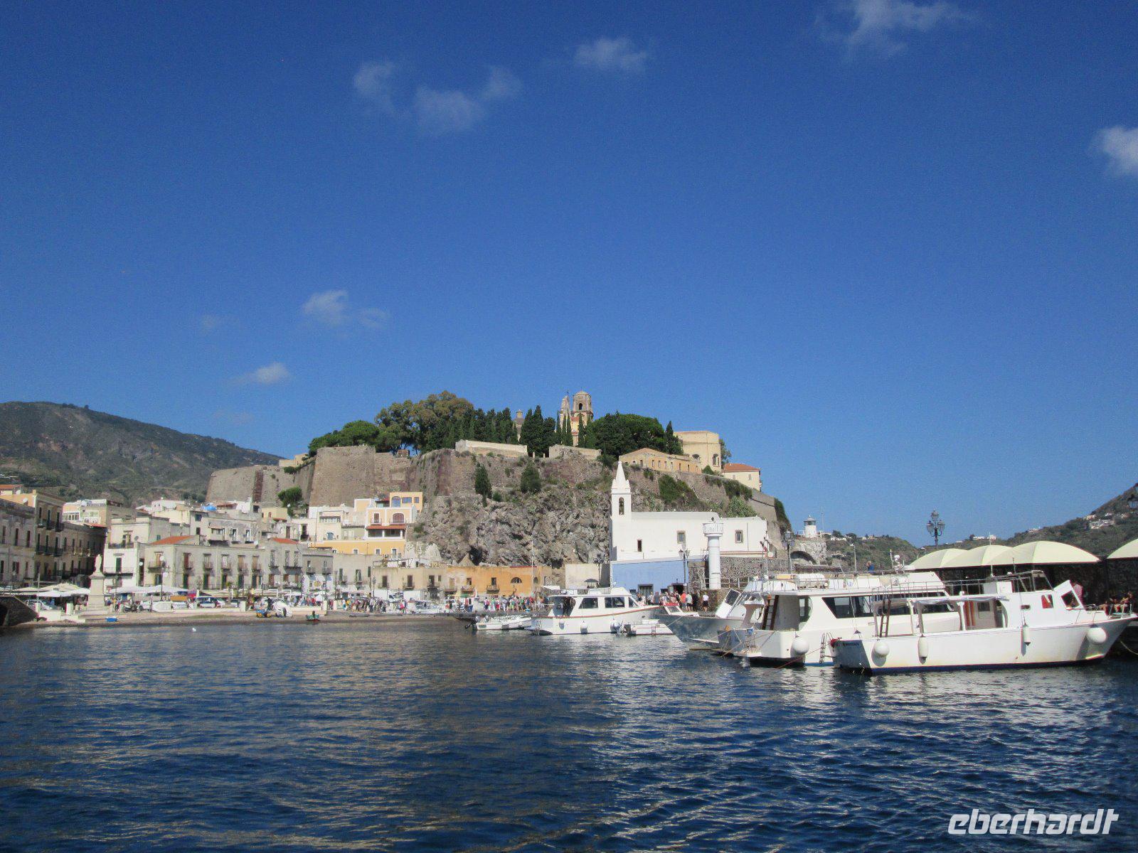 Die 2. Insel war Lipari. Sie ist die größte und bevölkerungsreichste des Archipels. Am Fuße der Festung, auf der sich einst die griechische Akropolis befand, gibt es 2 Buchten, Marina Corta nördlich und Marina Lunga südlich. Auf der Flaniermeile gab es die Möglichkeit zum Mittagessen, oder bei einem Eis die Seele baumeln zu lassen oder zu shoppen. Dabei entdeckte man heimische Produkte, zum Beispiel Malvasia Wein oder Kapern.