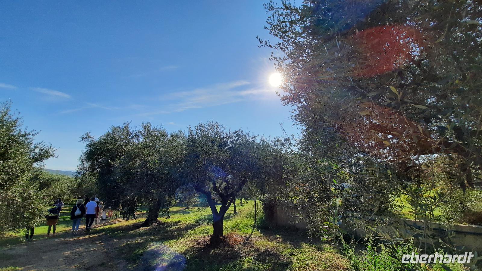 Nach dem Frühstück begrüßten wir neben Claudia auch unseren Busfahrer Thomaso und fuhren Richtung Süden Kalabriens. Blauer Himmel und Sonnenschein begleiteten uns am Morgen, daher konnten wir immer wieder tolle Ausblicke auf Tropea und das blaue Meer genießen. Von unserer Reiseleiterin erfuhren wir die ersten Details über die familiären Kalabresen, der Hochebene im Serragebiet, welche wir soeben durchfuhren und die Viehzucht. Wir passierten die hübsche Sommerresidenz der Familie Caluppi und Claudia erklärte uns bildhaft die Unterschiede des hiesigen Olivenöls. Wir erreichten Zungri und konnten uns nun selbst davon ein Bild machen, während wir eine Führung über eine Olivenplantage erhielten. Die Sonne schien herrlich durch die mit Oliven prall gefüllten Zweige, interessiert folgten wir allen Erklärungen und freuten uns im Anschluss über ein paar leckere Kostproben. Unser Tagesausflug führte uns nun weiter in das Örtchen Nicotera, den südlichsten Punkt der Costa degli Dei. Wir spazierten durch die Gassen und konnten uns selbst von der Schönheit der Götterküste überzeugen. Claudia führte uns durch das jüdische Viertel, anschließend besichtigten wir die Kathedrale mit einem beeindruckenden Holzkreuz aus der Renaissancezeit und schlenderten an bunten Marktständen in der individuellen Freizeit entlang. Anschließend durchquerten wir die kunterbunte Straße der Schirme um zum Bus zu gelangen. Unser nächstes Ziel war das Capo Vaticano, das Kap der Prophezeiung. Wir staunten über den tollen Ausblick, der sich uns bot und konnten uns kaum satt sehen. Einzigartig war, der Blick über das kristallblaue Meer bis hin zum Stromboli. Verzückt fuhren wir wieder nach Tropea zu Hotel zurück und konnten den Rest des Nachmittages nach Lust und Laune verbringen. Einige Gäste fuhren mit dem hoteleigenen Shuttle zum Strand, andere kamen mit in die Stadt spaziert, um diese bei bestem Sonnenschein bei einem italienischen Eis zu genießen. Am Abend trafen wir uns zum gemeinsamen Abendessen wieder und ließen den Tag zusammen ausklingen.