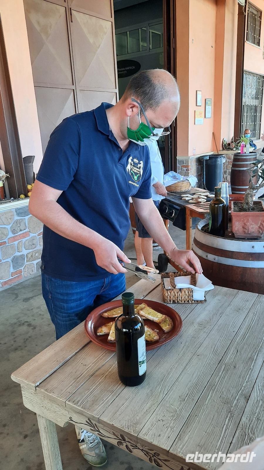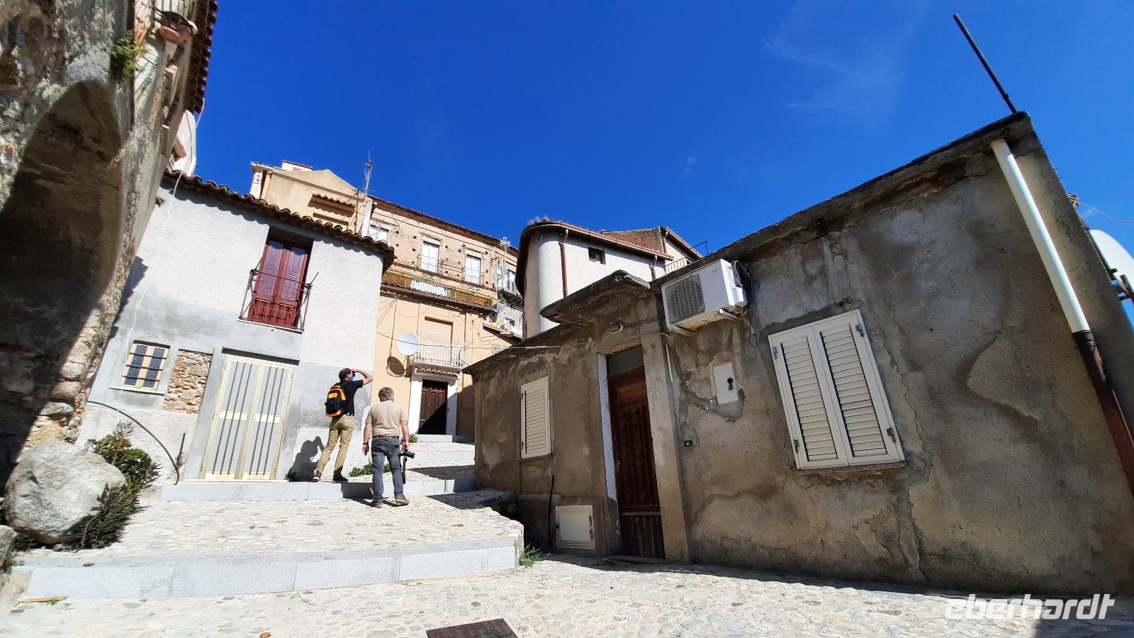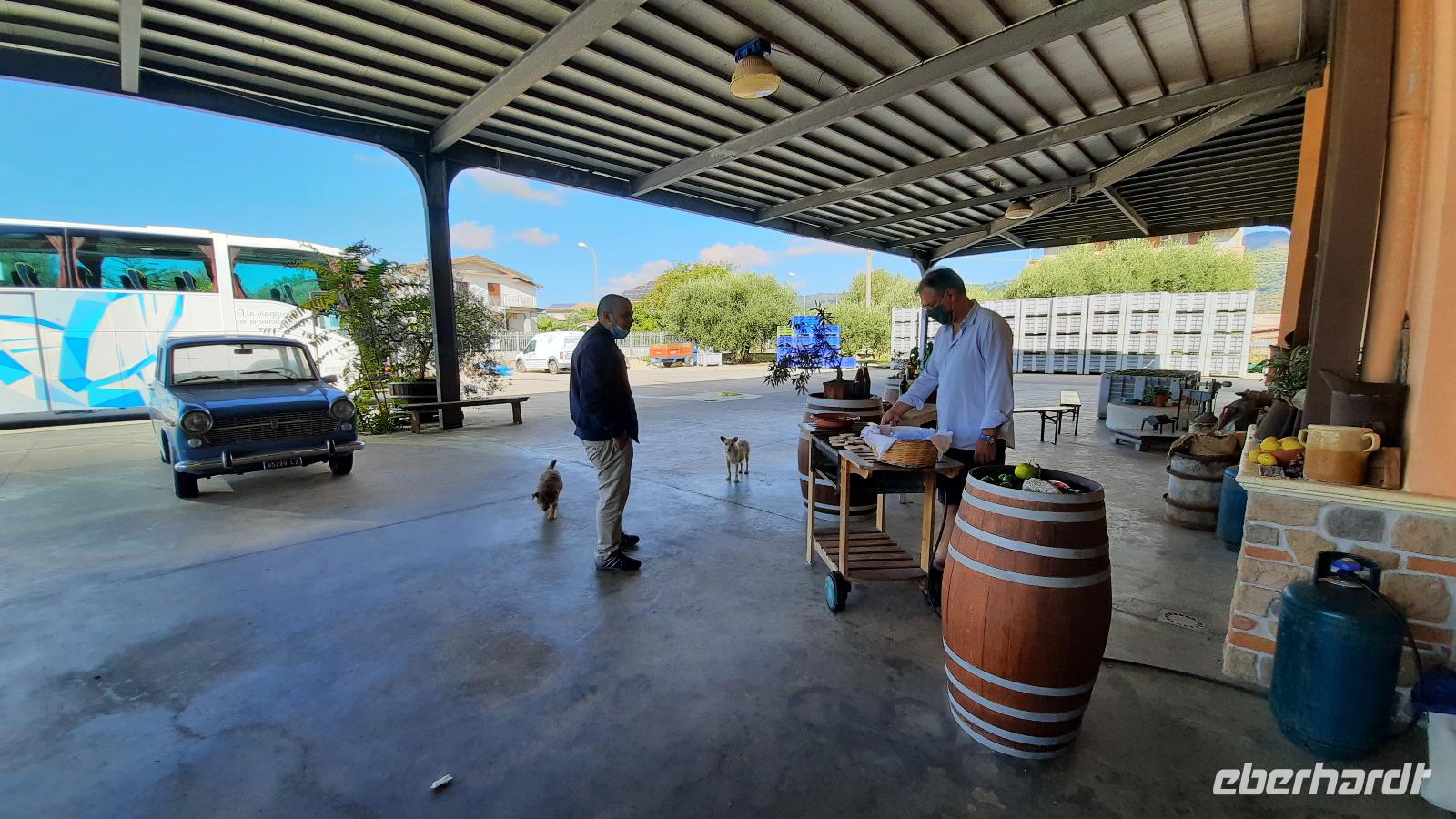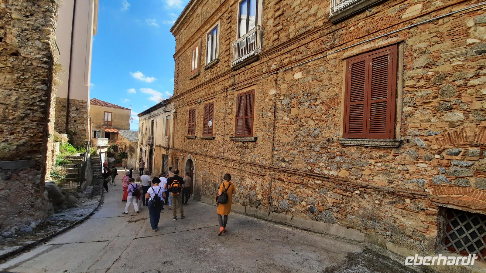 Während wir nach Mongiana weiterfuhren, erläuterte uns Claudia die ansässige Tier- und Pflanzenwelt Kalabriens. In Mongiana angekommen, konnten wir uns wieder von den Fahrtkünsten Thomasos überzeugen, denn es war gar nicht so einfach, die engen Kurven mit einem großen Bus zu meistern. Plötzlich kamen immer mehr Anwohner auf den Platz und jeder schien es mit seinen Gestikulationen mit uns gut zu meinen. Am Zielort angekommen, besuchten wir das Museum der königlichen Eisensengießerei und die anschließende historische Waffenfabrik. Eindrucksvoll wurde uns der Aufschwung der kalabrischen Wirtschaft im 17. Jahrhundert näher gebracht. Ein kleiner kalabrischer Snack wartete als Überraschung auf die Eberhardt-Gäste und sogar ein Bewohner der Stadt wollte uns gutes tun, indem er uns eine Flasche seines Weines zum kosten anbor. Wie nett, dachten wir alle und so ungewohnt für uns Deutsche.