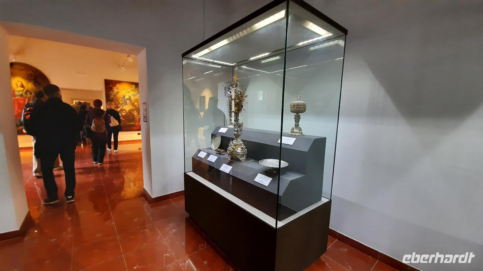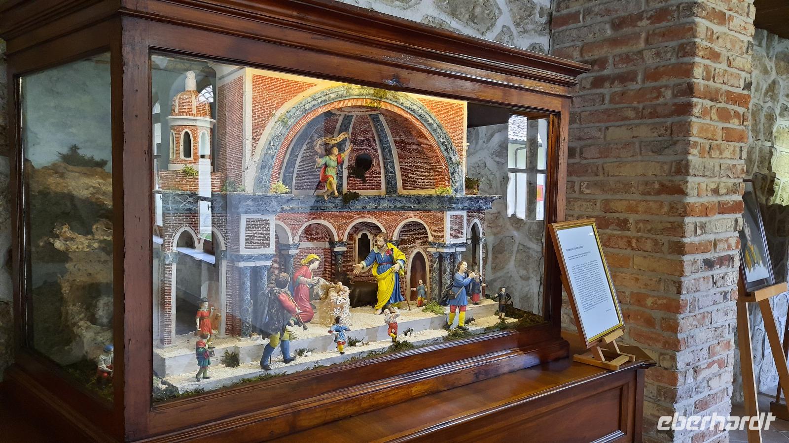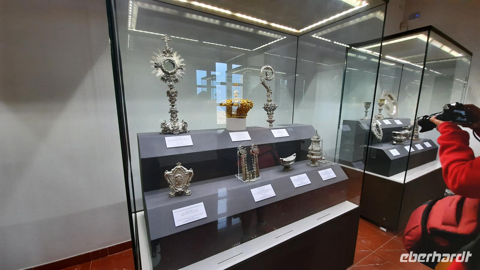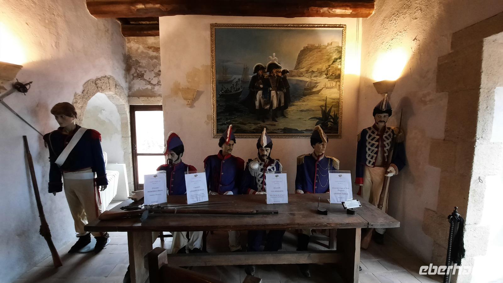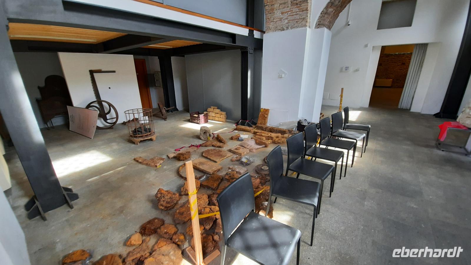 Während wir nach Mongiana weiterfuhren, erläuterte uns Claudia die ansässige Tier- und Pflanzenwelt Kalabriens. In Mongiana angekommen, konnten wir uns wieder von den Fahrtkünsten Thomasos überzeugen, denn es war gar nicht so einfach, die engen Kurven mit einem großen Bus zu meistern. Plötzlich kamen immer mehr Anwohner auf den Platz und jeder schien es mit seinen Gestikulationen mit uns gut zu meinen. Am Zielort angekommen, besuchten wir das Museum der königlichen Eisensengießerei und die anschließende historische Waffenfabrik. Eindrucksvoll wurde uns der Aufschwung der kalabrischen Wirtschaft im 17. Jahrhundert näher gebracht. Ein kleiner kalabrischer Snack wartete als Überraschung auf die Eberhardt-Gäste und sogar ein Bewohner der Stadt wollte uns gutes tun, indem er uns eine Flasche seines Weines zum kosten anbor. Wie nett, dachten wir alle und so ungewohnt für uns Deutsche.