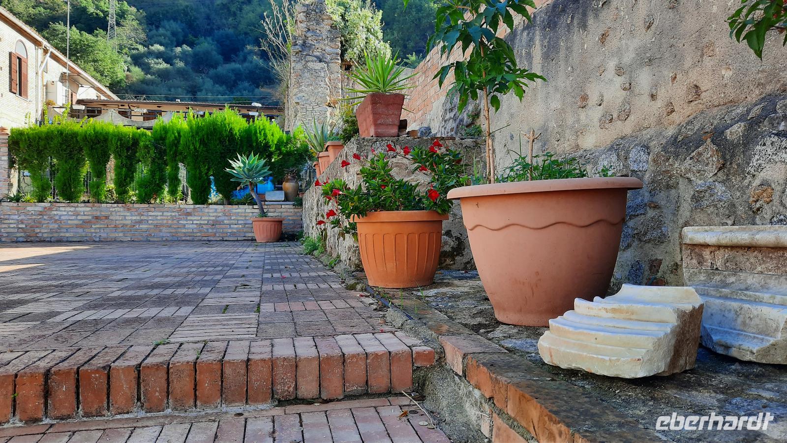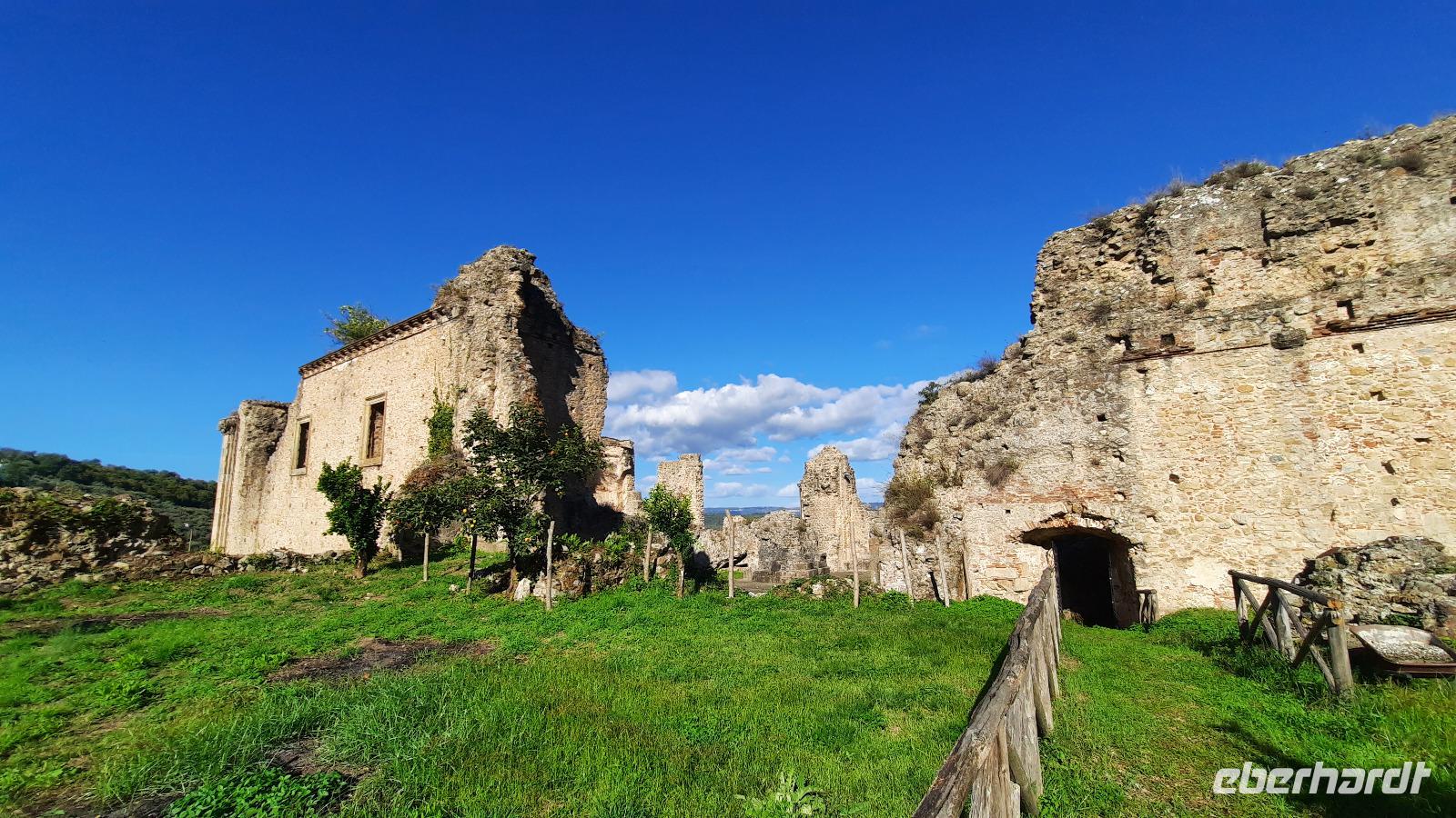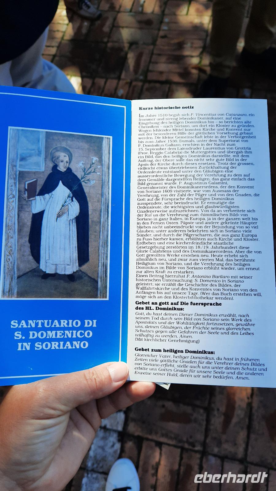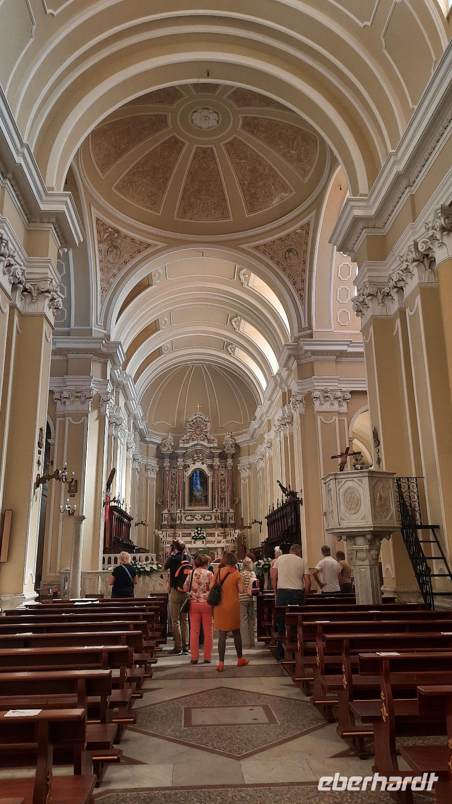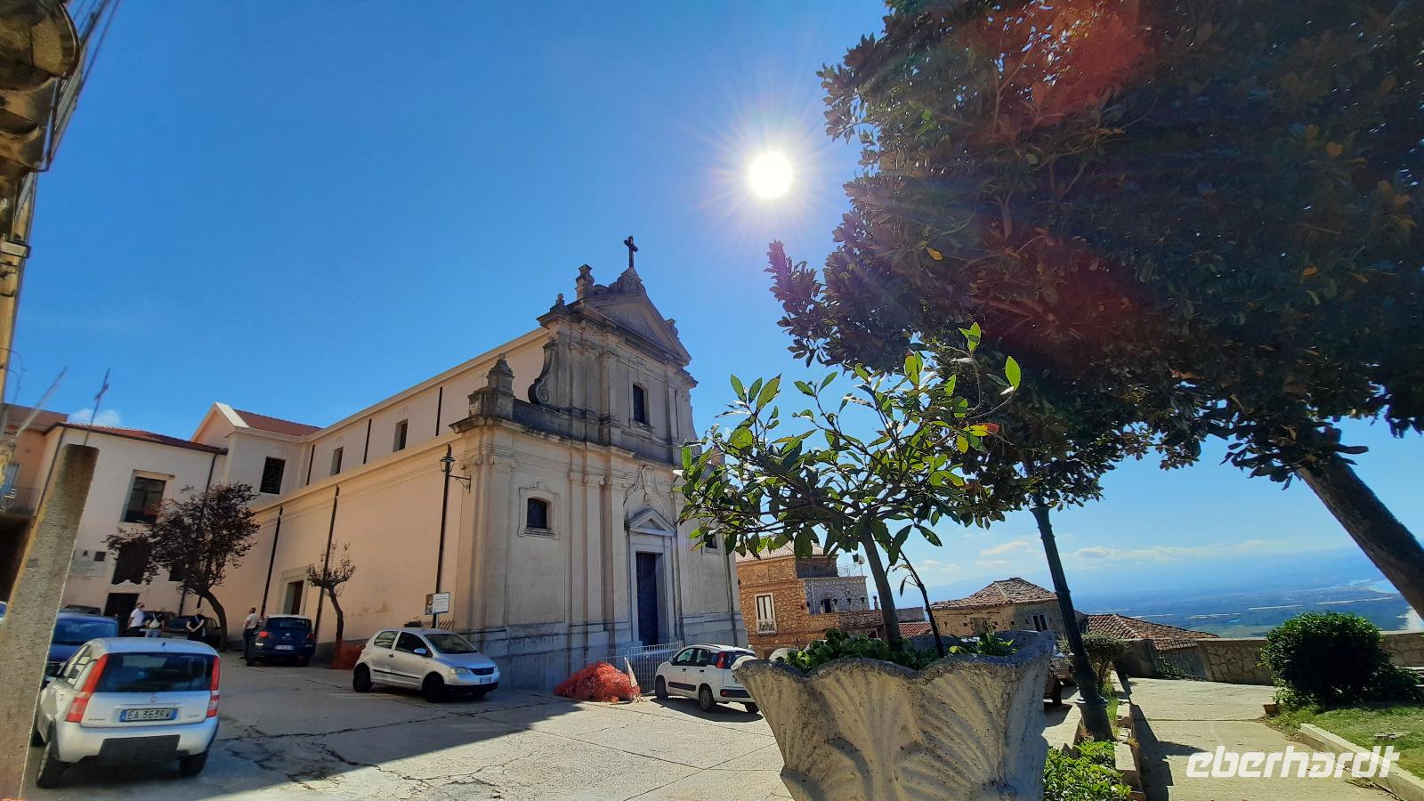 Nach dem Frühstück starteten wir in den sonnigen Tag. Wir fuhren durch wunderschöne Olivenhaine und Buchenwälder ins malerische Dorf Soriano Calabro und erhielten bei der Besichtigung der Klosterkirche des Klosters San Domenico spontan eine Führung von Pater Rosario. Begeistert folgten wir ihm, denn wir erkundeten das gesamte Gelände und bekamen Ecken zu Gesicht, die wir ohne ihn nie gesehen hätten. Im Anschluss bedankten wir uns bei ihm und erhielten eine Postkarte als Andenken.