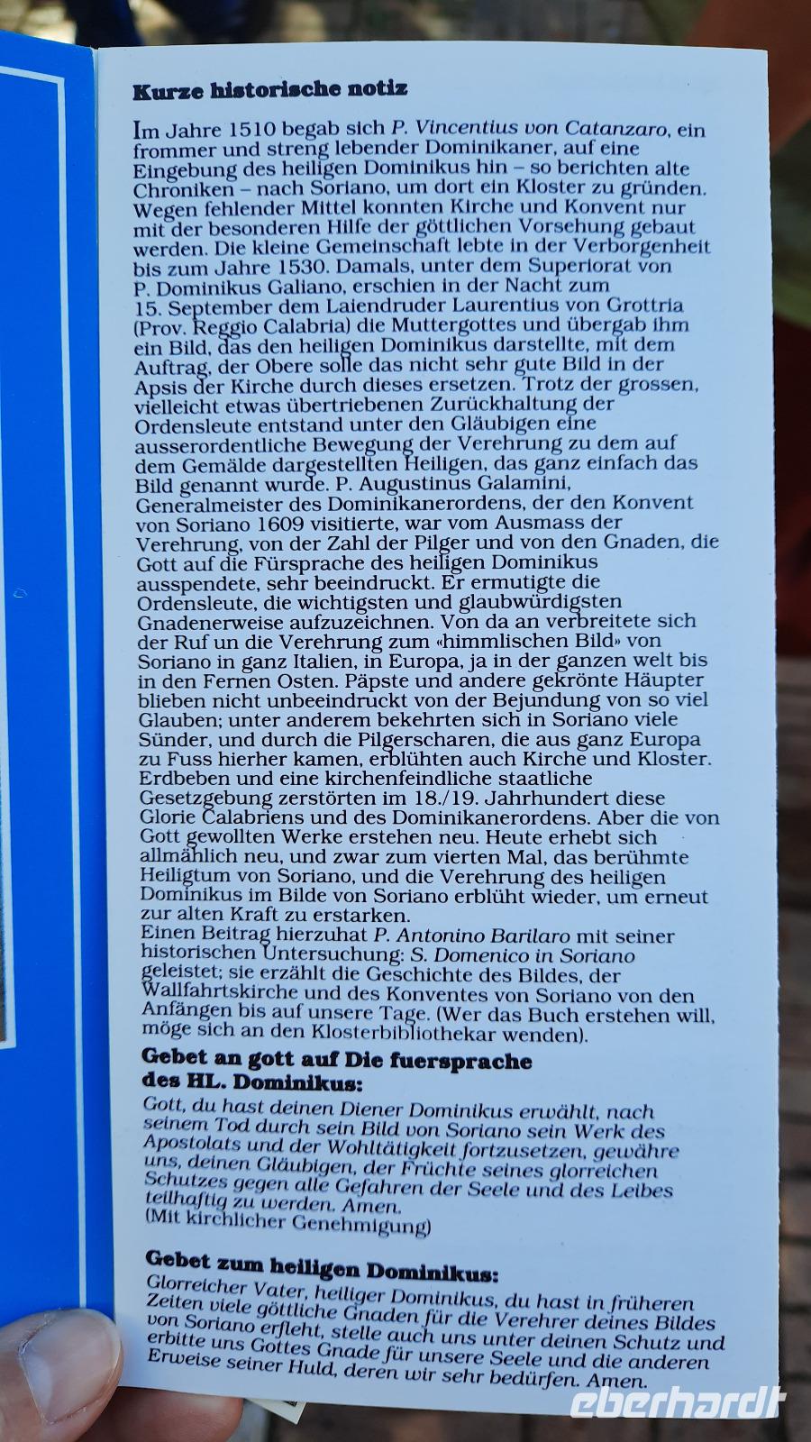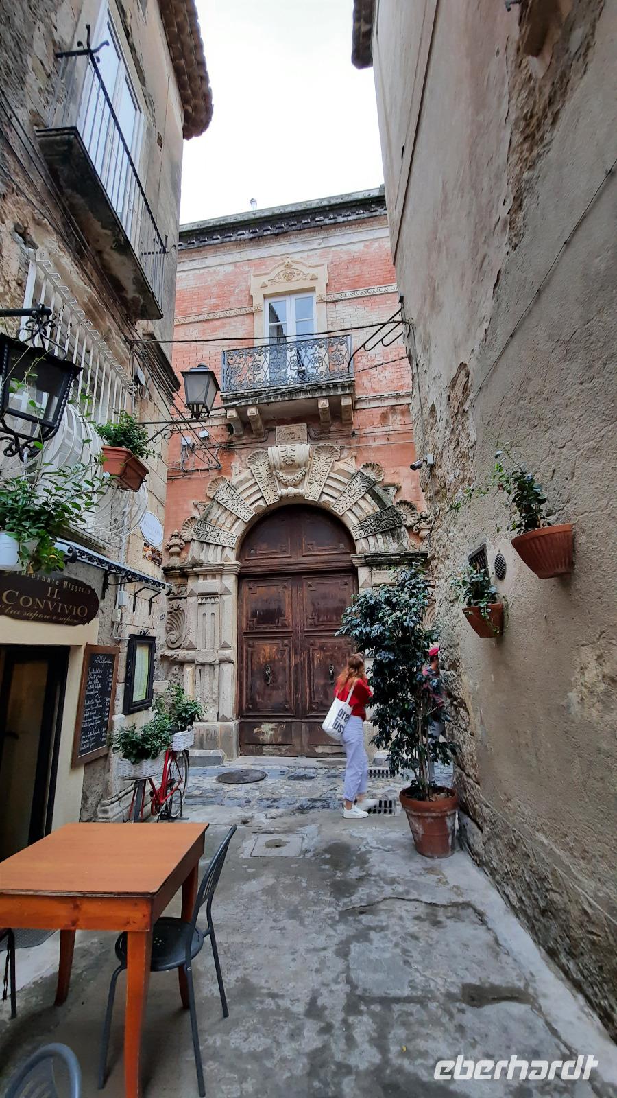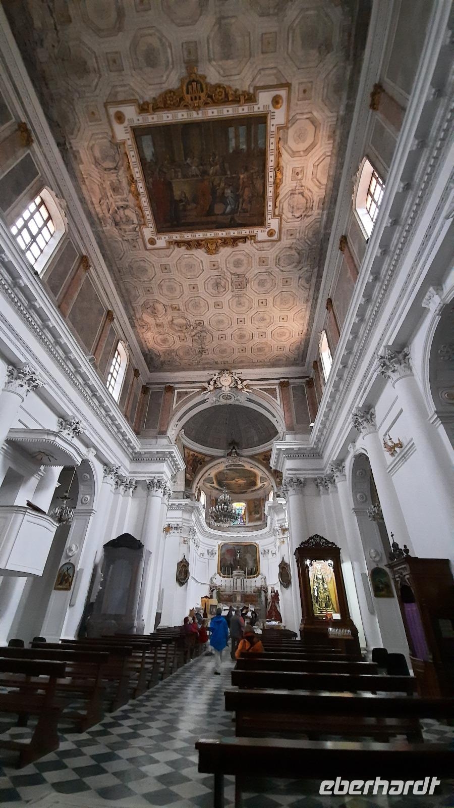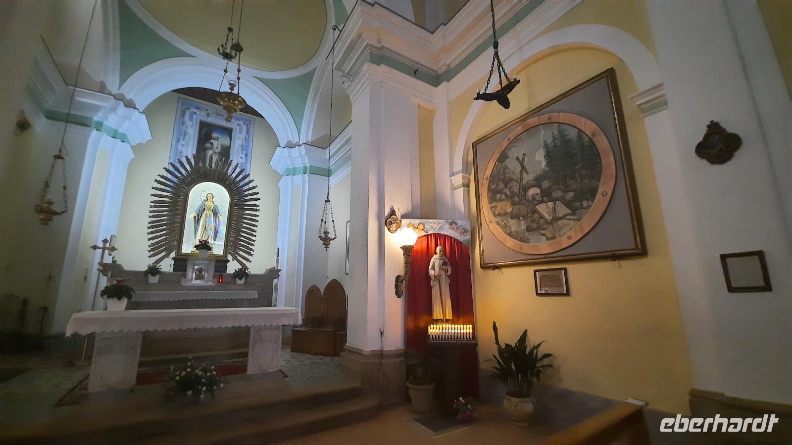 Nach dem Frühstück starteten wir in den sonnigen Tag. Wir fuhren durch wunderschöne Olivenhaine und Buchenwälder ins malerische Dorf Soriano Calabro und erhielten bei der Besichtigung der Klosterkirche des Klosters San Domenico spontan eine Führung von Pater Rosario. Begeistert folgten wir ihm, denn wir erkundeten das gesamte Gelände und bekamen Ecken zu Gesicht, die wir ohne ihn nie gesehen hätten. Im Anschluss bedankten wir uns bei ihm und erhielten eine Postkarte als Andenken.