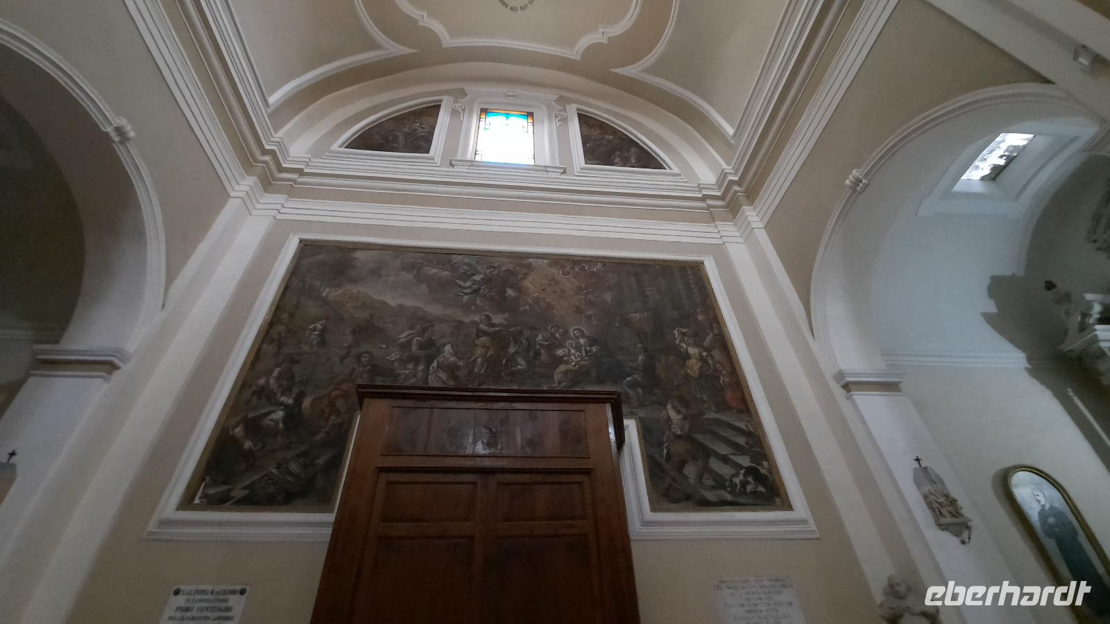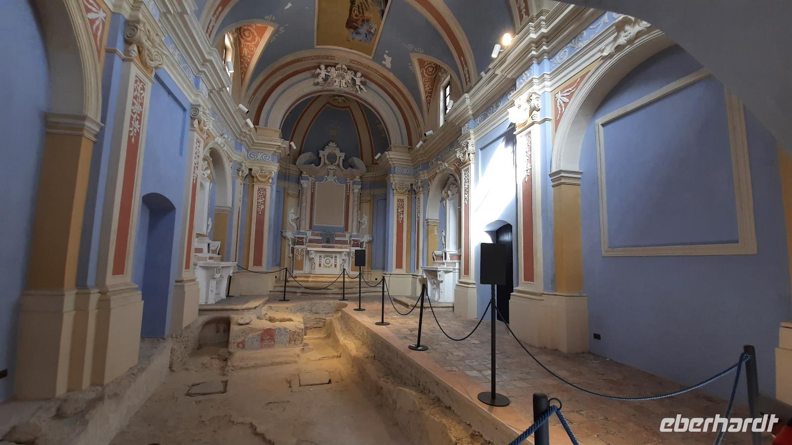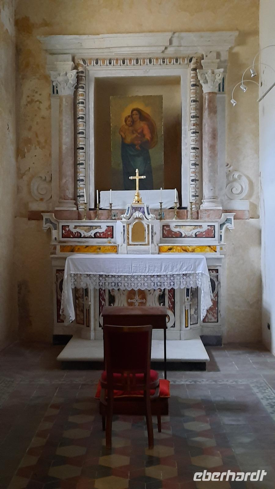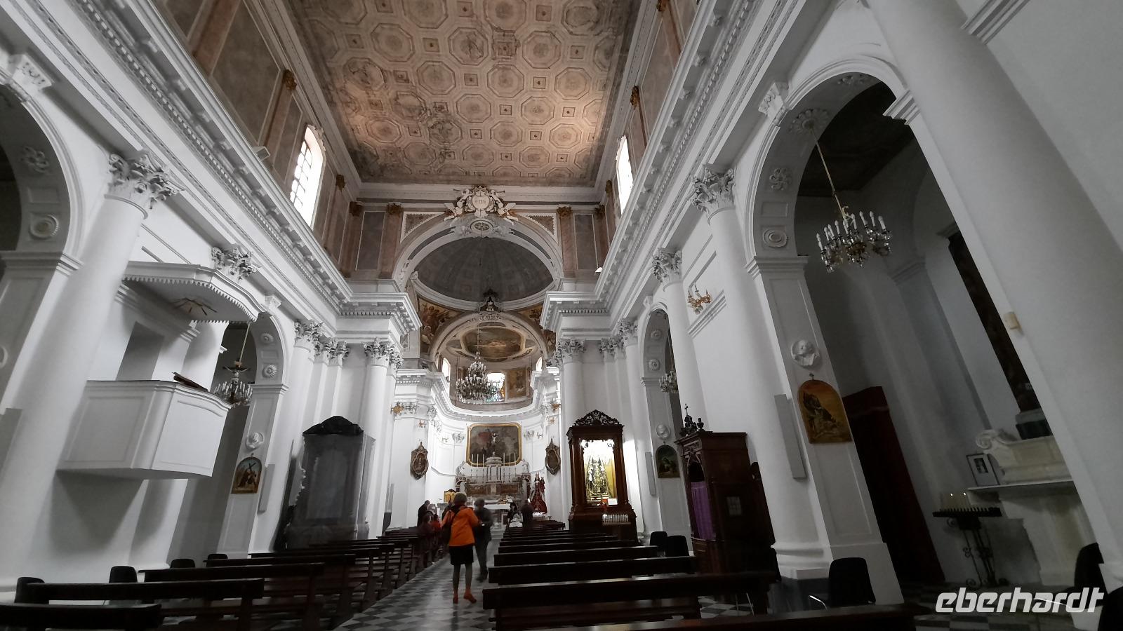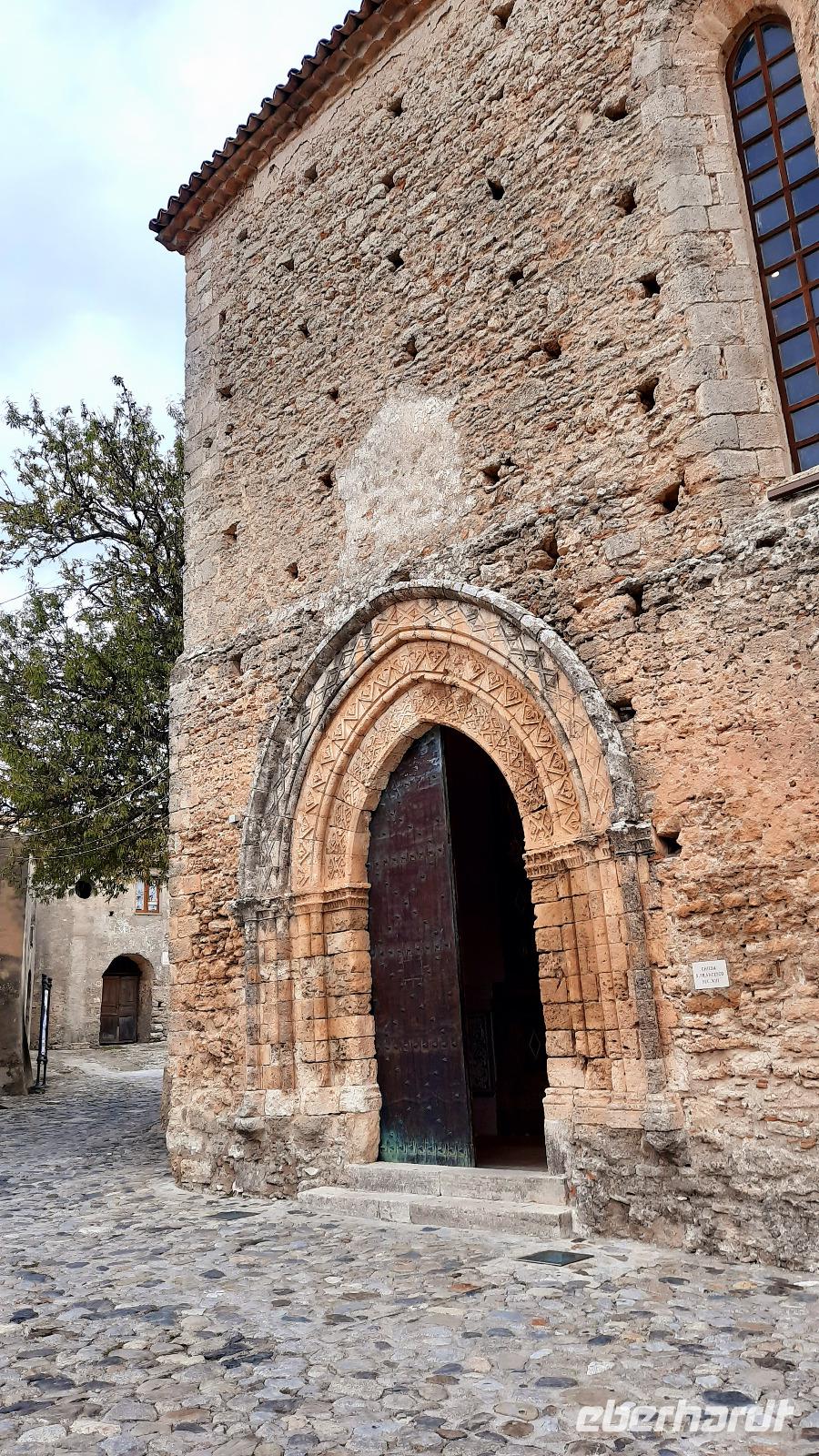 Nach dem Frühstück starteten wir in den sonnigen Tag. Wir fuhren durch wunderschöne Olivenhaine und Buchenwälder ins malerische Dorf Soriano Calabro und erhielten bei der Besichtigung der Klosterkirche des Klosters San Domenico spontan eine Führung von Pater Rosario. Begeistert folgten wir ihm, denn wir erkundeten das gesamte Gelände und bekamen Ecken zu Gesicht, die wir ohne ihn nie gesehen hätten. Im Anschluss bedankten wir uns bei ihm und erhielten eine Postkarte als Andenken.