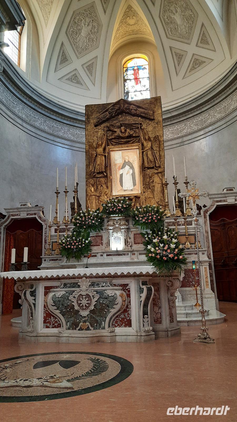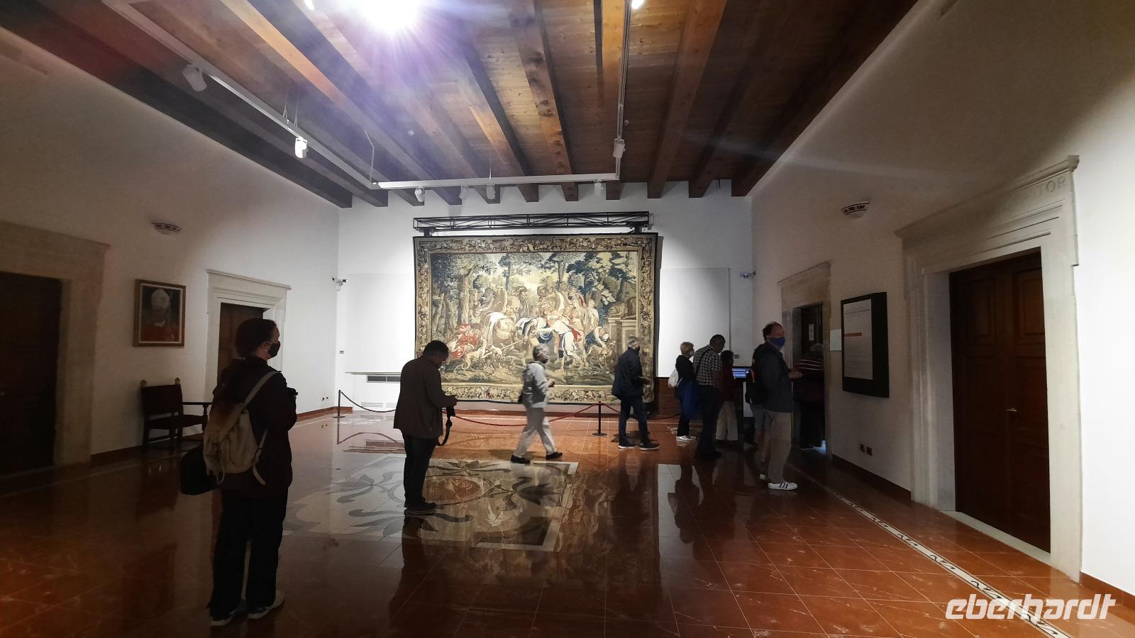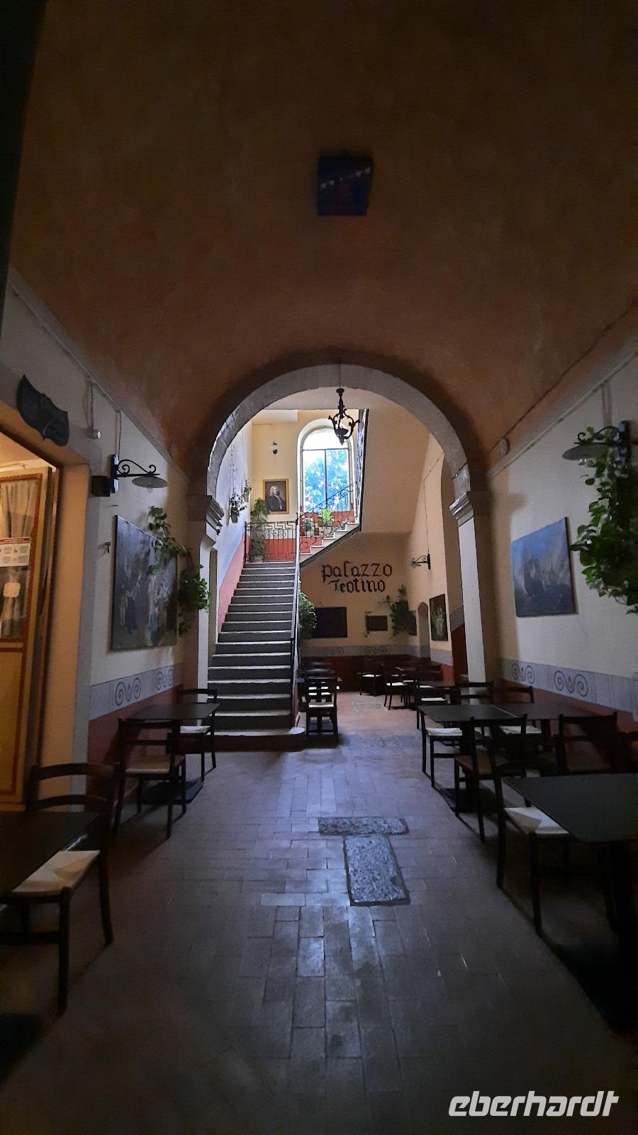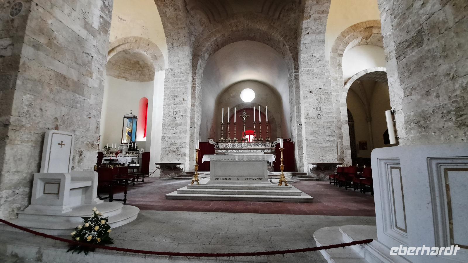 Nach dem Frühstück starteten wir in den sonnigen Tag. Wir fuhren durch wunderschöne Olivenhaine und Buchenwälder ins malerische Dorf Soriano Calabro und erhielten bei der Besichtigung der Klosterkirche des Klosters San Domenico spontan eine Führung von Pater Rosario. Begeistert folgten wir ihm, denn wir erkundeten das gesamte Gelände und bekamen Ecken zu Gesicht, die wir ohne ihn nie gesehen hätten. Im Anschluss bedankten wir uns bei ihm und erhielten eine Postkarte als Andenken.