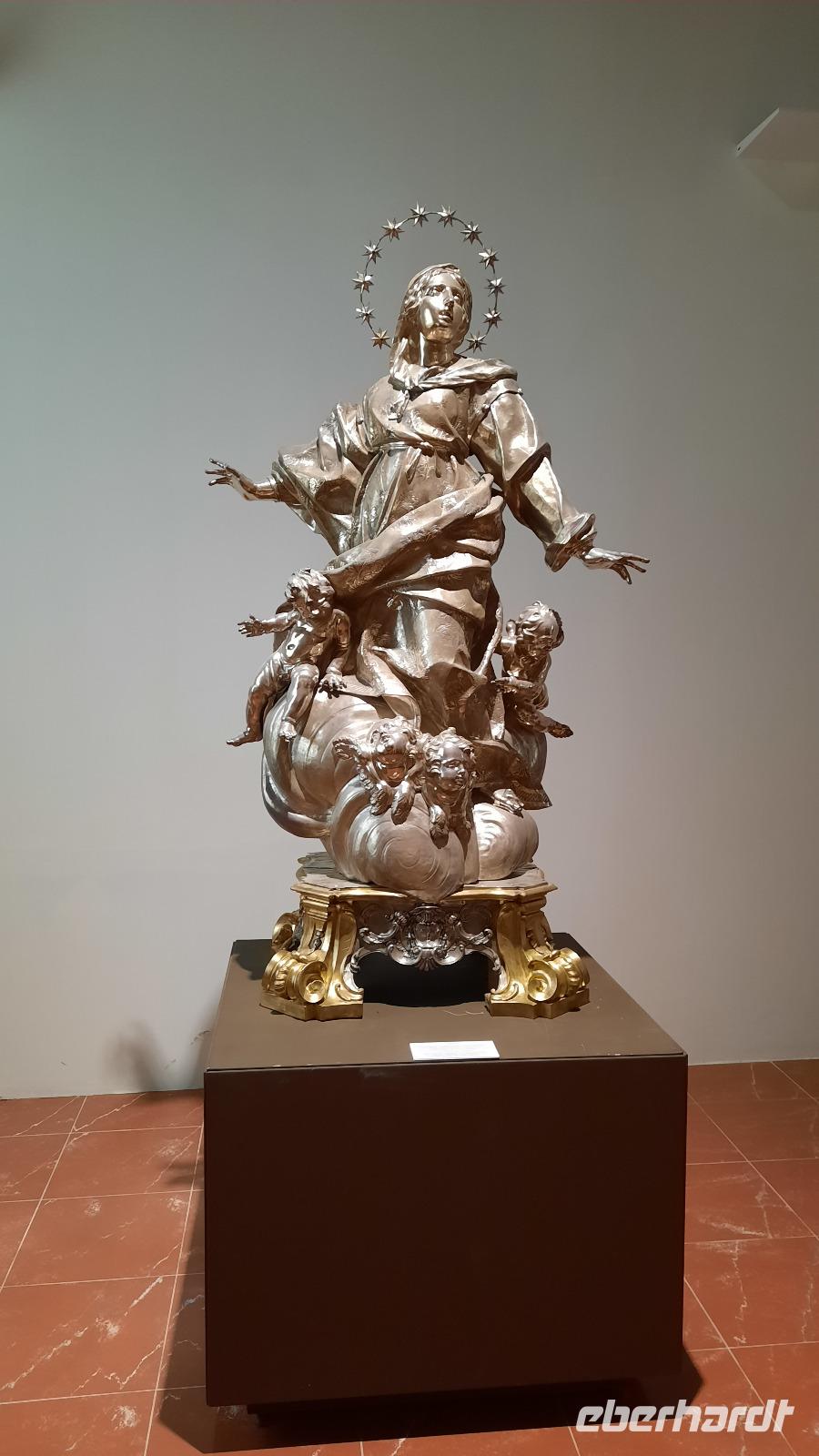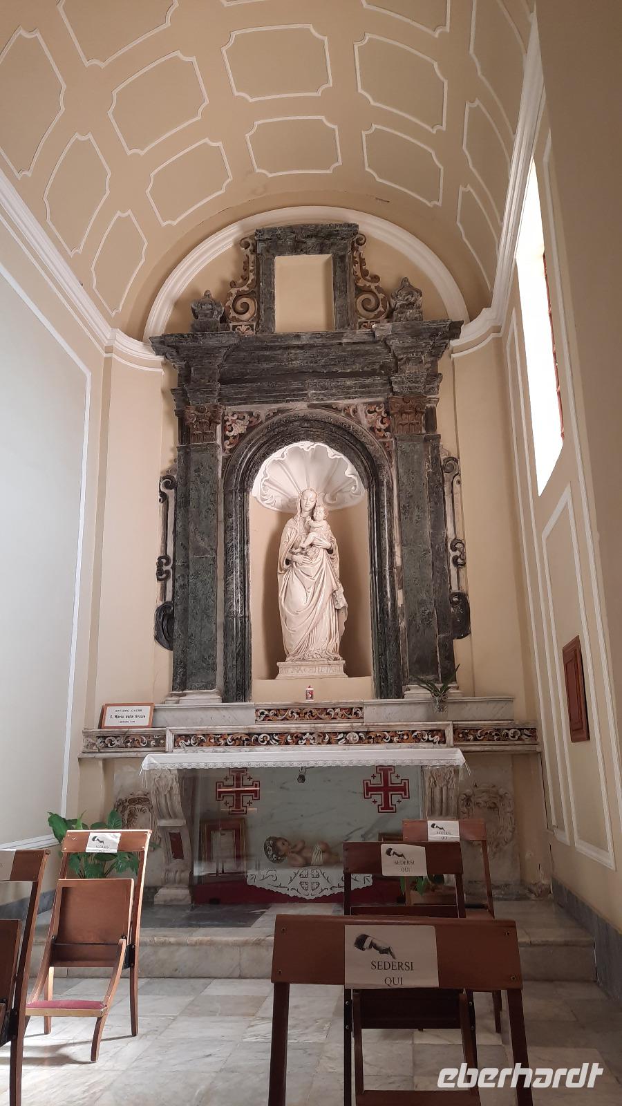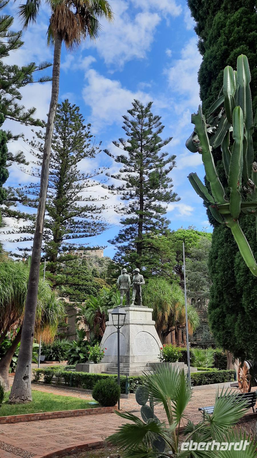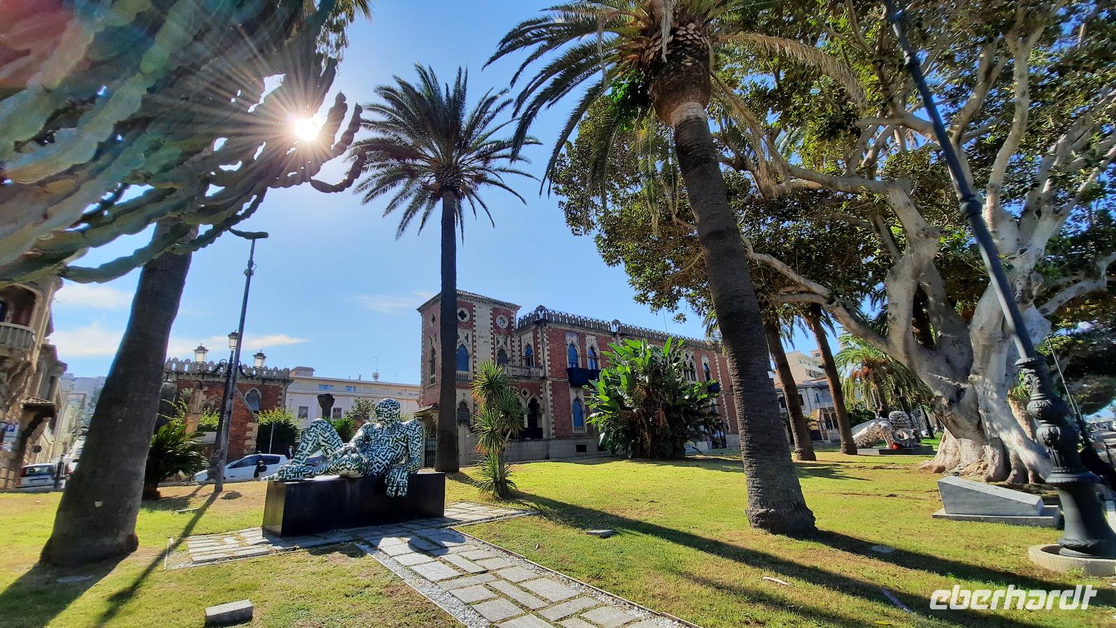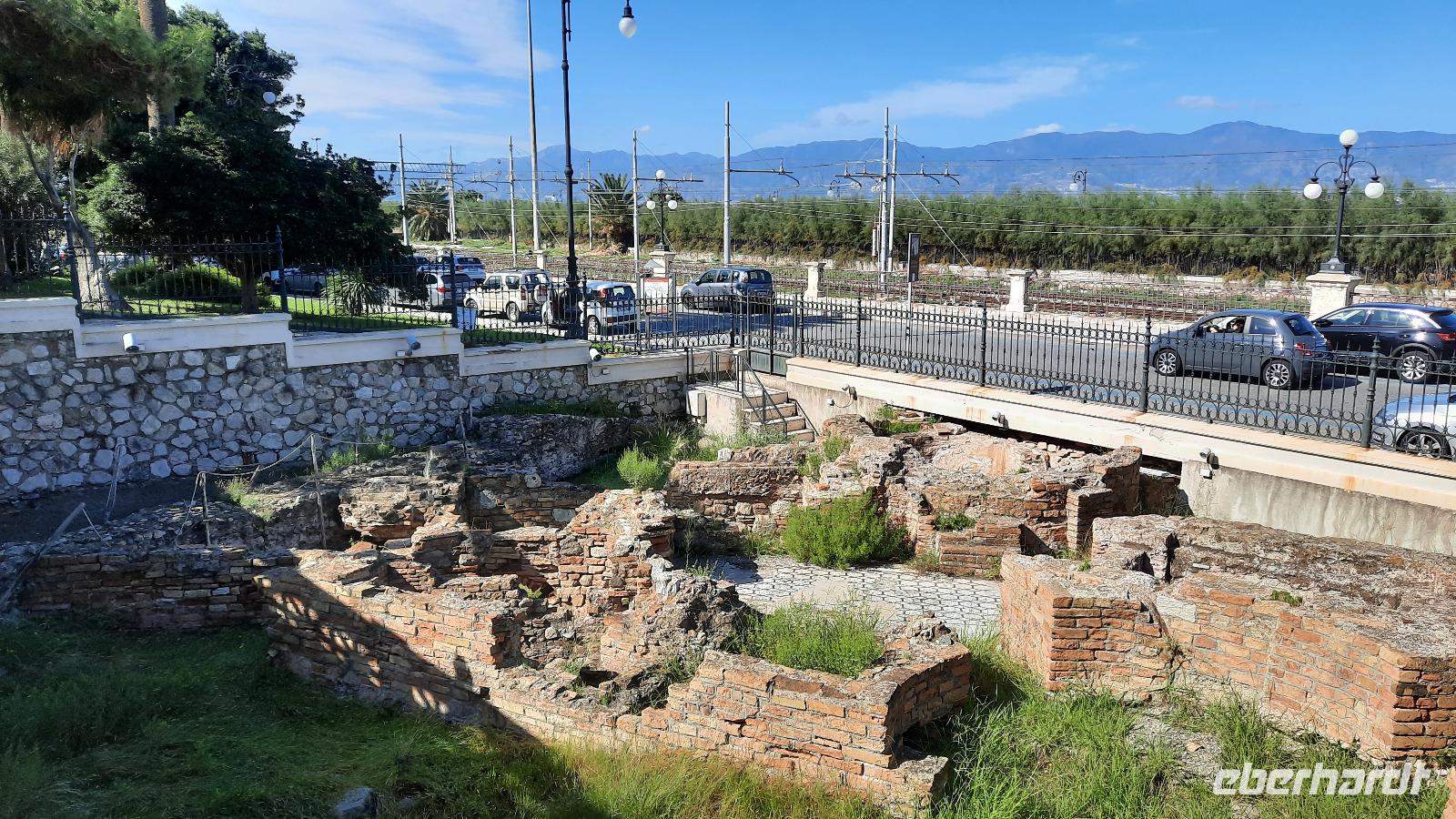 Wir spazierten entlang des "schönsten Kilometers in ganz Italien", dem Lungomare Falcomata und bewunderten nicht nur den Blick zum Ätna, welcher sich besser zeigte, als am Tag zuvor. Wir bewunderten auch die zahlreichen Jugendstilbauten, überdimensionale bunte Skulpturen, eine vielfältige Pflanzenwelt, den Mamorbogen der Arena dello Stretto und archäologische Überreste römischer Bäder. Unser Spaziergang führte uns zur neoklassizistischen Kathedrale, die auf Ruinen eines griechischen Apollon-Tempels erbaut und 1928 eingeweiht wurde. Nachdem wir eine interessante Innenführung von Claudia erhielten, konnte jeder nache eigener Facon Reggio erkunden. Einige spazierten entlang der Corso Giuseppe Garibaldi, einer Einkaufsstraße mit unzähligen Boutiquen und Shops, andere besuchten die "hübschen Männer" im National-Museum. Die aus dem 5. Jahrhundert stammenden zwei Bronzestatuen von Riace wurden Anfang der 70er-Jahre auf dem Meeresboden gefunden und sind hervorragende Zeugnisse einer Meisterleistung der griechischen Bildhauerkunst.