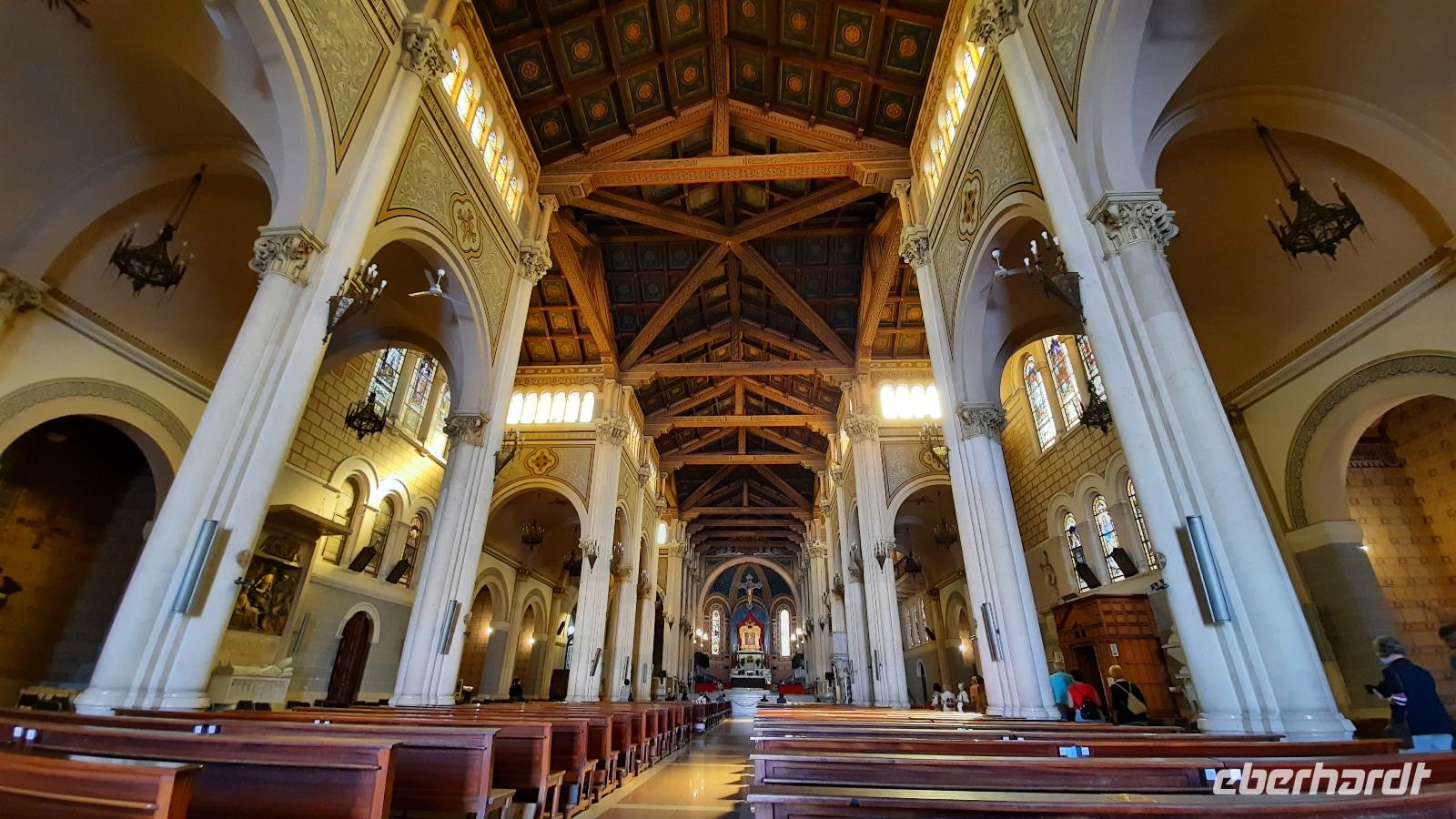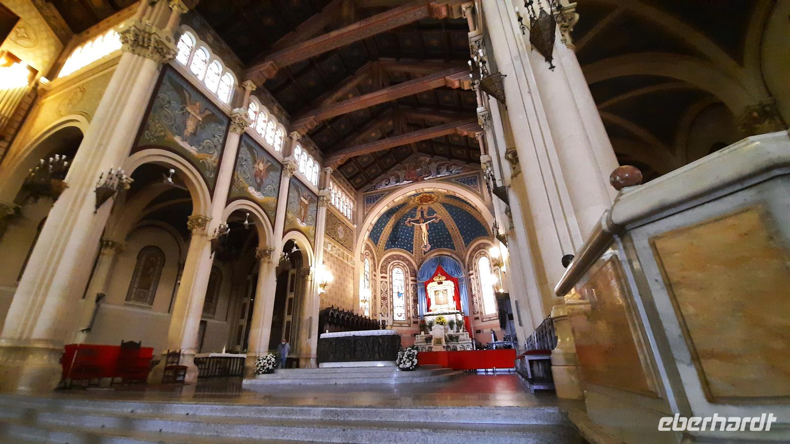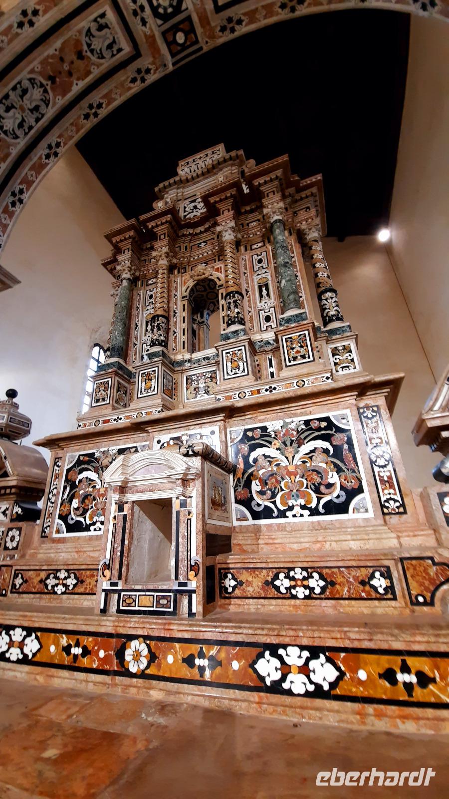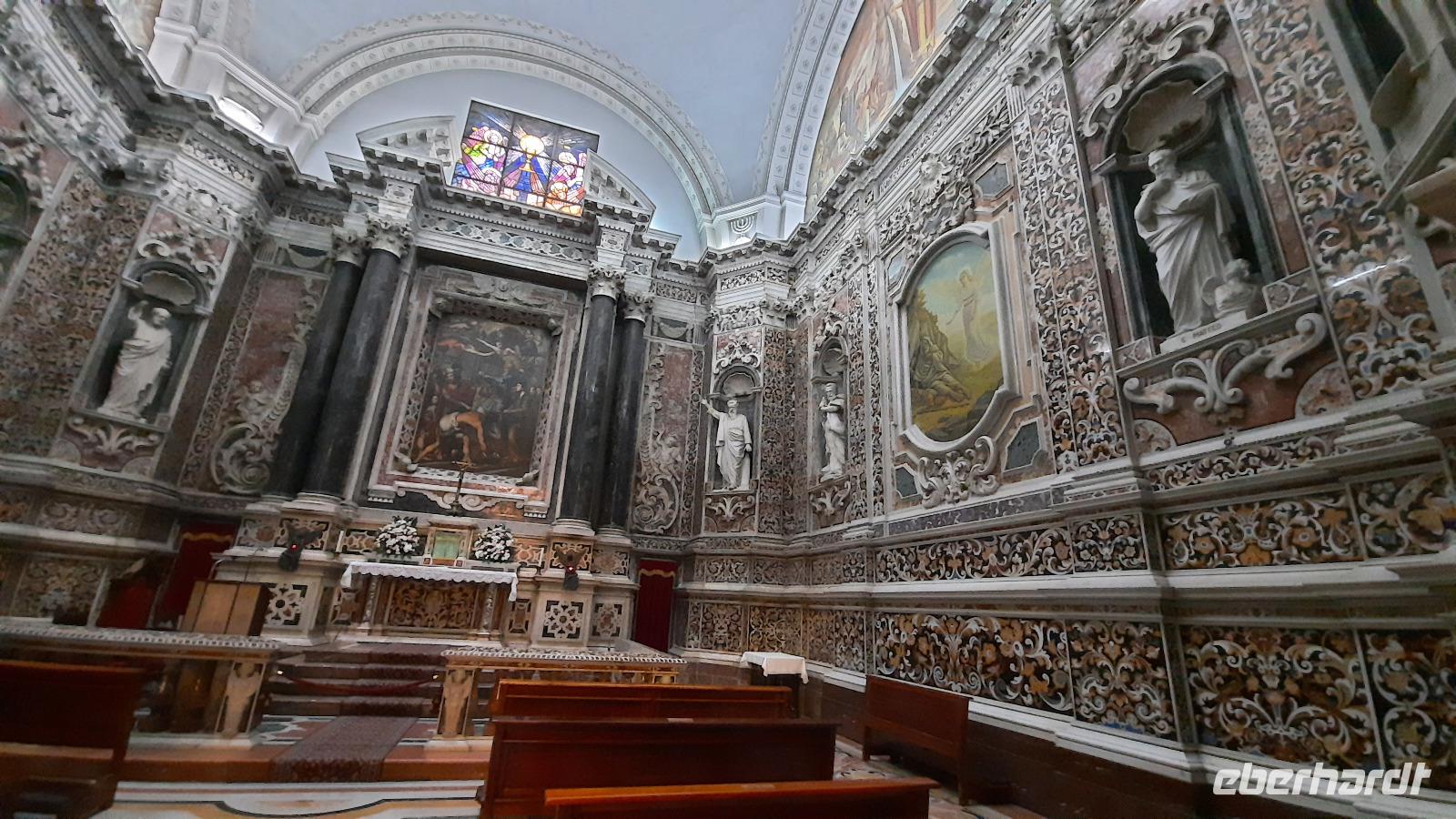 Wir spazierten entlang des "schönsten Kilometers in ganz Italien", dem Lungomare Falcomata und bewunderten nicht nur den Blick zum Ätna, welcher sich besser zeigte, als am Tag zuvor. Wir bewunderten auch die zahlreichen Jugendstilbauten, überdimensionale bunte Skulpturen, eine vielfältige Pflanzenwelt, den Mamorbogen der Arena dello Stretto und archäologische Überreste römischer Bäder. Unser Spaziergang führte uns zur neoklassizistischen Kathedrale, die auf Ruinen eines griechischen Apollon-Tempels erbaut und 1928 eingeweiht wurde. Nachdem wir eine interessante Innenführung von Claudia erhielten, konnte jeder nache eigener Facon Reggio erkunden. Einige spazierten entlang der Corso Giuseppe Garibaldi, einer Einkaufsstraße mit unzähligen Boutiquen und Shops, andere besuchten die "hübschen Männer" im National-Museum. Die aus dem 5. Jahrhundert stammenden zwei Bronzestatuen von Riace wurden Anfang der 70er-Jahre auf dem Meeresboden gefunden und sind hervorragende Zeugnisse einer Meisterleistung der griechischen Bildhauerkunst.