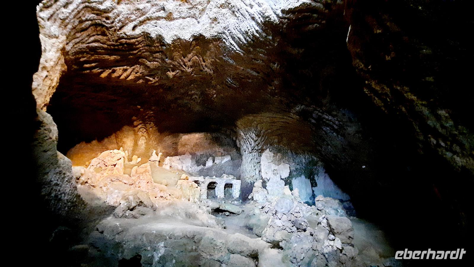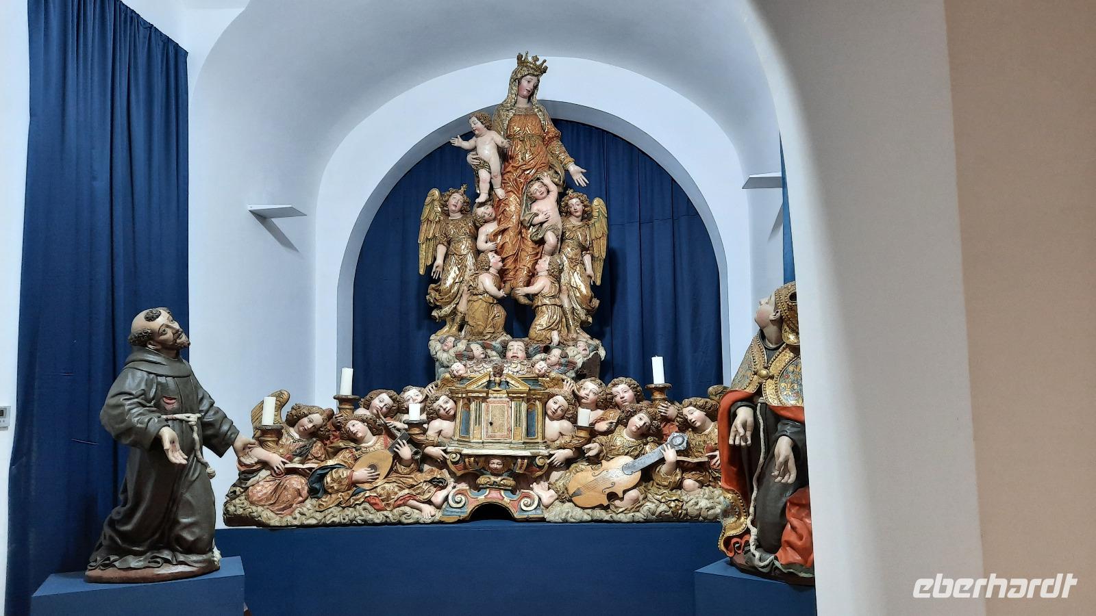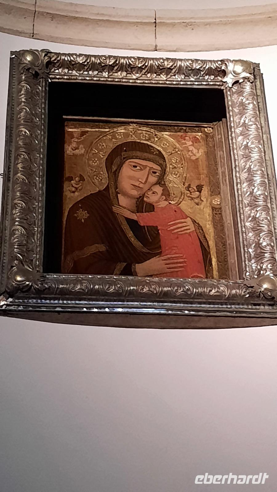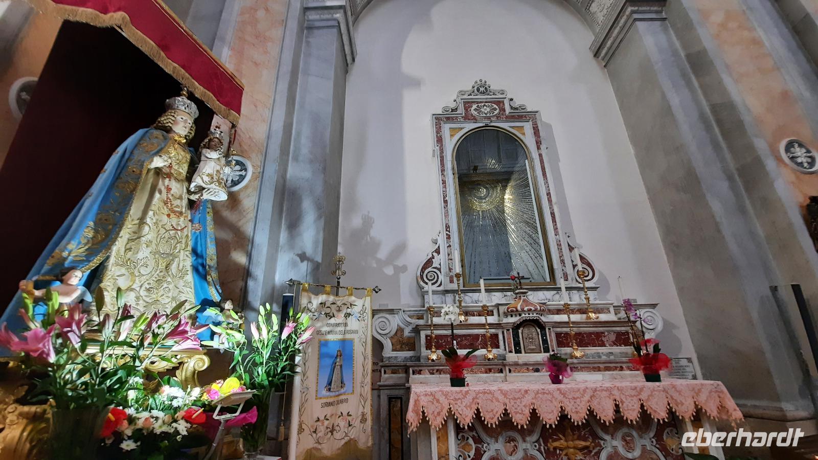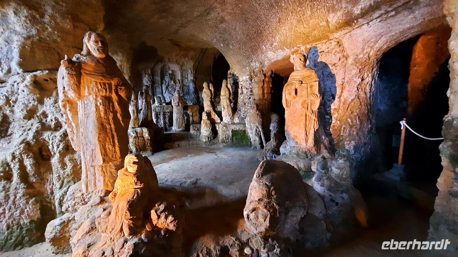 Nach dem Frühstück starteten wir mit Claudia und Thomaso, das angrenzende Tropea zu erkunden. Die wunderbar wärmende Sonne vom Vortag hatte dicken Regenwolken Platz gemacht. Aber das störte uns kaum. Vorerst. Claudia spazierte mit und in der Altstadt von Tropea. Angefangen vom Platz Piazza del Cannone, von dem man aus einen unglaublich schönen Blick auf die Benediktinerwallfahrtskirche Santa Maria dell'Isola genießen konnte. Diese befindet sich auf der Spitze eines Sandsteinfelsens, der Altstadt Tropeas vorgelagert. Wir spazierten weiter durch schmale Gassen, vorbei an zahlreichen Cafés und Restaurants, besuchten die Jesuitenkirche von Gesu, sahen prächtige Portale, versteckte kleine Plätze und besuchten schließlich die Kathedrale von Tropea. Diese schlichte Kathedrale aus dem 12. Jahrhundert wurde ursprünglich auf einem byzantinischen Friedhof erbaut und beherbergt einen Sarkophag aus Marmor sowie ein weltbekanntes Bildnis der Maria von Romania, der Schutzpatronin der Stadt. In der anschließenden Freizeit, konnte jeder nach Lust und Laune die Altstadt erkunden oder sich bei einem italienischen Kaffee vor dem Regen schützen. Da es mittlerweile in Strömen regnete, beschlossen wir, eine längere Mittagspause im Hotel einzulegen. Kurz vorher erhielten wir auch die Nachricht, dass der geplante Ausflug zu den Liparischen Inseln wegen schlechten Wetters ausfallen würde. Eine Alternative musste jetzt gefunden werden. Claudia schlug uns einen Ausflug nach Sizilien vor. Nach dem Ende der Mittagspause sagten alle Eberhardt-Reisegäste der Alternative zu. Wir freuten uns sehr! Nun führten wir unsere Besichtigungstour weiter fort und wir erreichten die Höhlenkirche Piedigrotta, die bereits im 17. Jahrhundert als Dank neapolitanischer Schiffbrüchiger einen Altar aufgestellt bekam. Während wir den Erläuterungen Claudias lauschten, erkundeten wir die mystisch anmutende Höhle mit ihren biblischen Figuren, die alle durch das einstrahlende Licht verschieden angeleuchtet wurden. Wir steigen die Treppen wieder empor und Thomaso brachte uns weiter nach Pizzo. Der Regen holte uns erneut ein, daher besichtigten wir das Museum der Festung Murat, in dem der Schwager Napoleons und König von Neapel, Joachim Murat, 1815 hingerichtet wurde. Wir schlenderten weiter, sahen uns die Kathedrale von San Giorgio a Pizzo an und beschlossen, eine mächtig dunkle Regenwand auf uns zusteuern sehend, ein typisches Tartufo-Eis zu probieren. Wir besuchten das Eiscafé von Morino und kosteten das „Tarufo Moro" während draußen der Regen niederprasselte. Nachdem der Regen nachgelassen hatteund wir wieder den Bus erreichten, erzählte uns Claudia auf dem Rückweg mehr über Vulkanismus und das Leben mit Ausbrüchen des Stromboli.