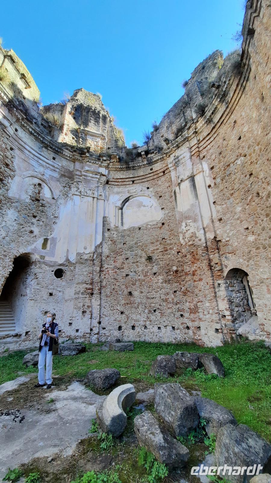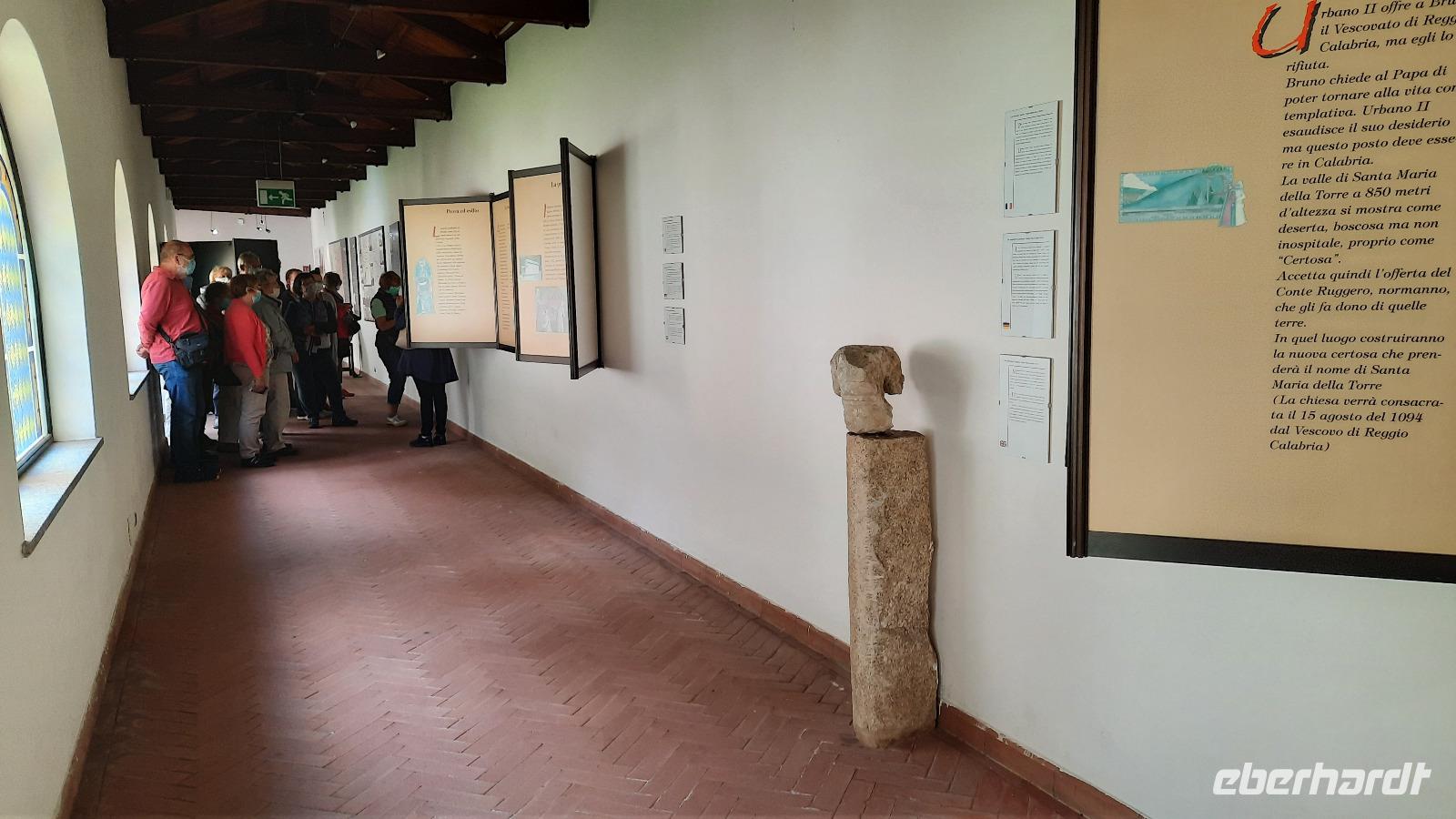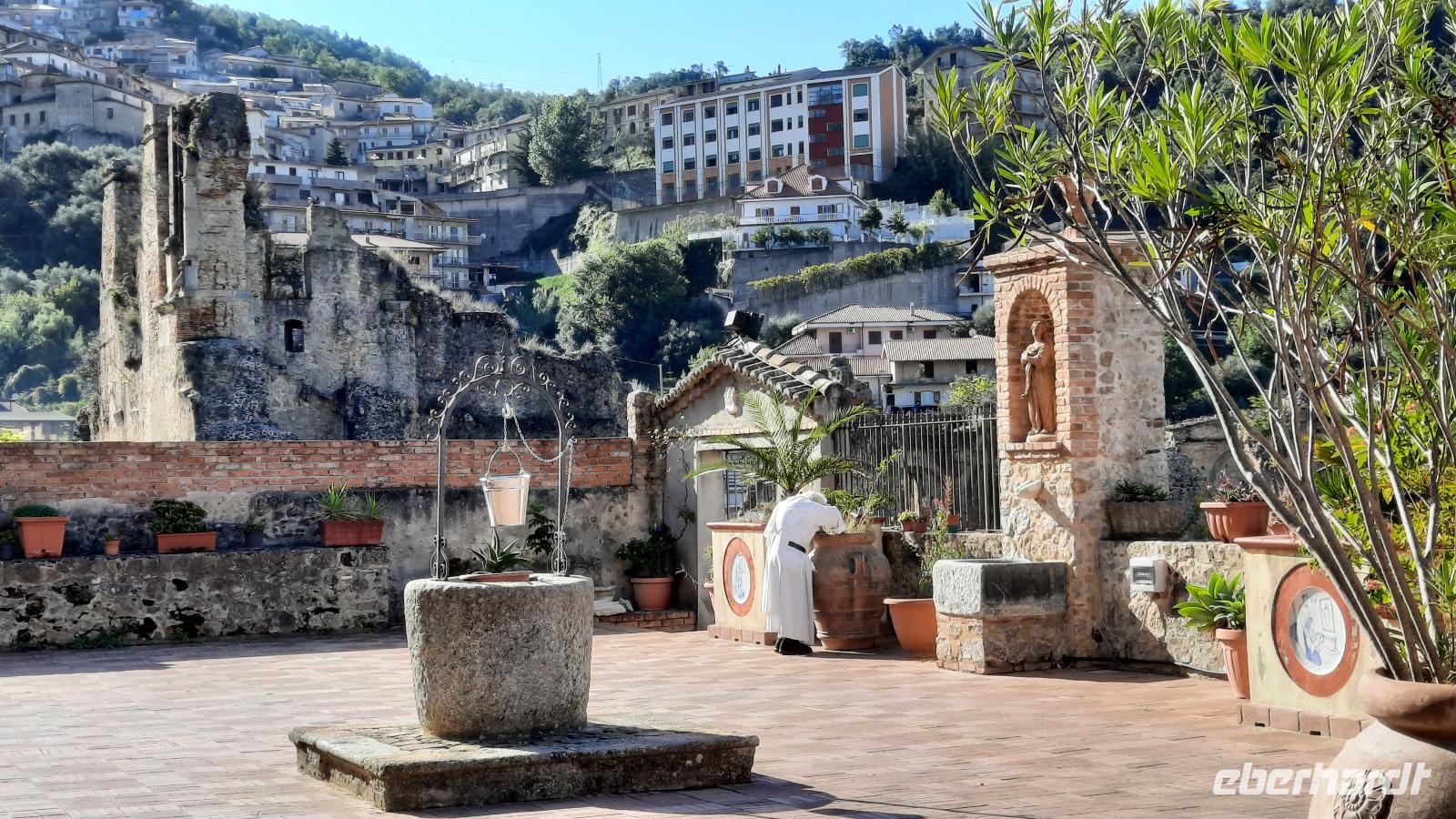 Wir reisten nach Serra San Bruno und spazierten durch ein kleines Waldstück bis zur magischen Wunschquelle, ein schöner Ort für Rückzug und Besinnung. Eine Spezialität kulinarischer Art sind hier in den Bergen Nudeln mit Steinpilzen, die wir zur Mittagszeit im Restaurant verspeisten. Im Anschluss fahren wir weiter zum Karthäuserkloster Santa Maria della Torre. Bei einer Führung mit Claudia erfahren wir viel über die Geschichte des Klosters. Noch immer leben Mönche sehr zurückgezogen im Kloster, sie arbeiten und beten, ihr Leben ist für immer Gott geweiht. Unsere Eberhardt-Rundreise in Kalabrien kam nun dem Ende entgegen. Wir fuhren zurück zum Hotel und verabschiedeten uns mit einem lieben Gedicht bei Claudia und Thomaso und wünschten den beiden alles Gute. Den Abend verbrachten wir noch einmal in geselliger Runde und ließen das Erlebte Revue passieren.