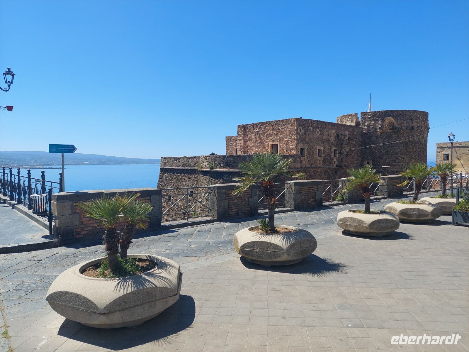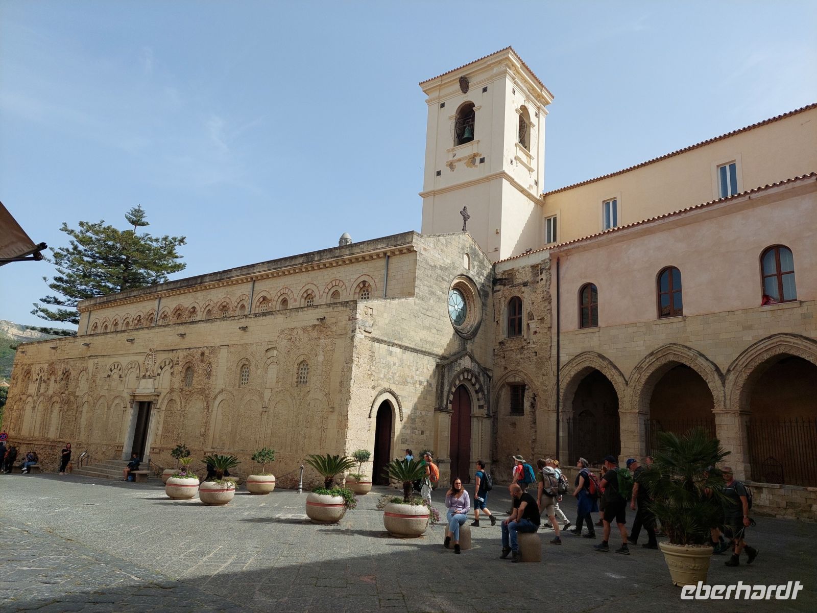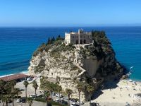 Bei einem schönen Außenrundgang genießen wir den Blick auf das imposante Bauwerk, bevor wir zurück zu unserem Hotel Michelizia nach Tropea fahren.