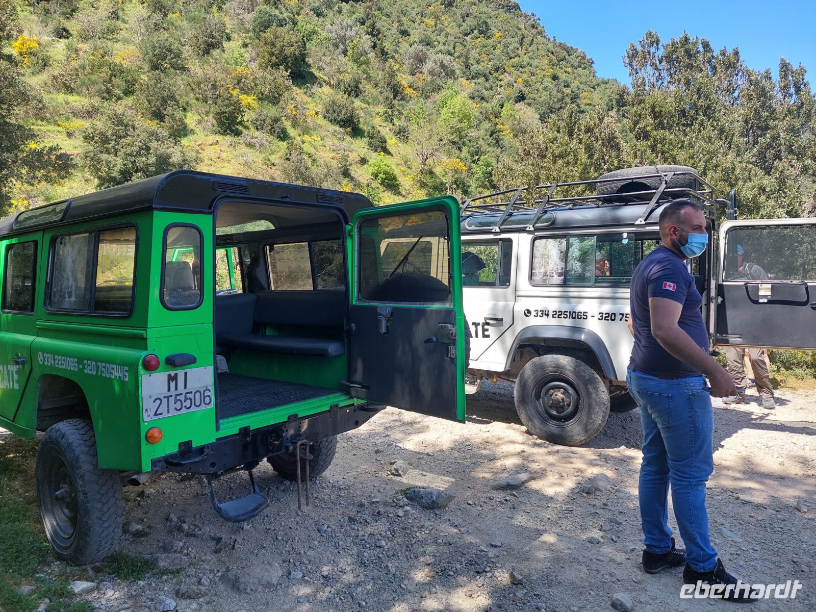 Gut gestärkt wandern wir zum Ausganspunkt zurück, wo uns schon die Geländewagen erwarten, die uns über holprige Wege zurück zum Ausgangspunkt Bivogni bringen.
