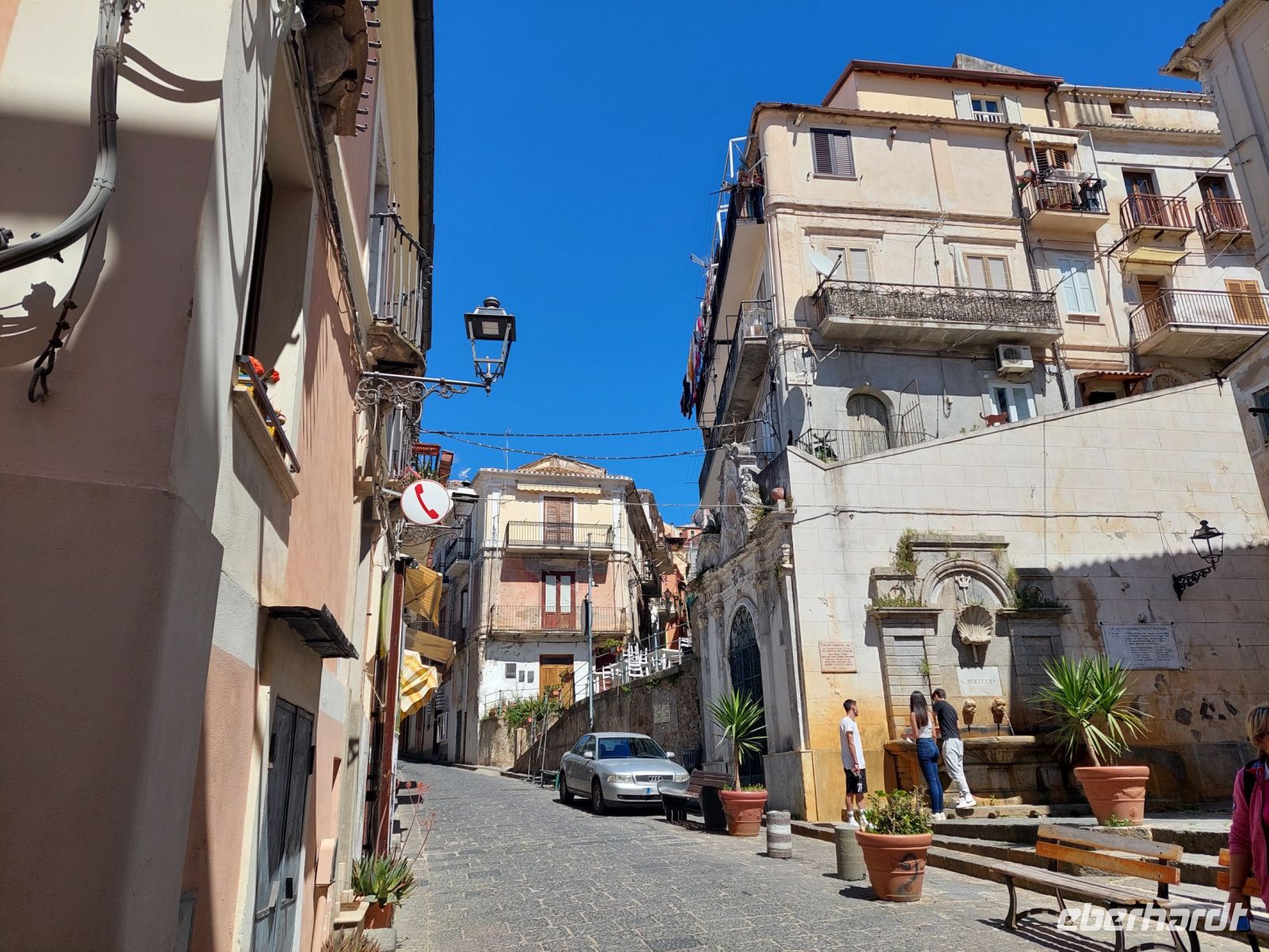 Angekommen in Tropea spazieren wir durch das historische Zentrum mit Kathedrale und der Wallfahrtskirche „Santa Maria dell‘ Isola“, von der aus man bis auf die Äolischen Inseln schauen kann.