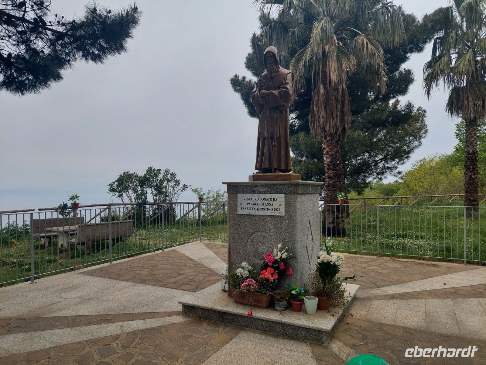Eine kurze Pause legen wir an der Gedenkstätte des Schutzheiligen von Kalabrien ein. Von hier aus haben wir einen wunderbaren Blick bis nach Joppolo und dem Tyrrhenischen Meer.