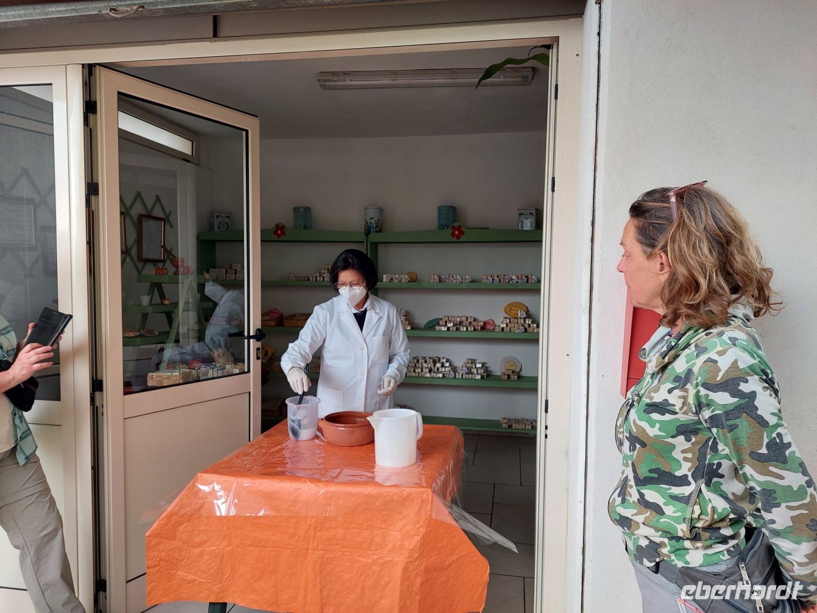 Gut gestärkt wandern wir zurück und besuchen in Joppolo noch die Seifenproduktion von Florelia. Sie zeigt uns wie natürliche Seife mit Olivenöl, Soda, Wasser und natürlichen Duftstoffen hergestellt wird. Auch hier nehmen wir die Gelegenheit wahr, so einige Stücke mit nach Hause zu nehmen.