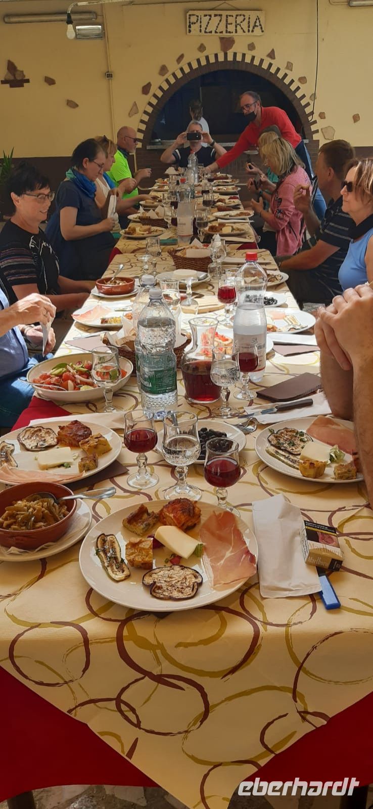 Wir haben noch Zeit in einem kleinen Supermarkt landestypische Produkte zu kaufen und genießen anschließend unser letztes Antipastiessen in einem urigen Restaurant.