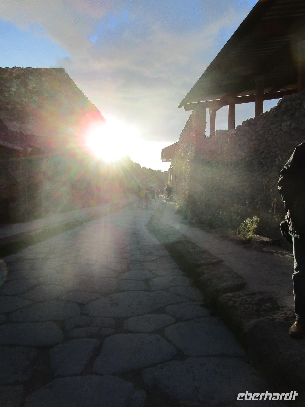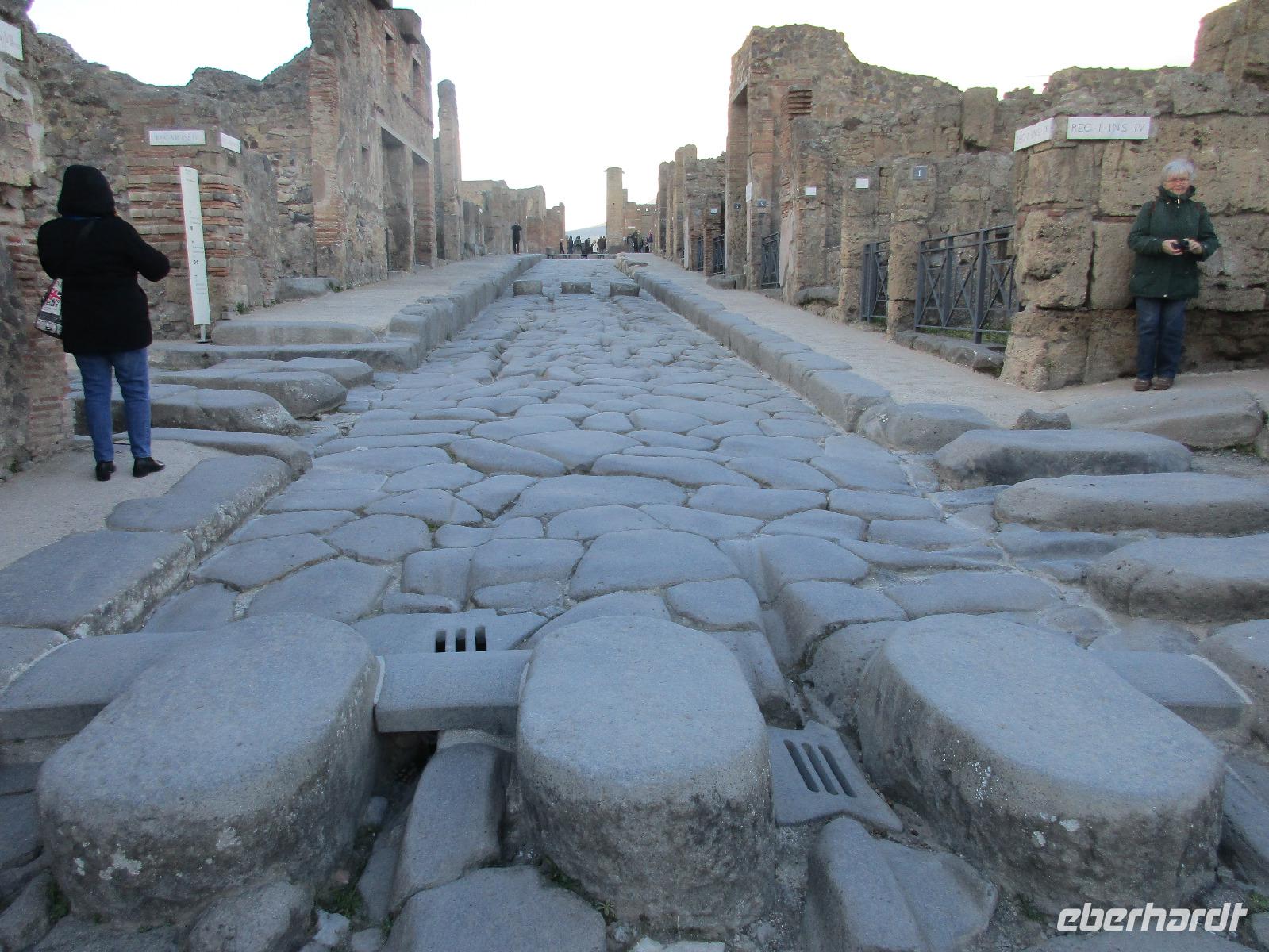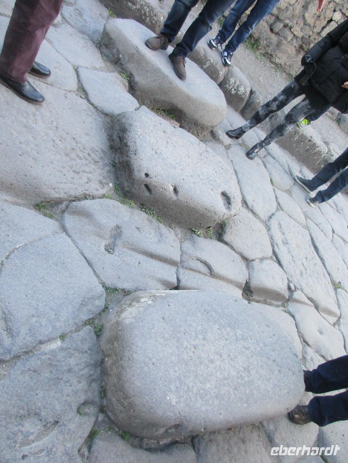 Vor Ort treffen wir Angelo, unseren heutigen Reiseleiter. Von der Bauart der Straßen und antiken Zebrastreifen über beheizte Thermalbäder bis hin zu historischen Bordellen kann uns Angelo alles über die Ruinen der Stadt erzählen.