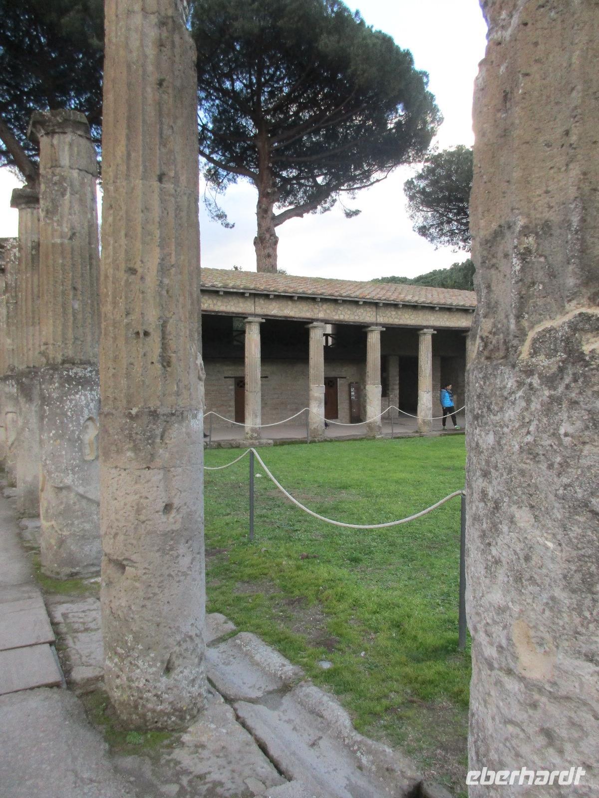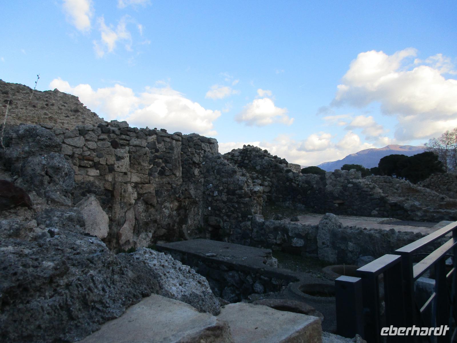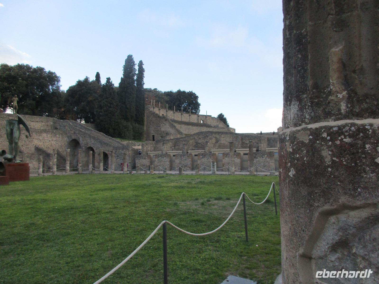 Vor Ort treffen wir Angelo, unseren heutigen Reiseleiter. Von der Bauart der Straßen und antiken Zebrastreifen über beheizte Thermalbäder bis hin zu historischen Bordellen kann uns Angelo alles über die Ruinen der Stadt erzählen.
