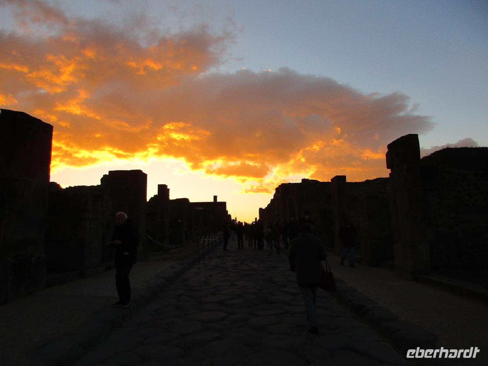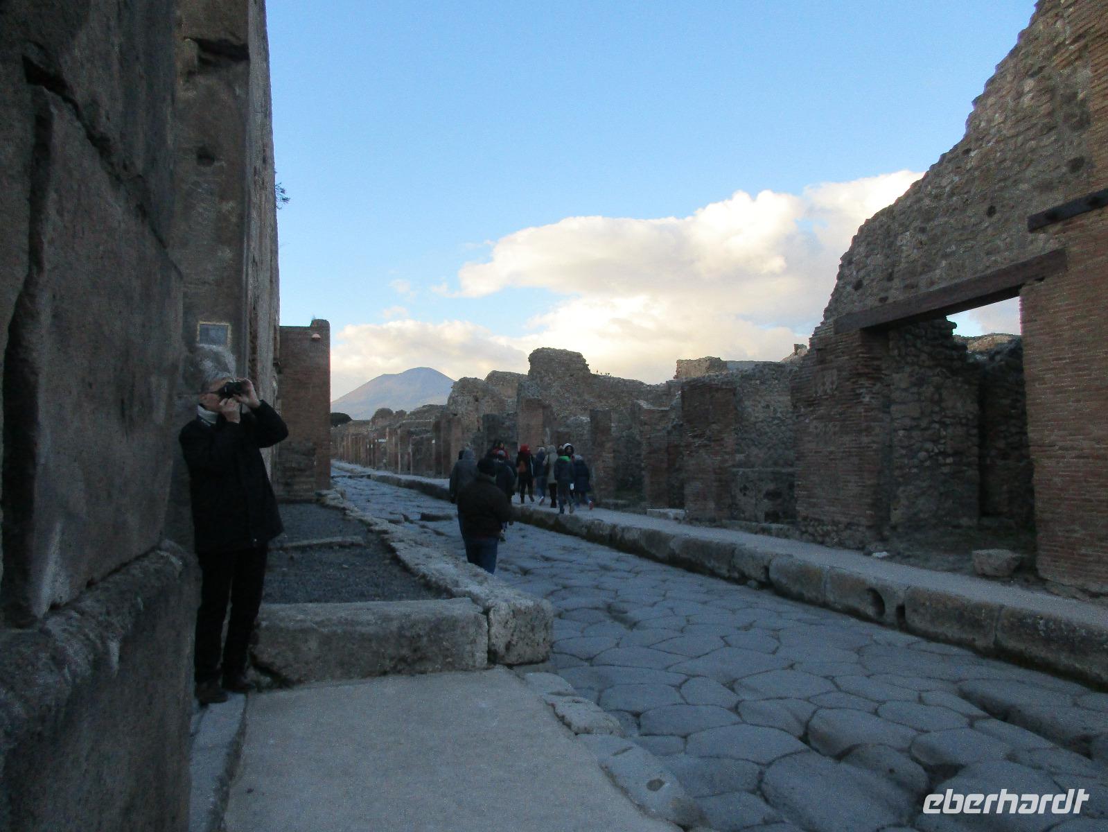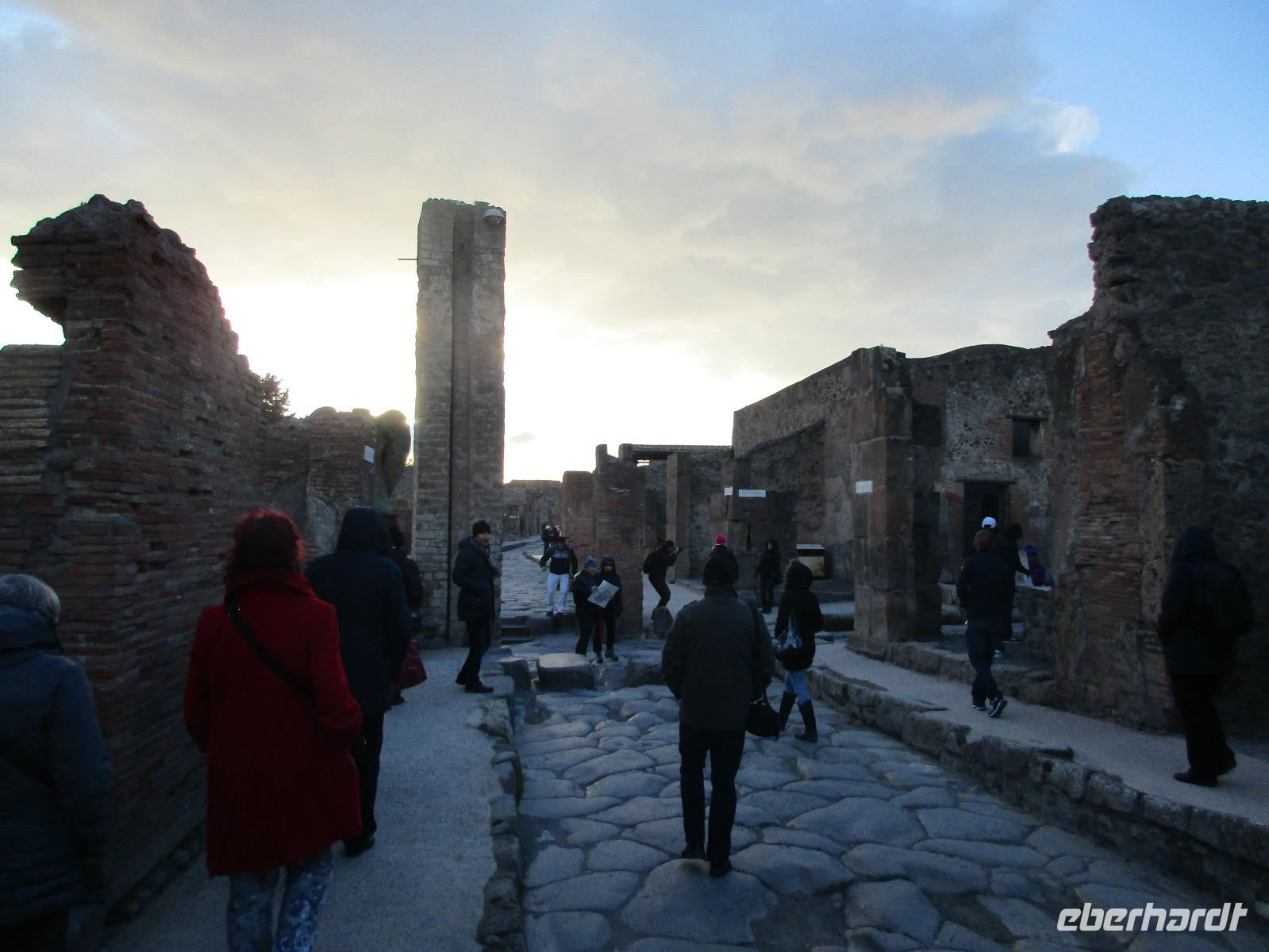 In Neapel angekommen, werden wir von unserem Reisebus abgeholt und nach Pompeji, zur historischen Ausgrabungsstätte der einst von Asche und Lava verschütteten Stadt, gebracht.