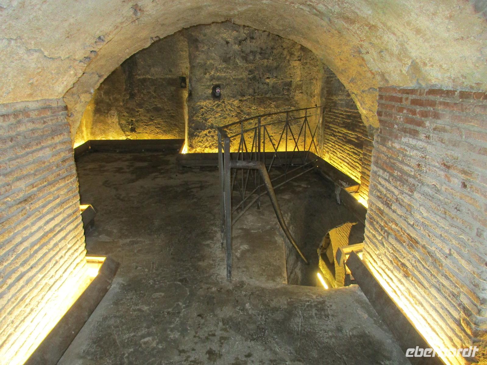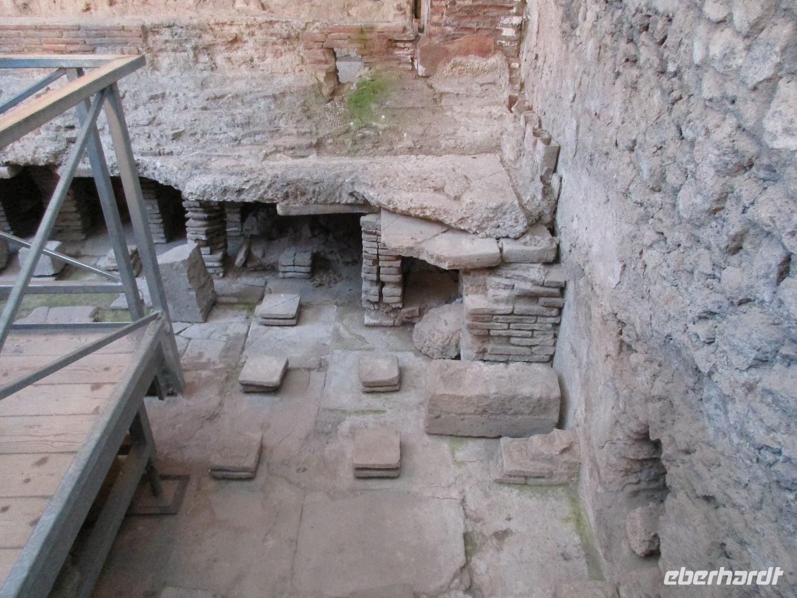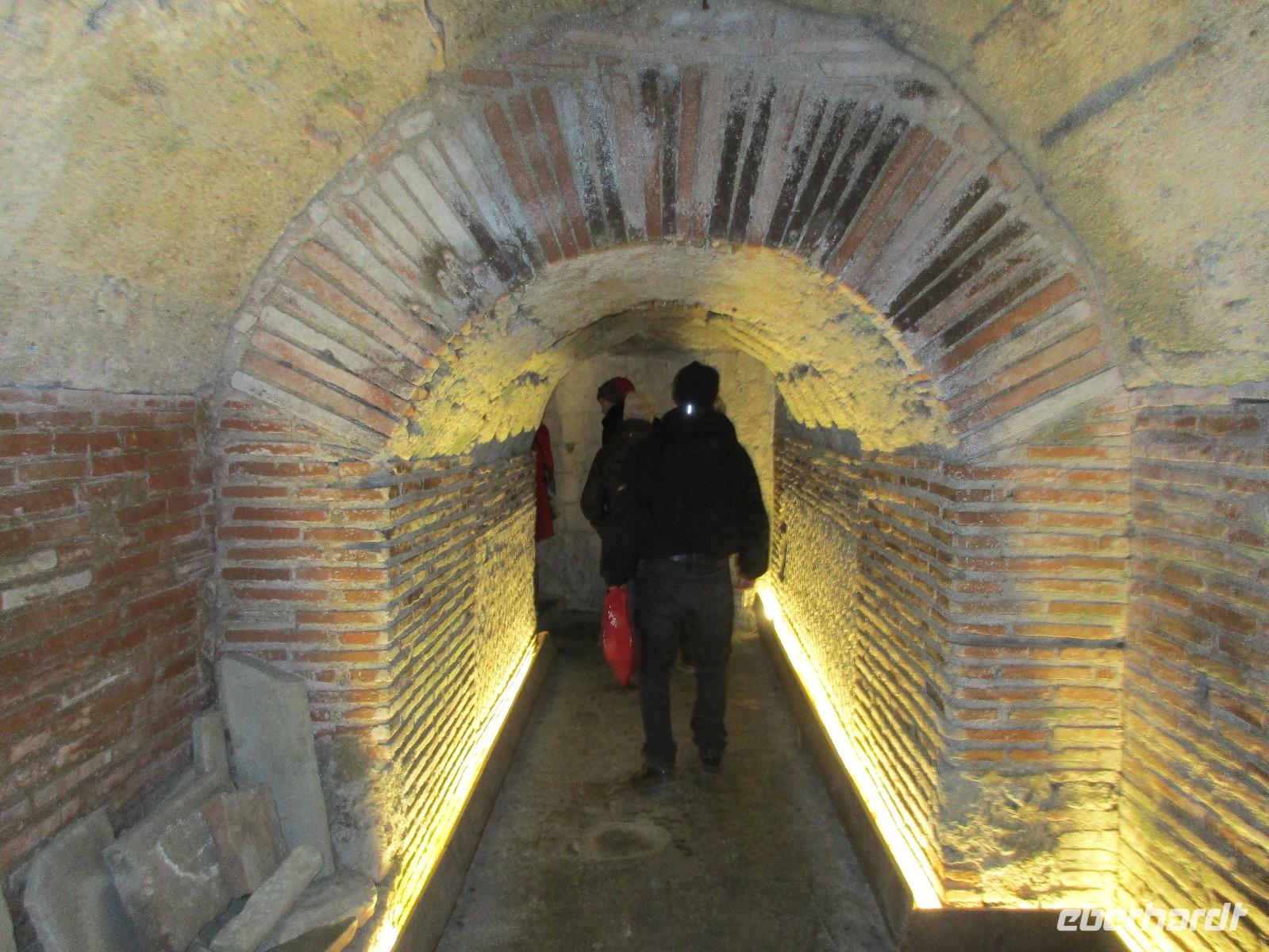 Danach sehen wir uns die Ausgrabung eines alten römischen Theaters an, welches sich im Keller eines Wohnhauses befindet, jedoch nicht komplett frei gelegt werden konnte, da sich darum herum private Wohnungen befinden. Später erfahren wir, dass auch beim Bau der U-Bahn Überbleibsel des Römischen Reiches, zwei alte römische Schiffe, gefunden wurden.