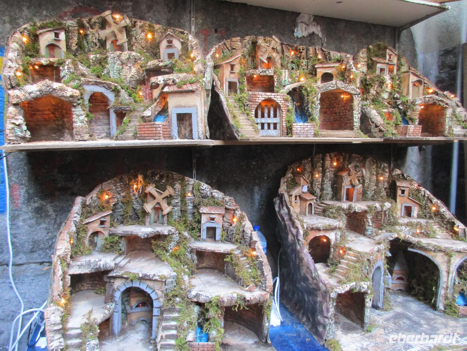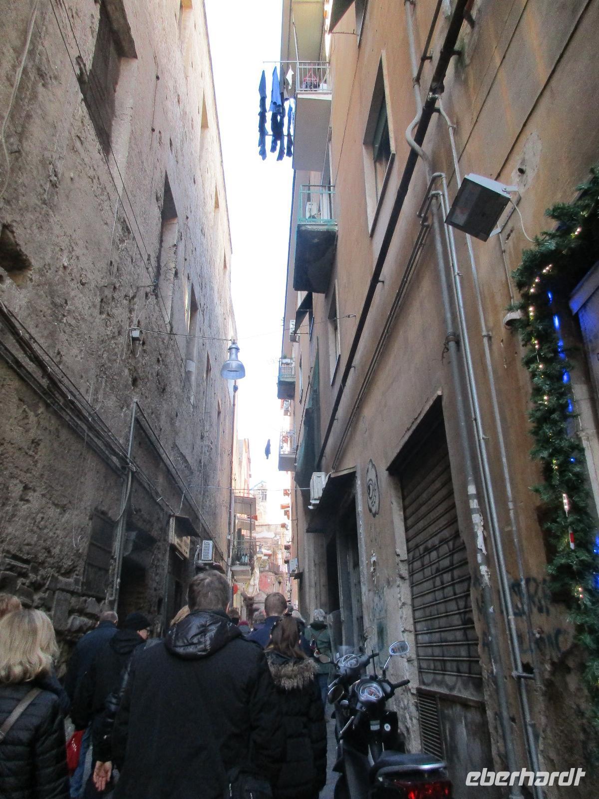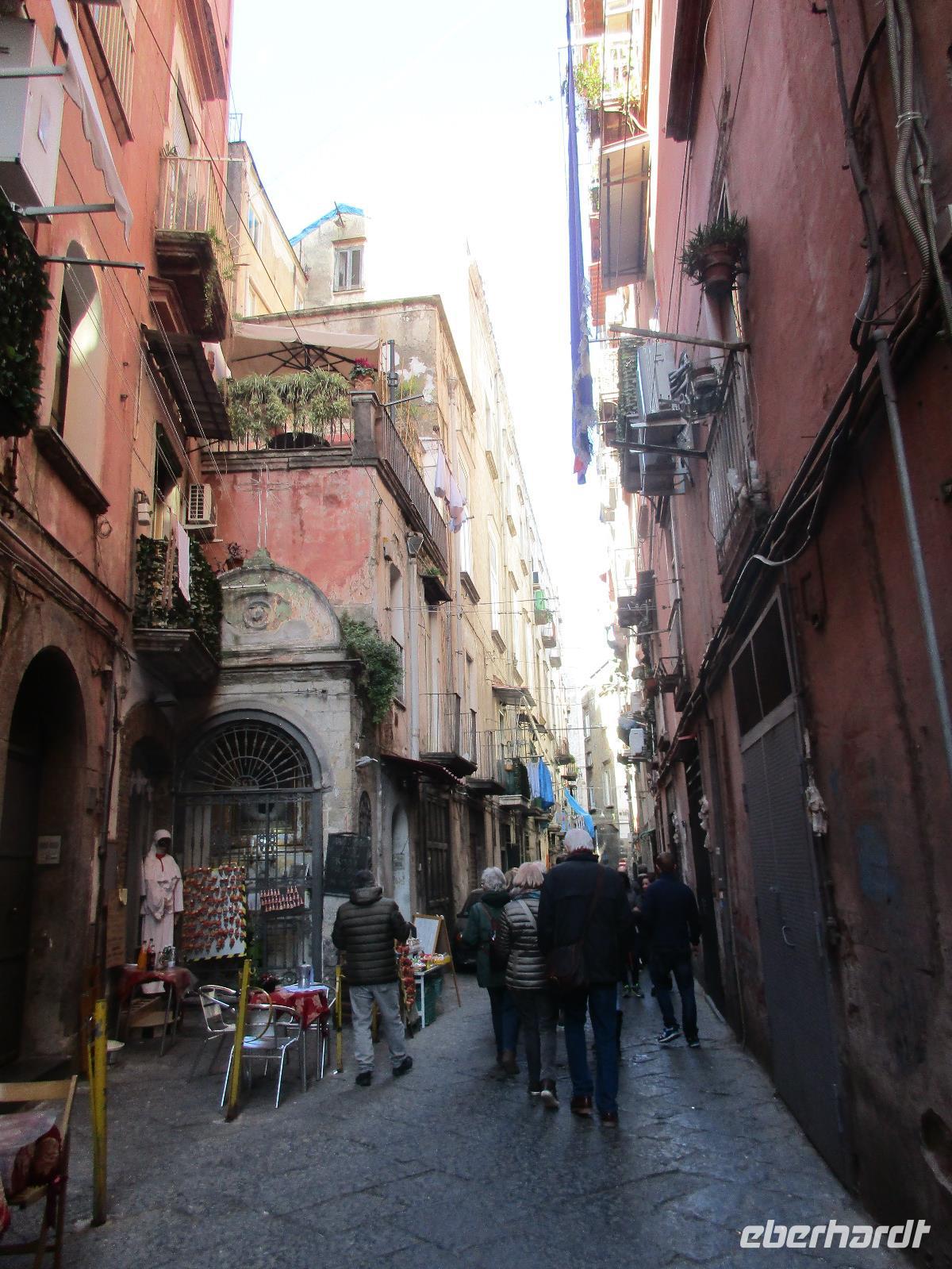 Auf dem Weg zum Mittagessen sehen wir noch eine kleine Krippensammlung und gehen durch die Krippenstraße Neapels.