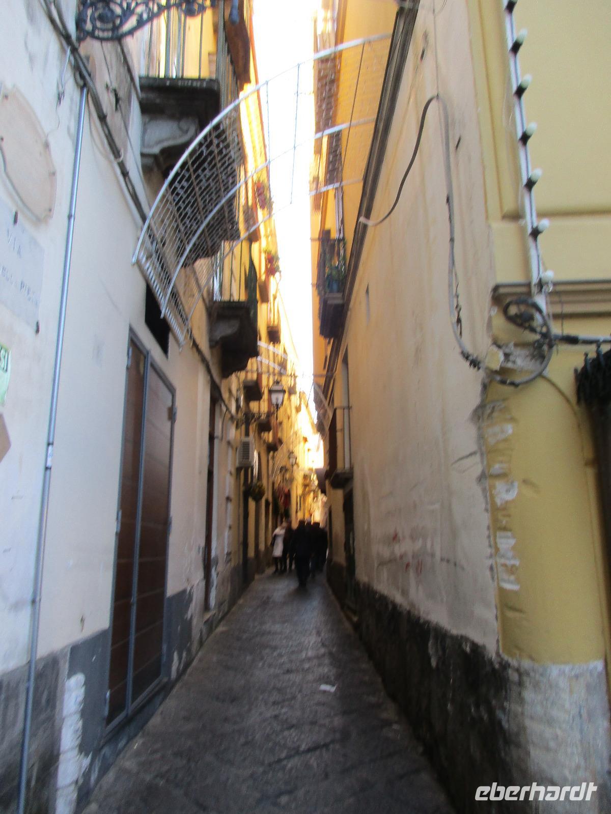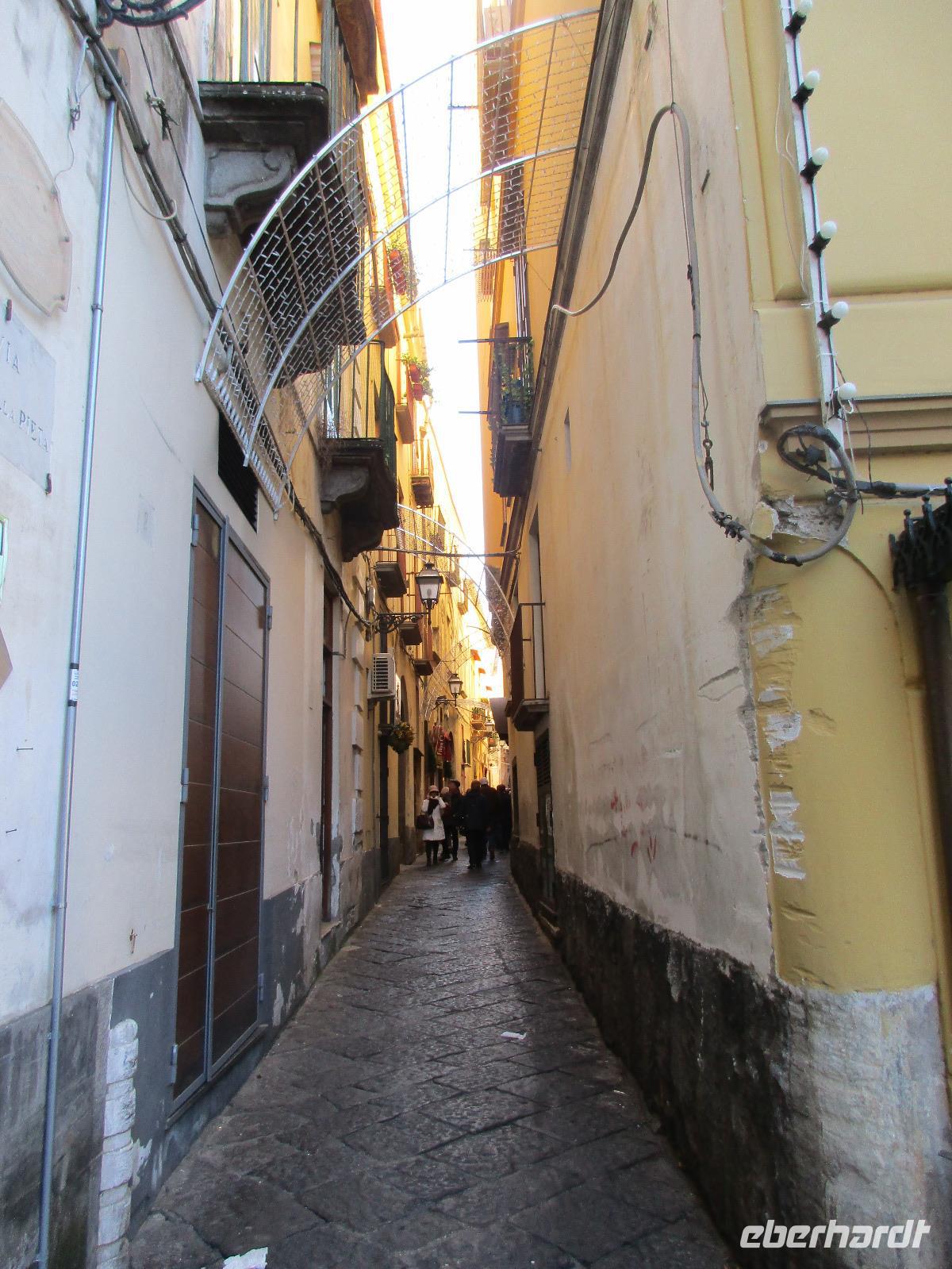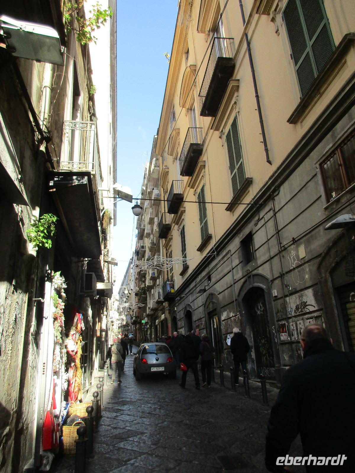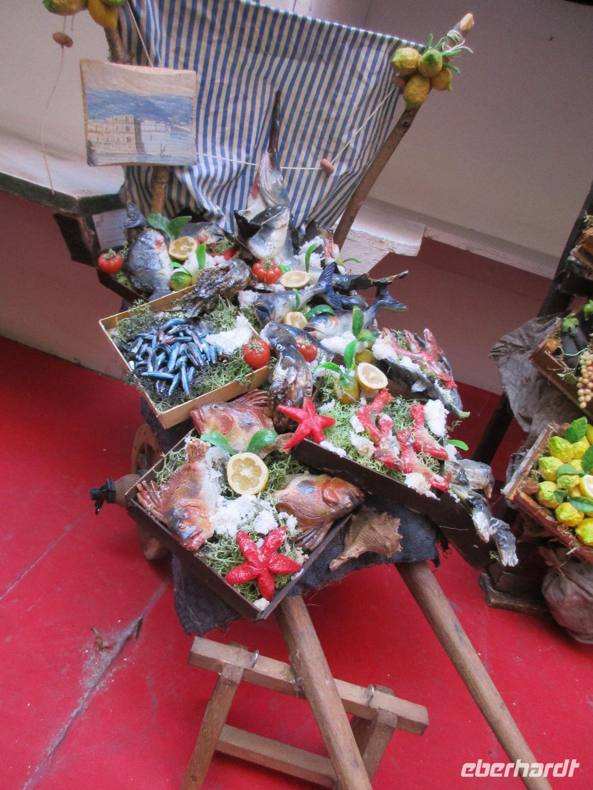 Auf dem Weg zum Mittagessen sehen wir noch eine kleine Krippensammlung und gehen durch die Krippenstraße Neapels.