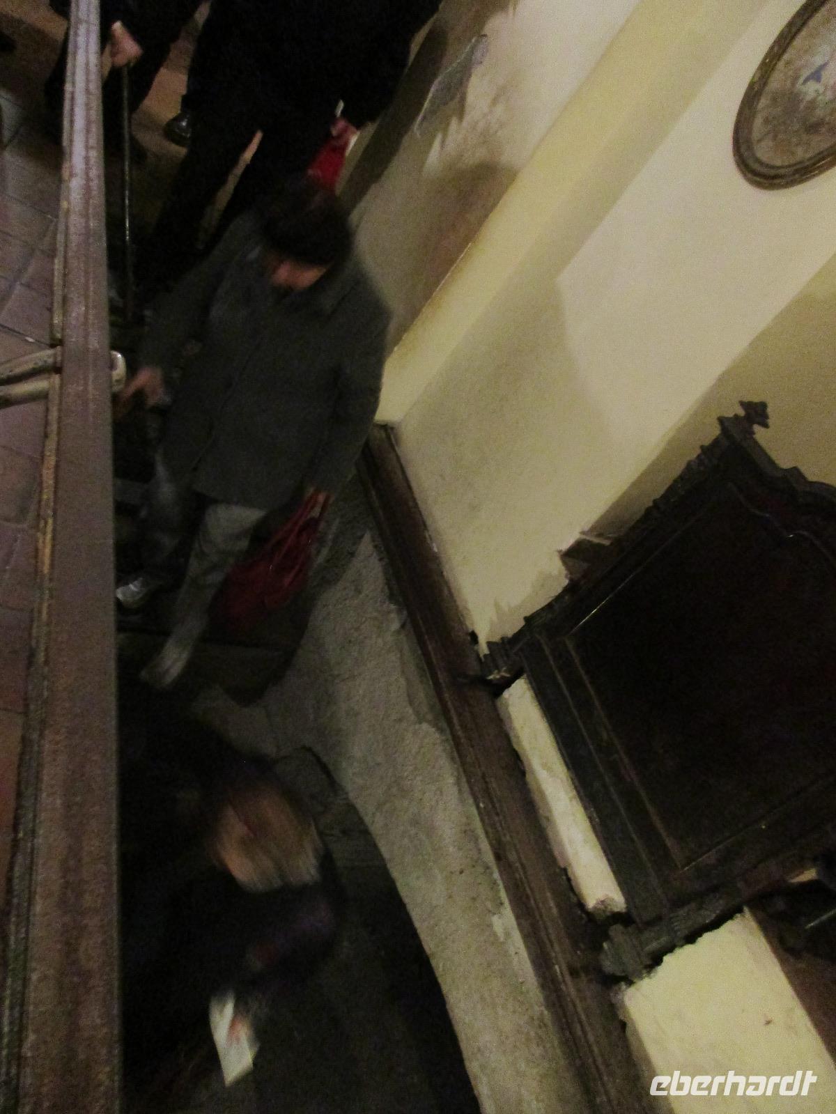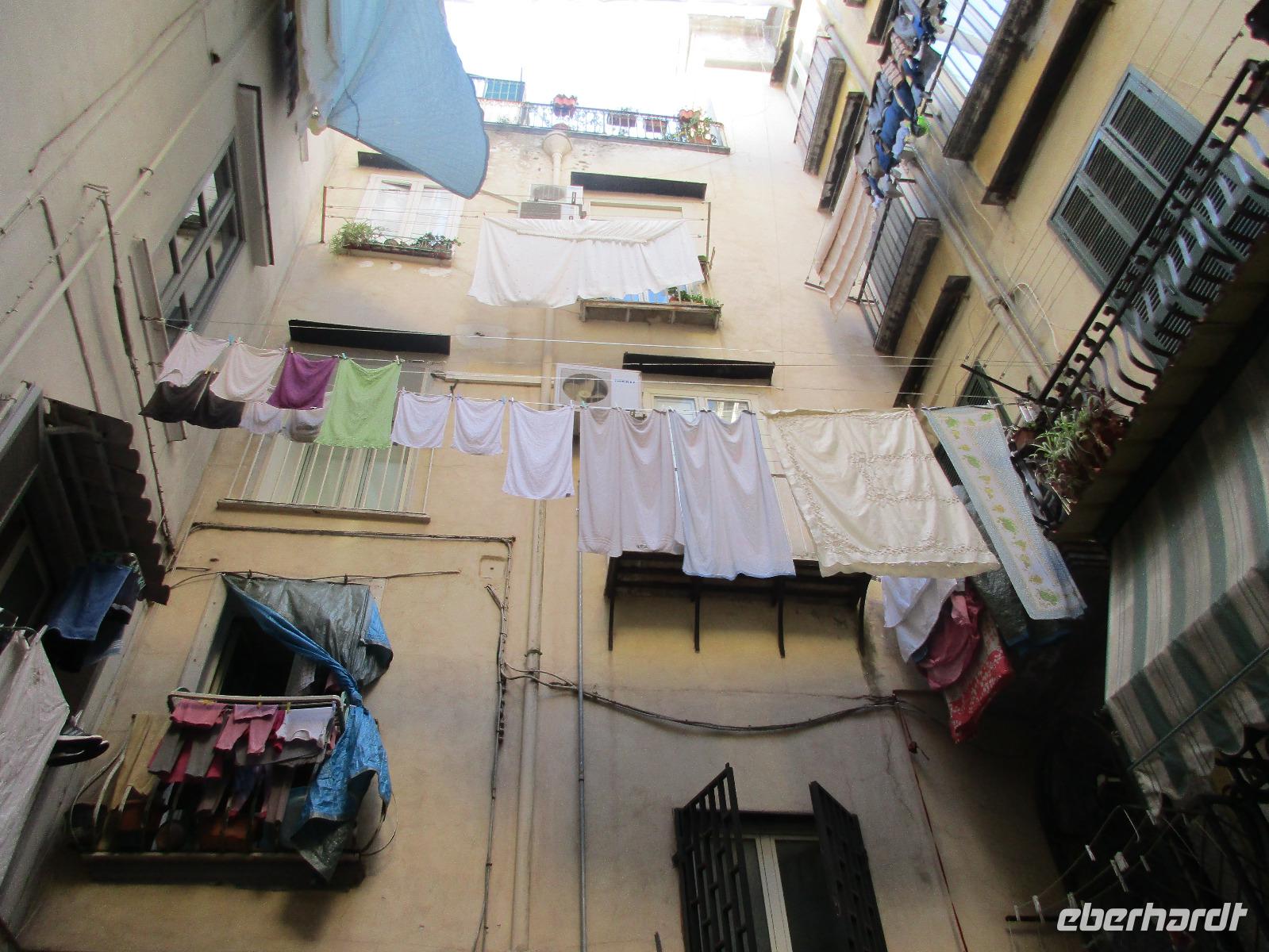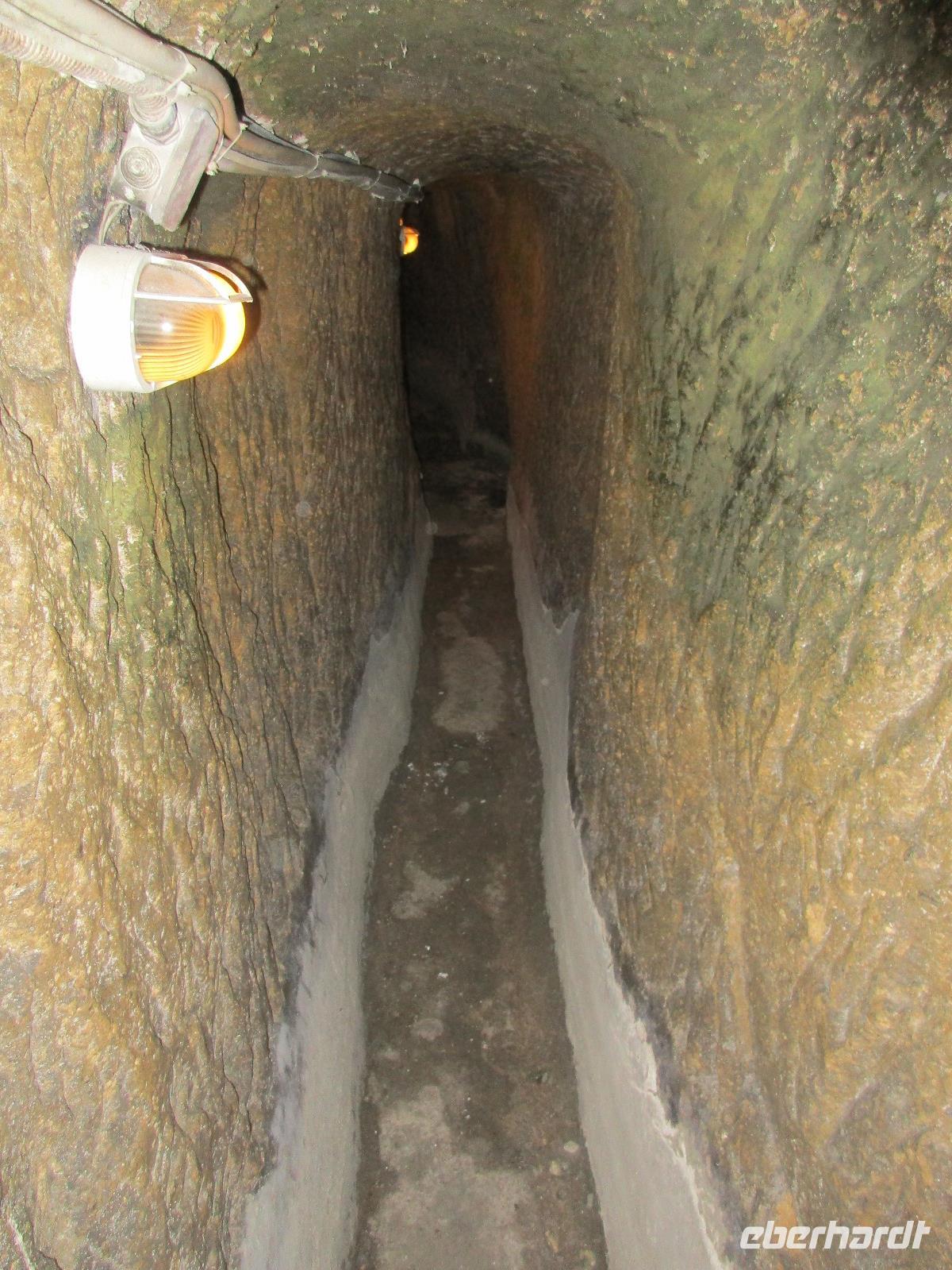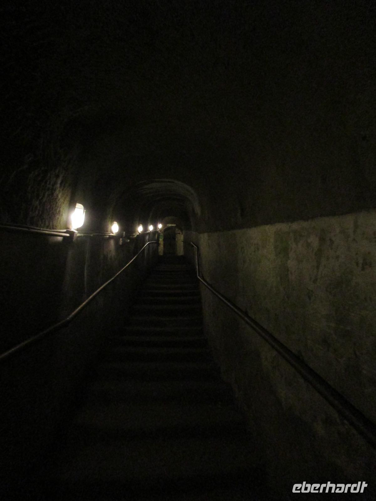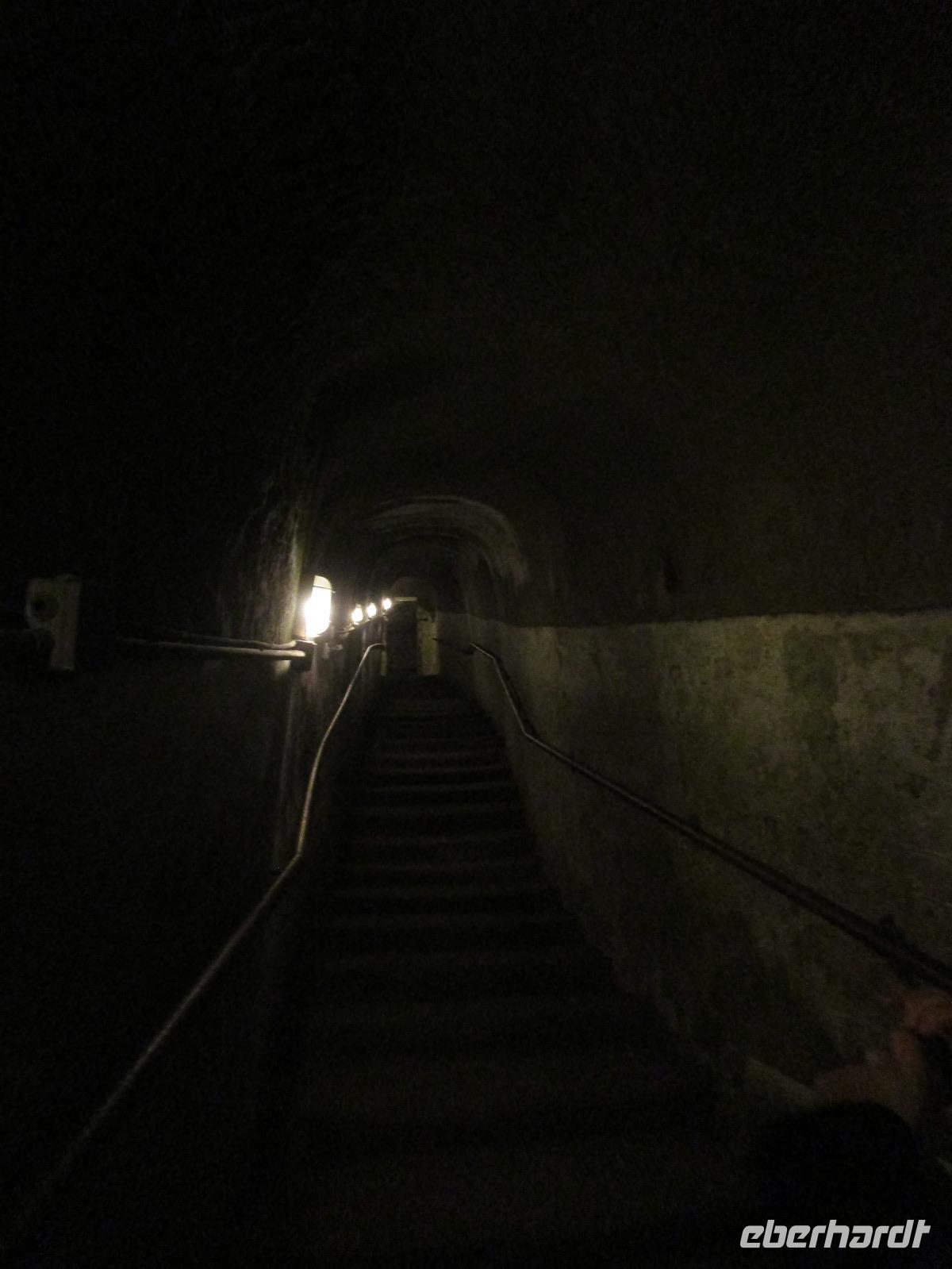 In Neapel ¬angekommen steuern wir die „Napoli Sotteranea", die Unterwelt Neapels, an. Die unterirdische Höhlenlandschaft wurde einst von den alten Griechen errichtet um den Tuffstein, aus dem Neapel erbaut ist, abzubauen. Später wurden die Höhlen als Zisternen genutzt, um die Bevölkerung mit Wasser zu versorgen. Für die Erbauung der „Unterwelt" wurden circa 60 % Neapels untergraben, heute ist davon nur noch ein Bruchteil begehbar. Bei der Besichtigung sehen wir jedoch nicht nur die großen Höhlen, wir haben auch die Möglichkeit die „Unterwelt" mal etwas spannender zu erleben und so durchlaufen wir, zur Beleuchtung mit Kerzen ausgestattet, ein hundert Meter langes, jedoch nicht mal einen Meter breites Gangsystem, welches die Zisternen miteinander verbindet.