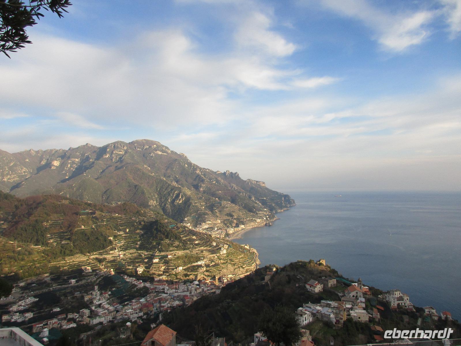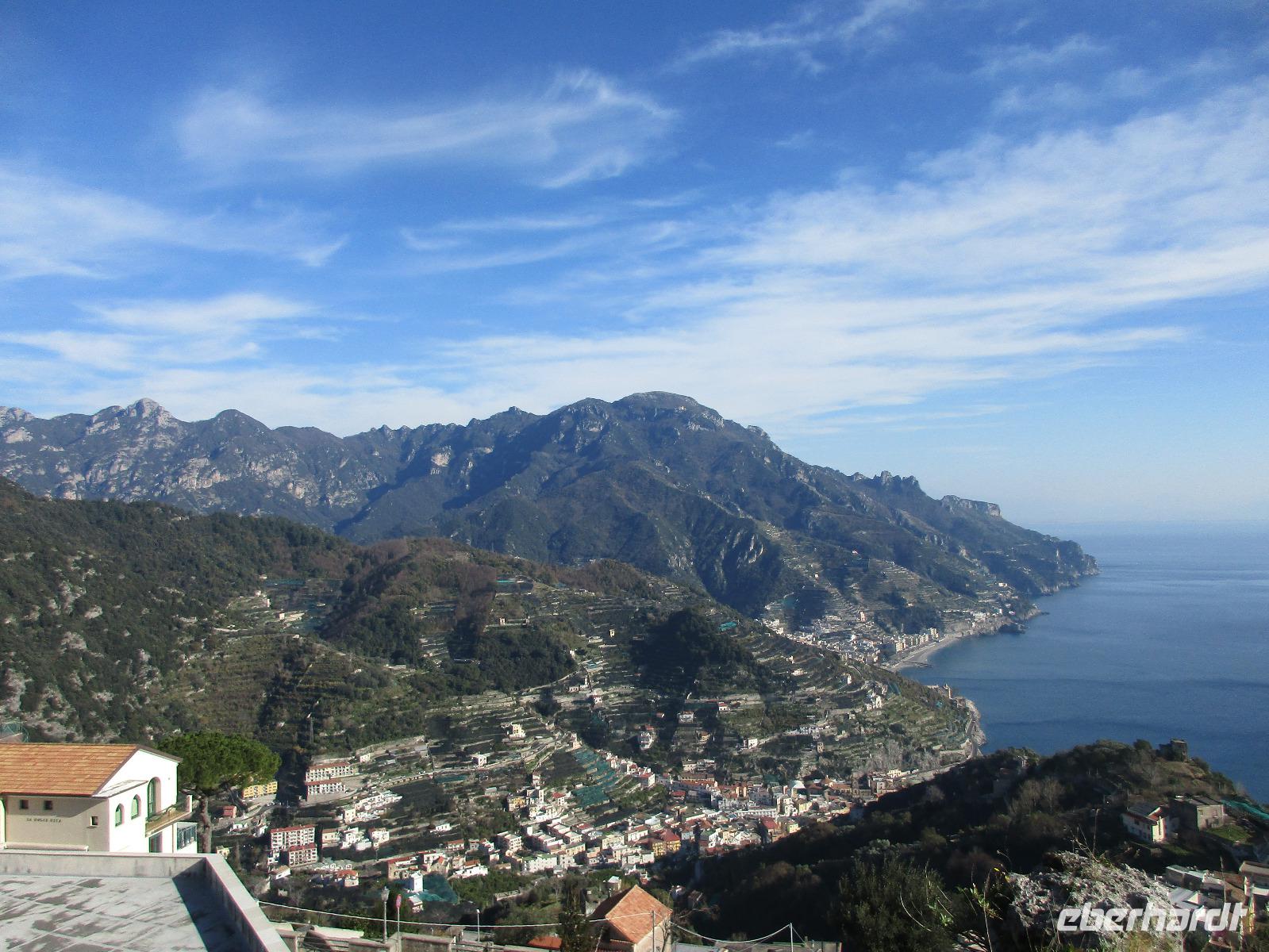 Gleich darauf geht es weiter ins malerische Städtchen Ravello, in dem wir zuerst einmal unser Mittag in einem kleinen, niedlichen, italienischen Fischrestaurant zu uns nehmen. Es durfte natürlich auch Pizza bestellt werden, nach echter neapolitanischer Art.