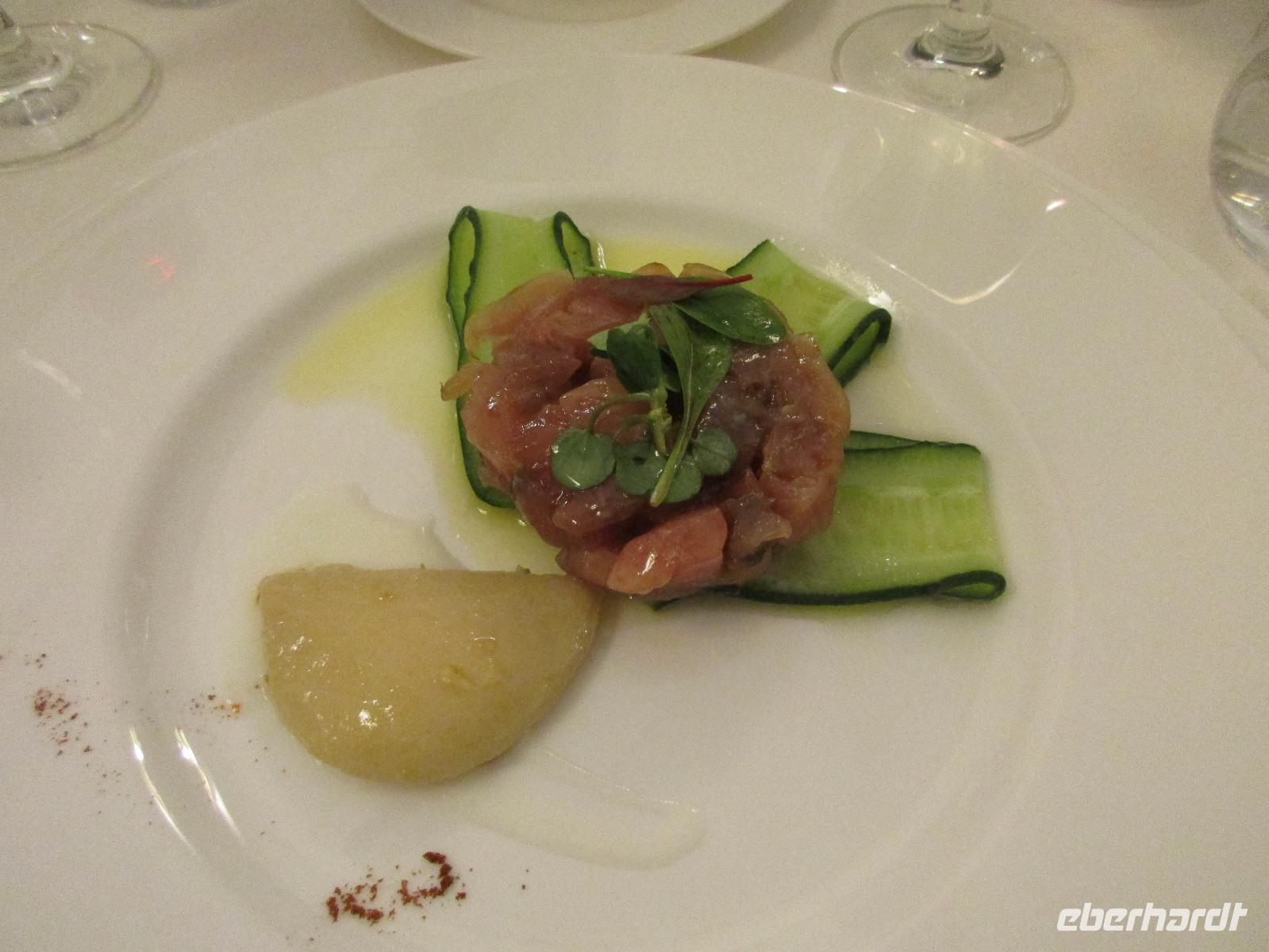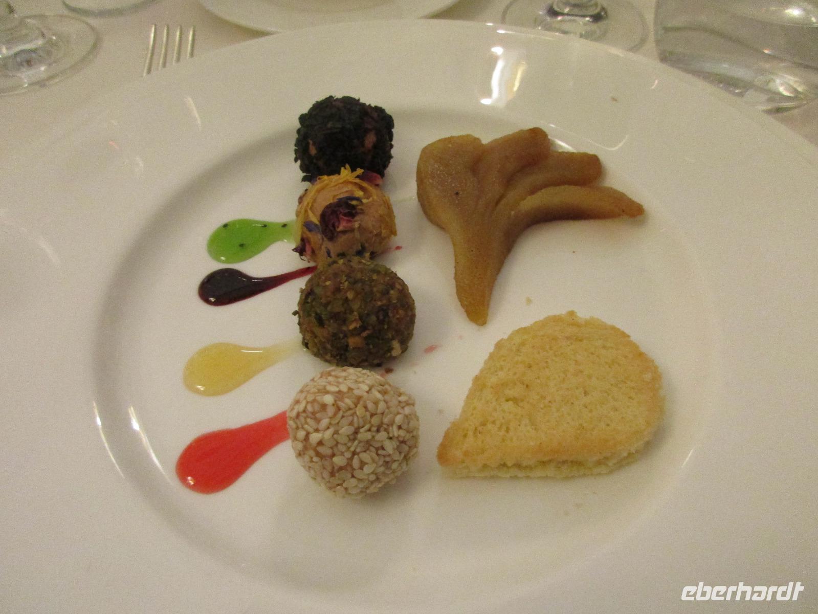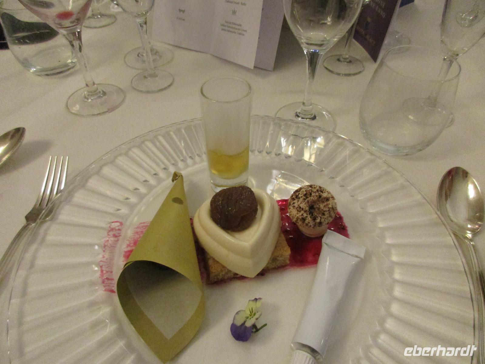 Begrüßt werden wir mit Champagner oder einem anderen Cocktail nach Wahl und kleinen Häppchen, sowie Austern. Nach dem Durst und Appetit angeregt wurden beginnt das Galadinner und das Programm. Zu italienischen Opern, vorgetragen von zwei Opernsängern aus Neapel, begleitet von Klaviermusik, beginnen wir unser Festmahl - ein Sieben-Gänge-Menü vom Feinsten. Vom Thunfischtartar über kleine Leberhäppchen, Krabben, Fasan und Rindslende bis hin zu einem spektakulär angerichteten Dessert mit Eis und Schnaps ist bei diesem Abendessen für jeden Geschmack etwas dabei.