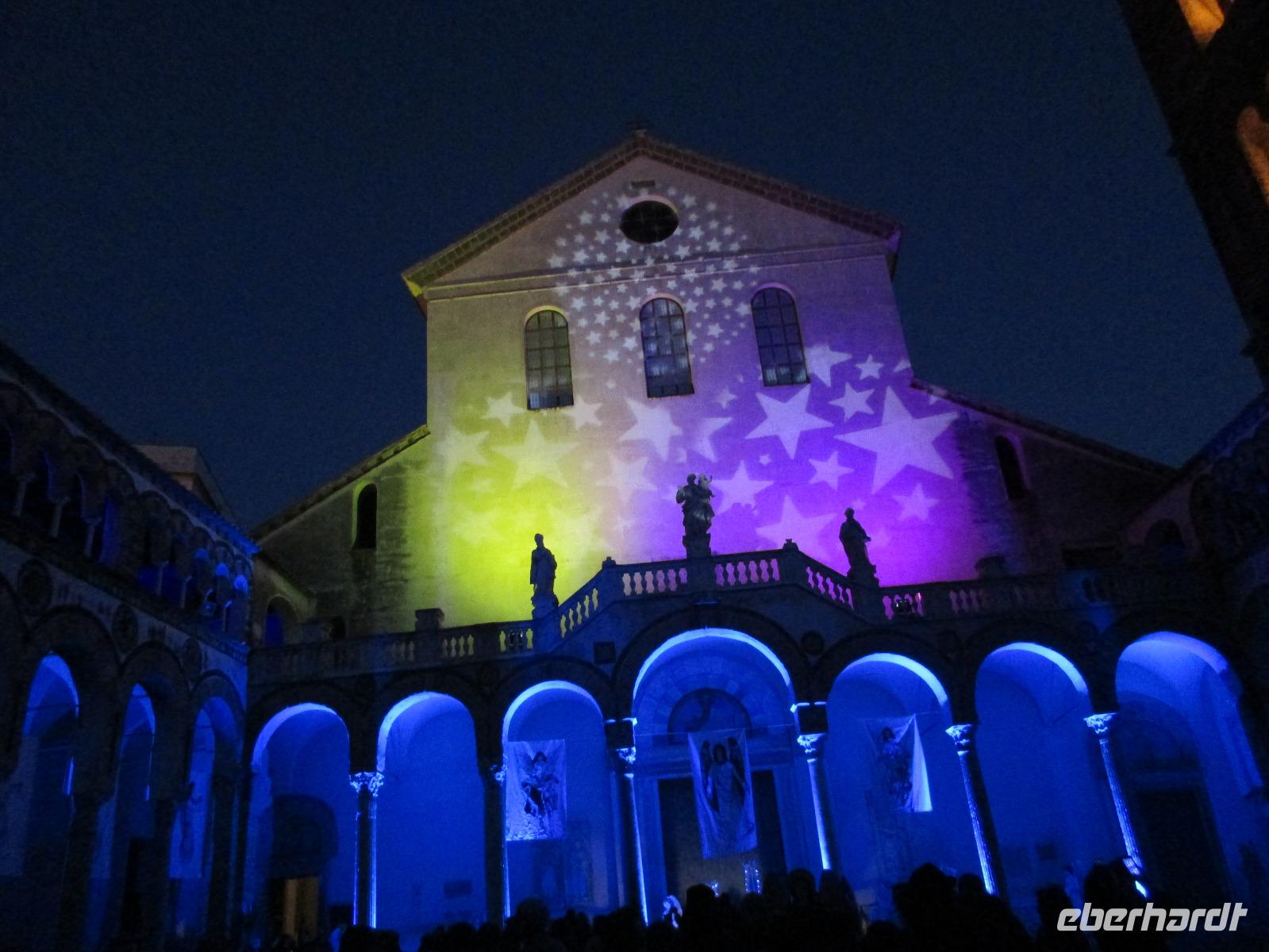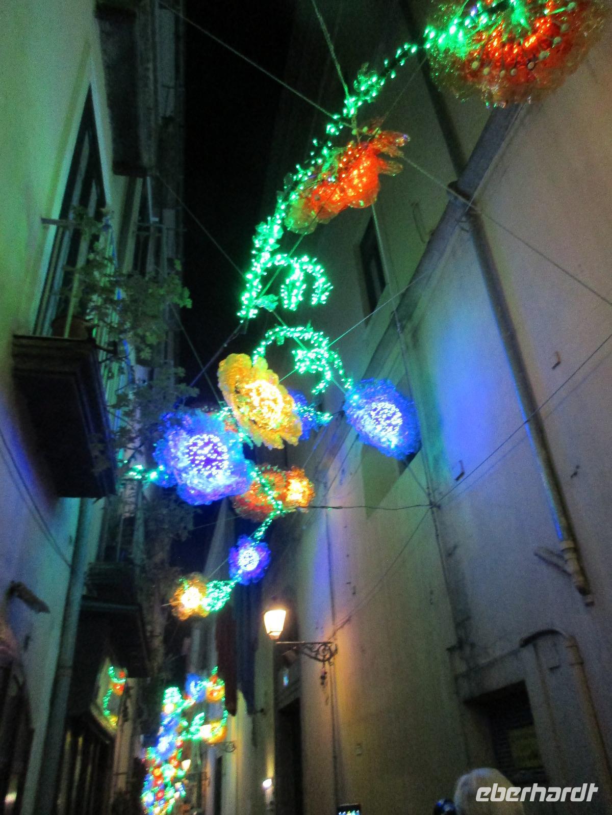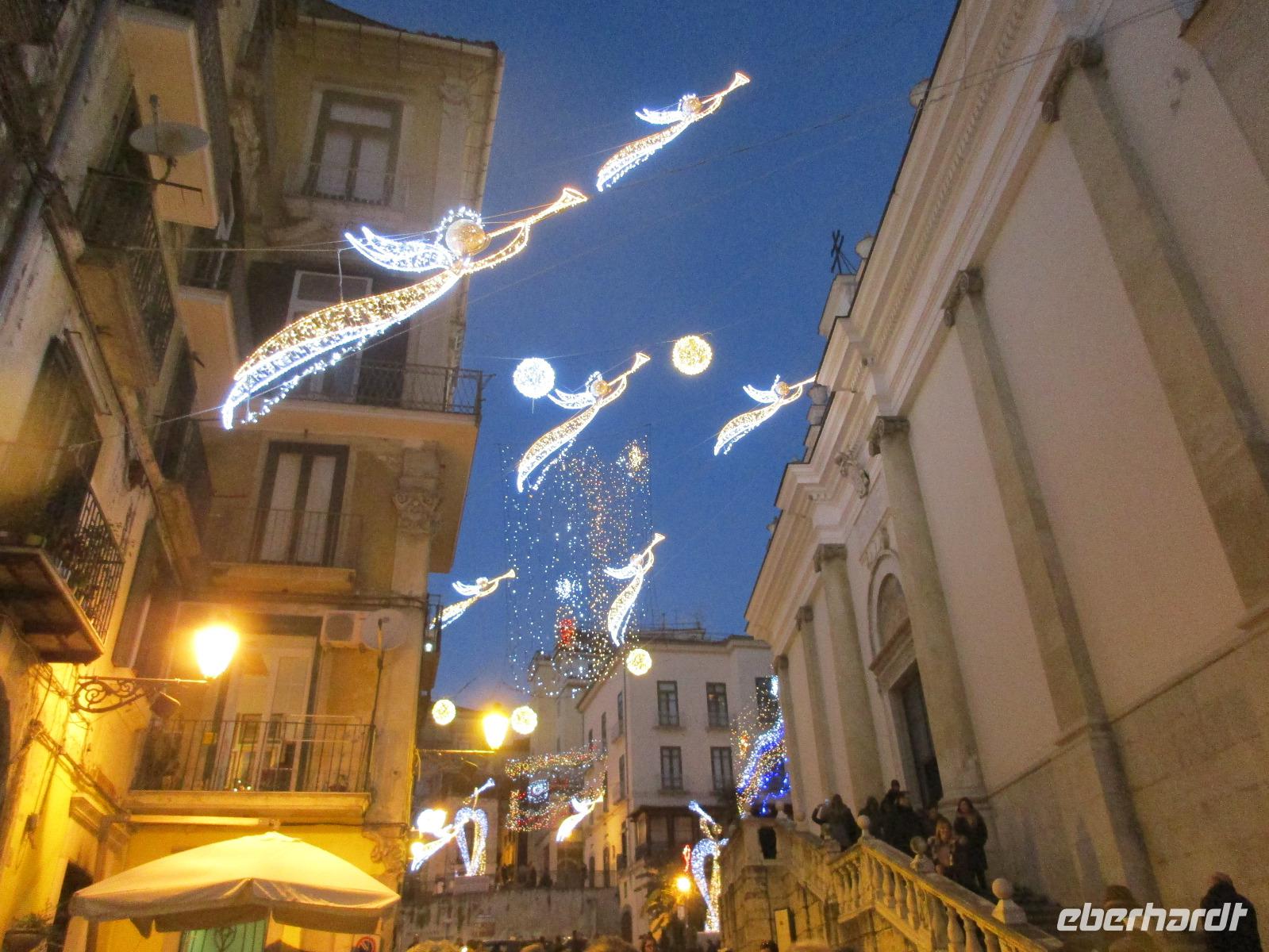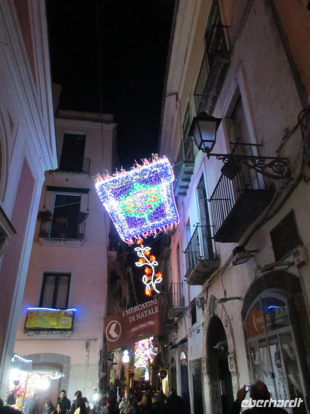 Nach dem Rundgang fahren wir nach Salerno, eine Stadt, die ganz besonders für ihre Weihnachtsbeleuchtung bekannt ist.