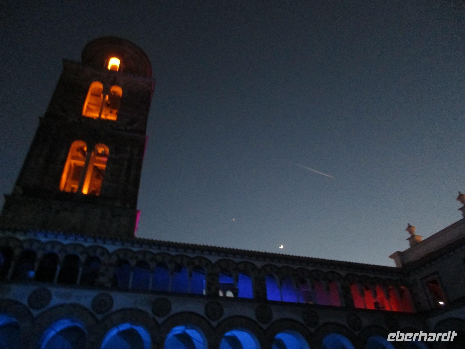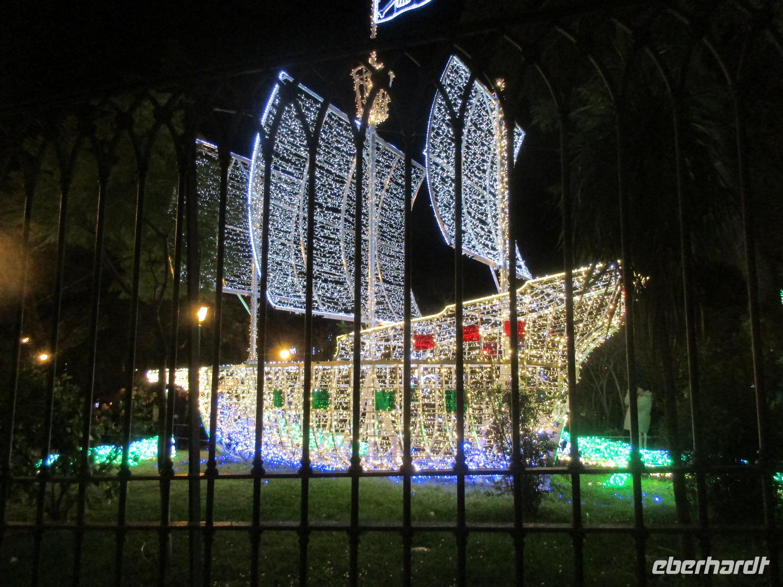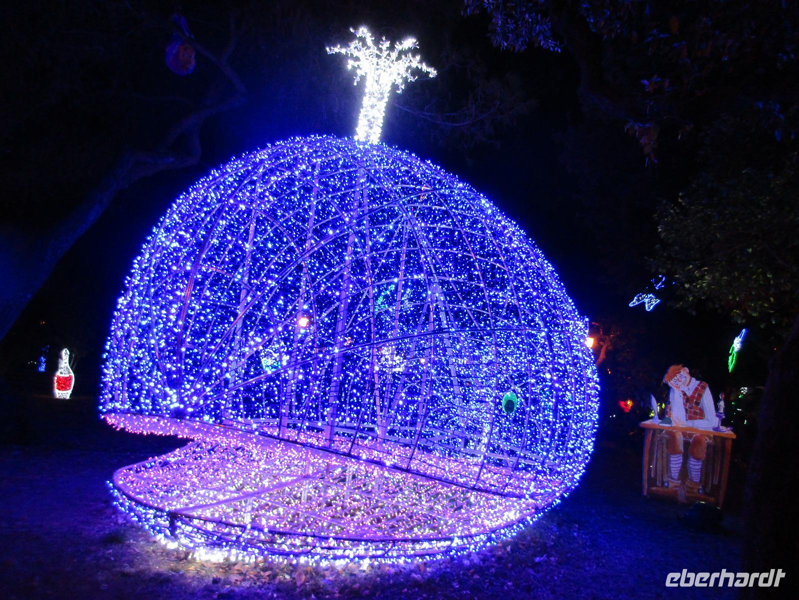 Danach machen wir in einem kleinen Café noch eine kleine Pause, in der Mathias und ich noch eine Abschiedsüberraschung überreichen wollen und nach einer weiteren kurzen Besichtigung des Doms schlendern wir die Straßen Salernos entlang und bestaunen die farben - und motivreichen Weihnachtsbeleuchtungen, die nicht nur in jeder Straße hoch über den Köpfen der Besucher schweben, sondern auch einen ganzen Park hell in allen Farben erleuchten.