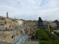 Ciro, unser Busfahrer an den kommenden Tagen, steht schon da, packt unsere Koffer in den Bus und fährt uns auf der Küstenstraße um die Bucht von Neapel nach Sorrent. Der Vesuv hebt sich deutlich ab, die Ausgrabung der versunkenen Stadt Herkulaneum passieren wir.