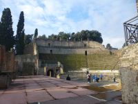 Doch erstmal sind wir weg, springen schon um 8 Uhr auf den Bus und sind um 9 Uhr in der Ausgrabung von Pompeji. Tonia nimmt uns im Empfang und führt uns durch zwei Theater, ein Badeanlage und ein Freudenhaus, das mit sehr eindeutigen Darstellungen für die Liebesdienerinnen wirbt oder dem einen oder anderen Freier noch Anregung sein mag.