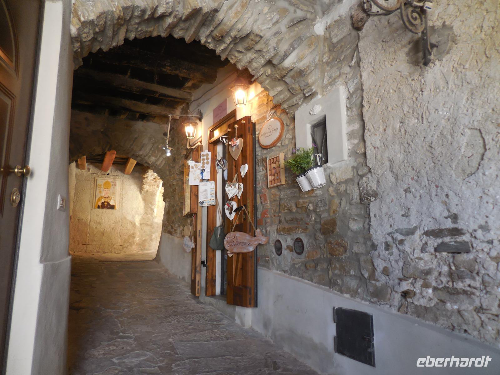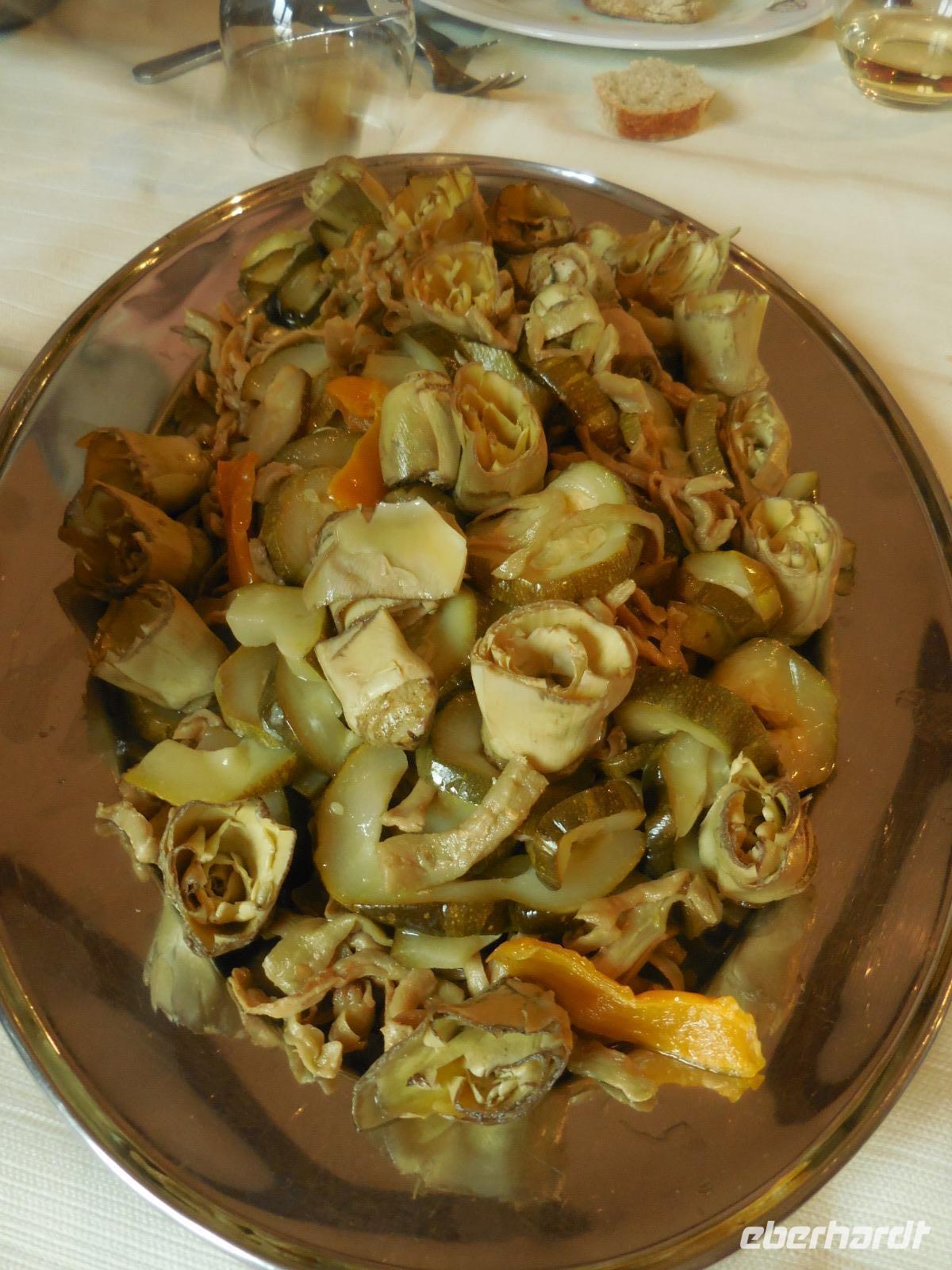 Kurz nach 8 Uhr starten wir heute Morgen in Richtung Süden, kommen an der süditalienischen Gemeinde Vallo della Lucania vorbei und erreichen das wunderbare mittelalterliche Kloster in Padula. Diese Kartause ist nach dem Vorbild des spanischen Escorial erbaut und wurde im 14. Jahrhundert gegründet. Der Bau dieser Kartause hat ganze 450 Jahre gedauert und ist erst im 19. Jahrhundert fertig gestellt worden. Der Kreuzgang ist der wohl weltweit größte den es gibt und fasst mit seinen 84 Säulen ganze 60.000 Besucherplätze. Ein immens großer Bau und fantastischer Kreuzgang mit Blick hinauf das Städtchen Padula. Die Besichtigung der Kartause dauert etwa zwei Stunden und nach der Beendigung der Besichtigung zeigt sich sogar die Sonne für eine kurze Weile. Fünf Minuten Fahrtweg von hier erreichen wir heute eine erneute gute Einkehrmöglichkeit zum Mittagessen, die aus vielen Vorspeisen besteht und uns ebenso sättigt wie die vorherigen Lokale. Auch für Wasser und Wein ist wieder ausreichend gesorgt, so dass wir gesättigt und träge in den Bus einsteigen und etwa 45 Minuten bis zur bekannten Tropfsteinhöhle von Pertosa fahren. Hier nutzen einige die Zeit für ein kurzes Nickerchen im Bus. Der Eingang der Höhe liegt etwas oberhalb, so dass wir wieder die täglichen Treppen in Kauf nehmen müssen. Aber in der Höhe geht alles ziemlich eben zu und wir laufen mit einem lokalen Führer (ohne diesen darf die Höhle keiner betreten) den ersten Teil hinein in die Höhle und erreichen dann den unterirdischen Fluss. Bis heute ist hier nicht geklärt, wo der Ursprung dieses Flusses liegt. Unzählige Untersuchungen wurden dazu angestellt, aber bis heute konnte die Quelle nicht gefunden werden. Wir fahren in der Höhle ein kurzes Stück von ein paar Hundert Metern mit einem großen Boot bis zu der Stelle, wo der neue Eingang zur Höhle geschaffen werden soll. Nach einer Stunde sind wir wieder auf dem gleichen Weg zurück am Eingang der Höhle und haben wir sogar eine kleine Fledermaus gesehen. Über Eboli fahren wir am späten Nachmittag zurück nach Acciaroli.