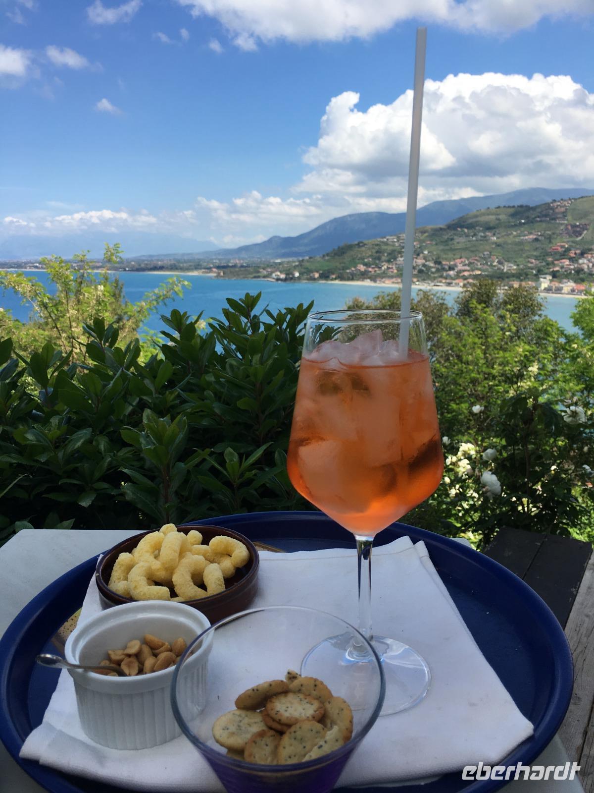 Heute starten wir ganz entspannt um 9:30 Uhr erneut in nördliche Richtung. Etwa eine Stunde später erreichen wir die "Sansibar" kurz vor Agropoli und sammeln Angelo wieder ein. In Agropoli steigen wir als erstes aus, denn diese kleinere Stadt möchte Angelo uns heute zuerst zeigen. Wir gehen zur Piazza und machen uns einen Treffpunkt aus zur gemeinsamen Mittags-Einkehr. Anschließend schlendern wir entlang der Haupteinkaufsstraße und wieder einige Treppen hinauf bis zum Kastell, was auch besichtigt werden kann. Von hier oben haben wir einen imposanten Blick über die sonnige Küste und das Cilento-Gebiet. Wir steigen wieder hinab in die Stadt und genießen ein wenig freie Zeit, ehe wir uns zum gemeinsamen Mittagessen wiedertreffen. Unser örtlicher Reiseleiter hat etwas für alle organisiert, die möchten.