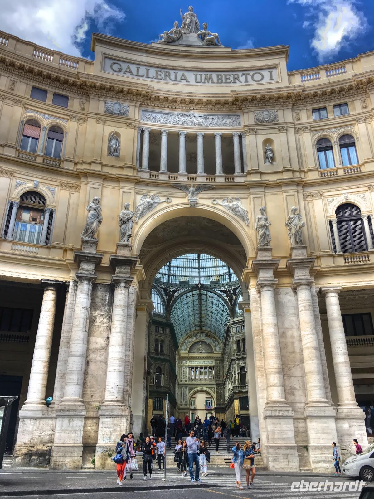 Wir fahren als erstes in ein renommiertes Pizza-Restaurant um typische Pizza Margherita aus Neapel zu probieren. Das gehört schließlich beim Besuch dieser Stadt dazu, denn sie hat hier Ihren Ursprung. Gestärkt steigen wir wieder in den Bus der uns entlang der Küstenstraße ins Stadtzentrum bringt. Hier besichtigen wir im Schnelldurchgang den Hauptplatz "Piazza di Plebiscito" - der Platz der Volksabstimmung mit dem angrenzenden Königspalast. Von hier gibt es einen direkten Zugang in das berühmte Theater San Carlo, damit die Königsfamilie direkt vom Palast ins Theater gehen kann. Um die Ecke befindet sich die berühmte Einkaufspassage Galleria Umberto I., die aus zwei sich kreuzenden Armen und einem tonnenförmigen Glasdach zusammensetzt.